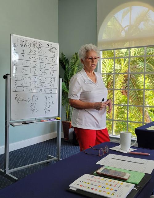 July was an active month, despite the absence of organized Wednesday morning sailing. Co-captain Valerie Massingill and Past Captain Gloria Davis led an excellent educational series on Race Committee, and Nita George provided bridge lessons. Newbies got to practice their new skills in the ladies cardroom after lunch.