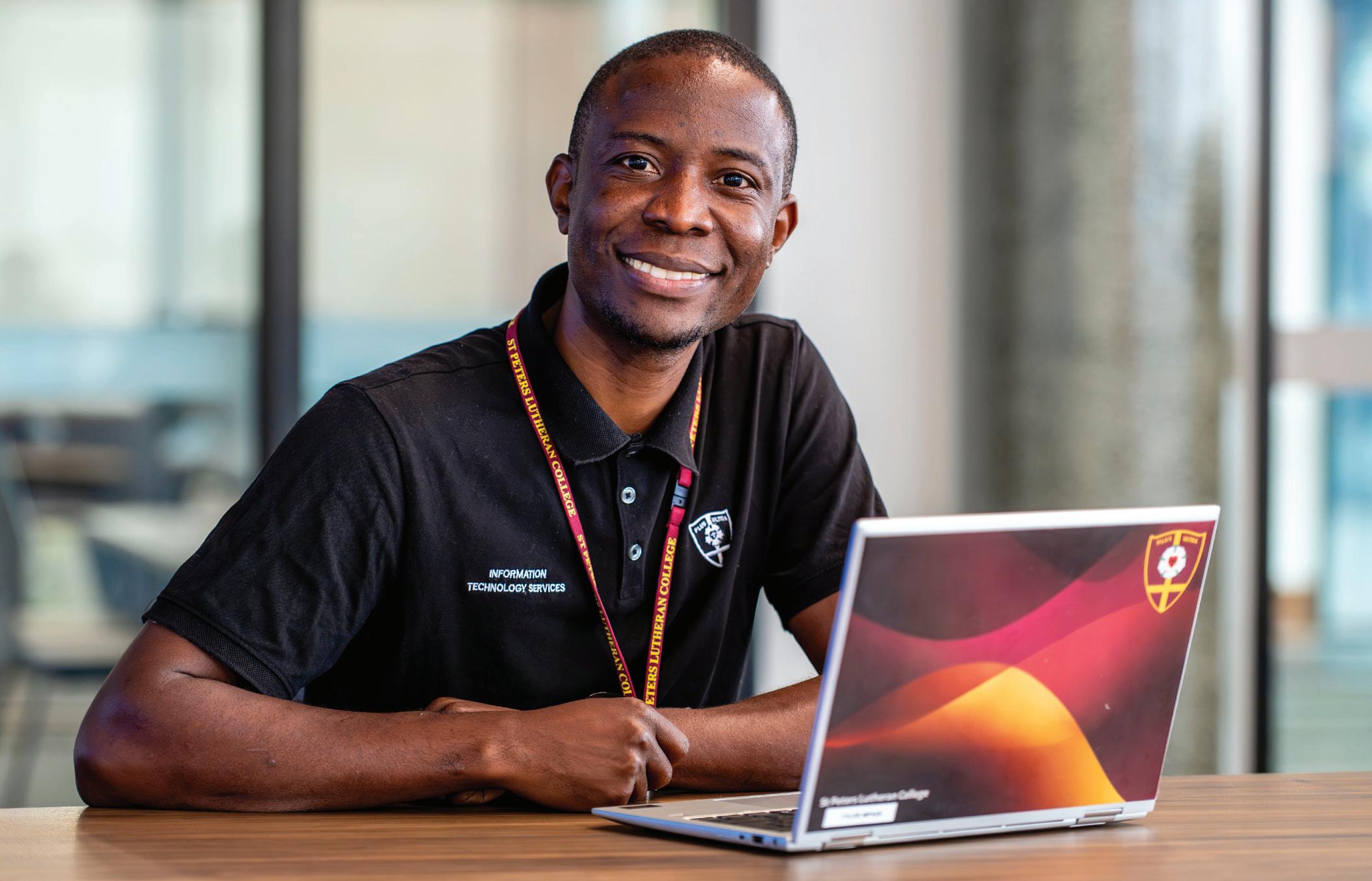 If you visit the Information Technology (IT) Services department, one of the friendly faces you will be greeted by is that of Tyler Steven Mpagi. Tyler joined St Peters at the start of 2025 through the Work and Welcome program run by Multicultural Australia.