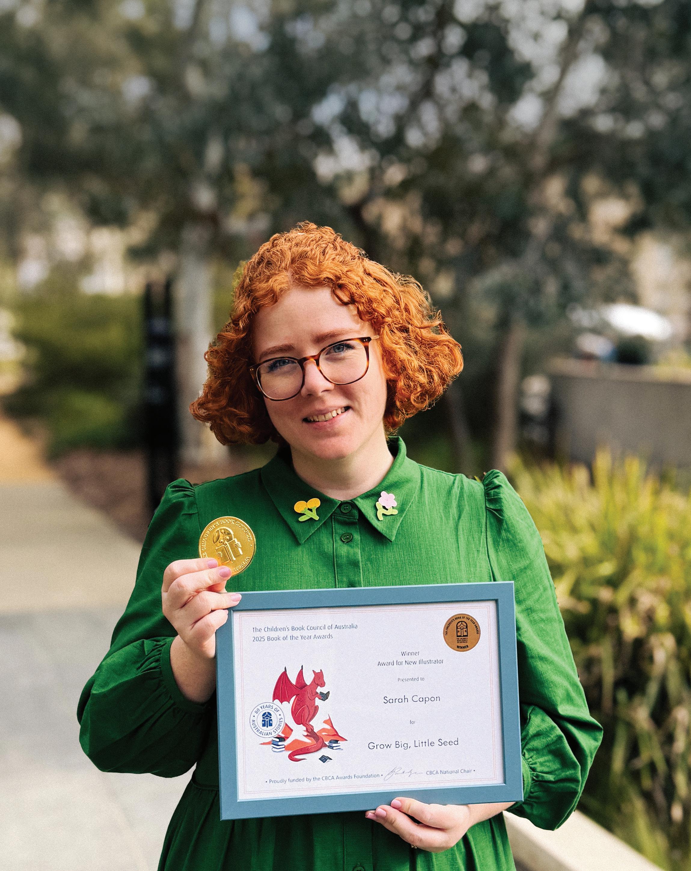 That same book has earned Sarah one of Australia’s most prestigious honours for emerging illustrators: the Children’s Book Council of Australia (CBCA) New Illustrator Award. The judges described her illustrations as “highly original, perfectly capturing the metaphor of the garden and complex emotions of the characters”, high praise for a first-time picture book creator.