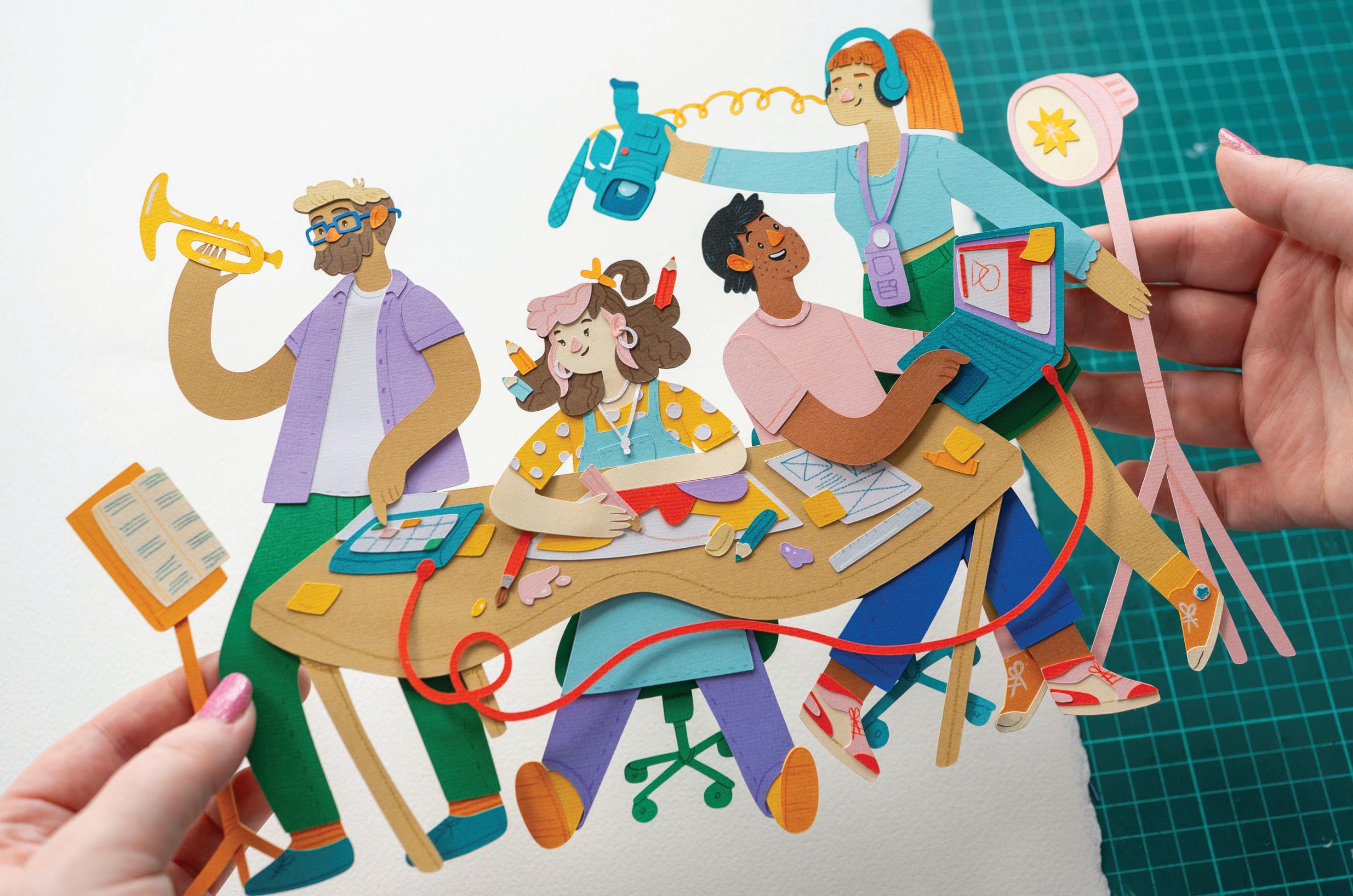 That sense of warmth and care is deeply embedded in Sarah’s intricate papercut art, a style she discovered in 2020 after years of working digitally as a graphic/motion designer. “I was craving something tactile and physical,” she said. Over the past five years, Sarah has gradually developed her style by mixing illustration with layered paper techniques. “My art style had to adapt to the limitations of paper, which is how my shape language and colour schemes evolved.”