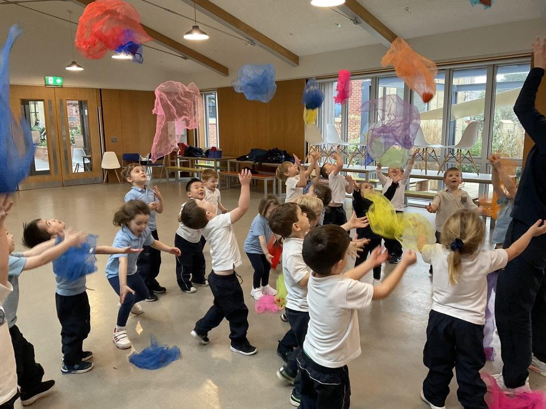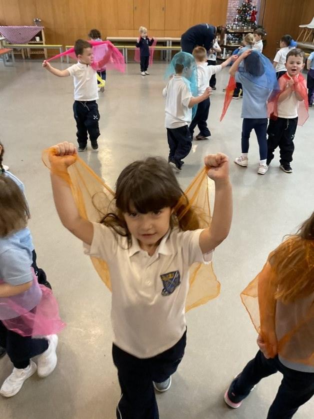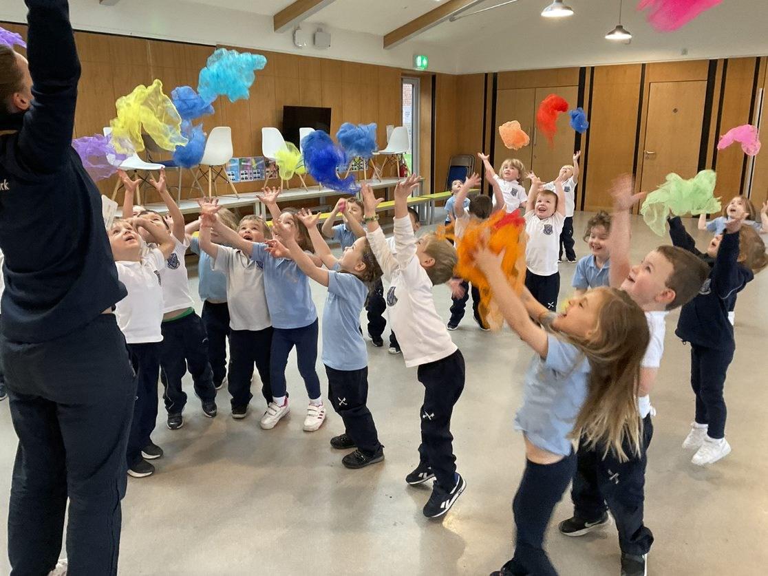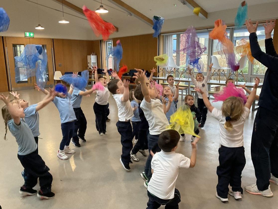 Using cartoon cards, the children have been learning key balances and movements in the 'bean game'. The children definitely enjoy recreating 'beans on toast'. Moving through the term, we have progressed into throwing and catching. Scarfs are a great tool at this age as they move slowly giving the children more time to catch the scarf, they also make great photos! These are activities that all children can do at home, on the playground and with us, in school. There has been huge progress this term and we look forward to working with children again next term.
