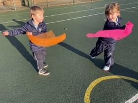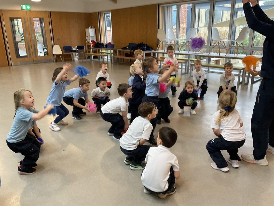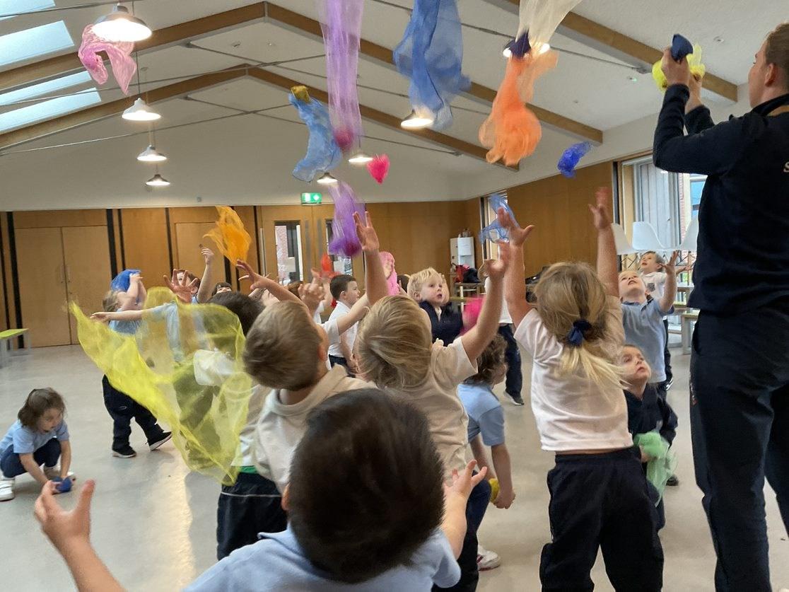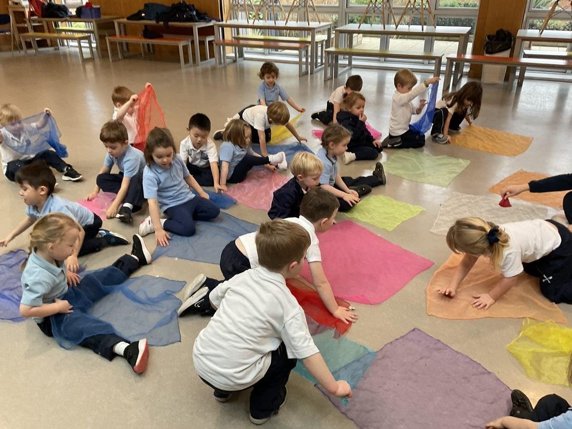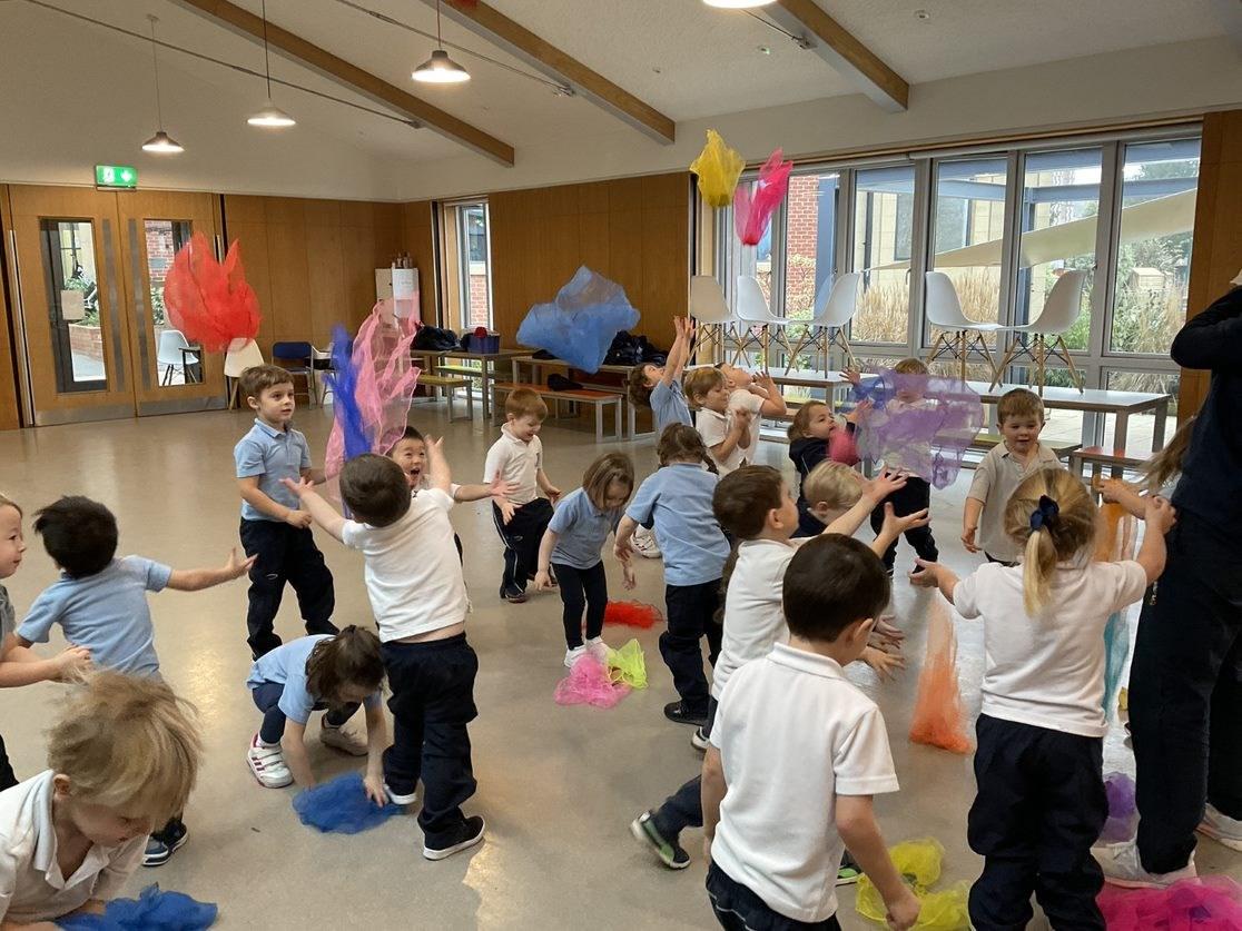 Using cartoon cards, the children have been learning key balances and movements in the 'bean game'. The children definitely enjoy recreating 'beans on toast'. Moving through the term, we have progressed into throwing and catching. Scarfs are a great tool at this age as they move slowly giving the children more time to catch the scarf, they also make great photos! These are activities that all children can do at home, on the playground and with us, in school. There has been huge progress this term and we look forward to working with children again next term.