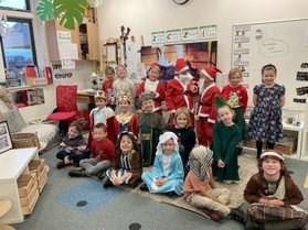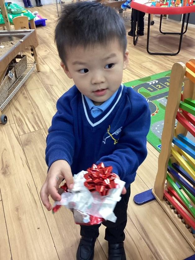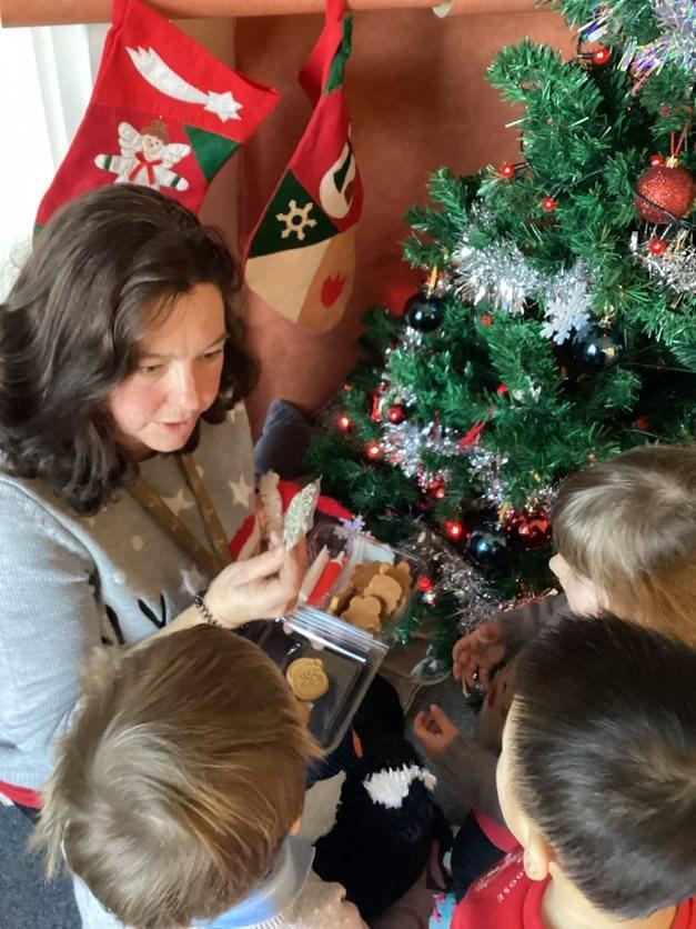 We are so proud of the Acorns who sang beautifully in their Christmas Performance. Well done! They were brave standing in front of so many people to sing their songs. We do hope you enjoyed the singing and the Nativity as much as we did, it feels like Christmas has begun! The Kindness Elf surprised us all by arriving in a sleigh decorated with all sorts of Christmassy decorations. He left a note with a message and some hot chocolate. The little Elf encouraged us all to see who we could show some kindness to? Our first recipients were the lovely ladies who keep our classrooms clean. We were able to give them some home baked Christmas cakes that the Acorns had baked themselves. We have enjoyed wrapping gifts, making cards, serving hot chocolate with ‘squirty’ cream (shaving foam) and pulling the sleigh along filled with teddies. The excitement for Christmas is growing each day. Have a lovely weekend and keep warm in this chilly weather ❄️