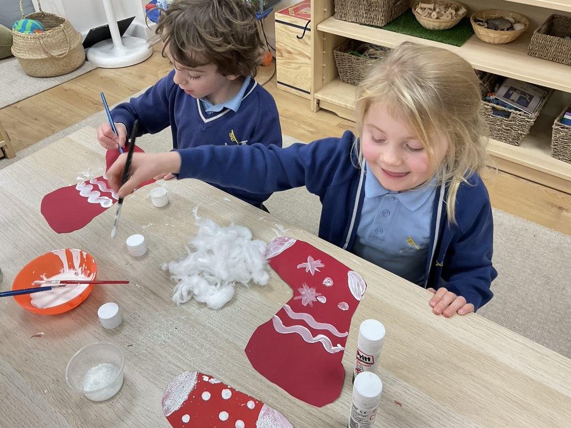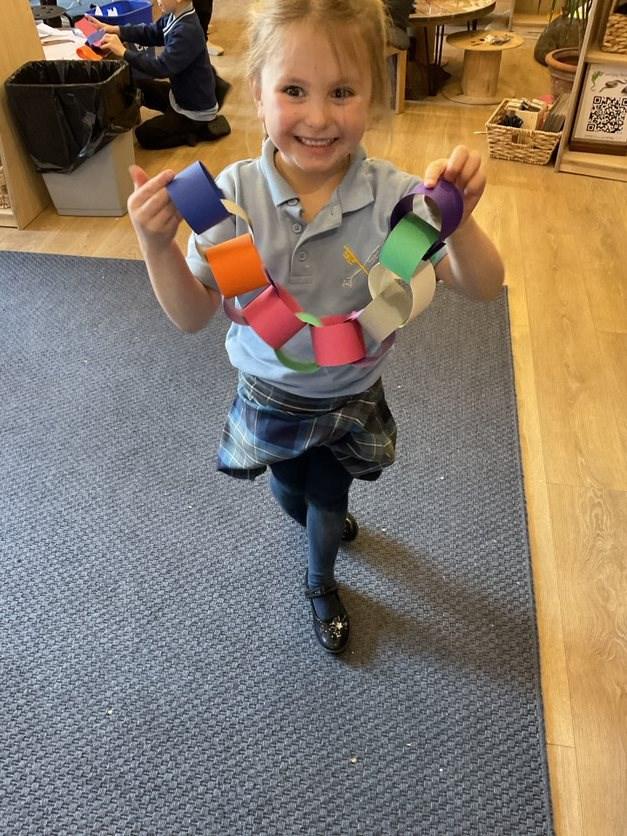 The children have been busy making lovely Christmas decorations to hang on our classroom trees, their crafts have included beautiful angels, twinkly candles and lots of paper chains! They are very excited to bring them home next week to hang on their own Christmas trees.