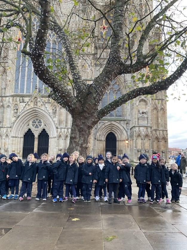What a week it has been in Reception! We began it with a visit to York Minster to see the Christmas Tree Festival. The children loved walking around the vast space, looking at the stained-glass windows and asking lots of questions about their surroundings. We even saw the statue of Queen Elizabeth that has just been unveiled by King Charles. Then we chose our favourite Christmas trees, of course the St Peter’s one with angels was one of our favourites, but we also loved the trains and jewellery trees too. We even spotted decorations made from recycled crisp packets! The it was off to the library for a story and some Christmas songs.