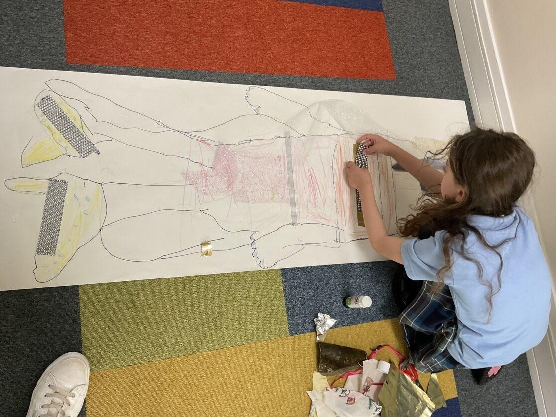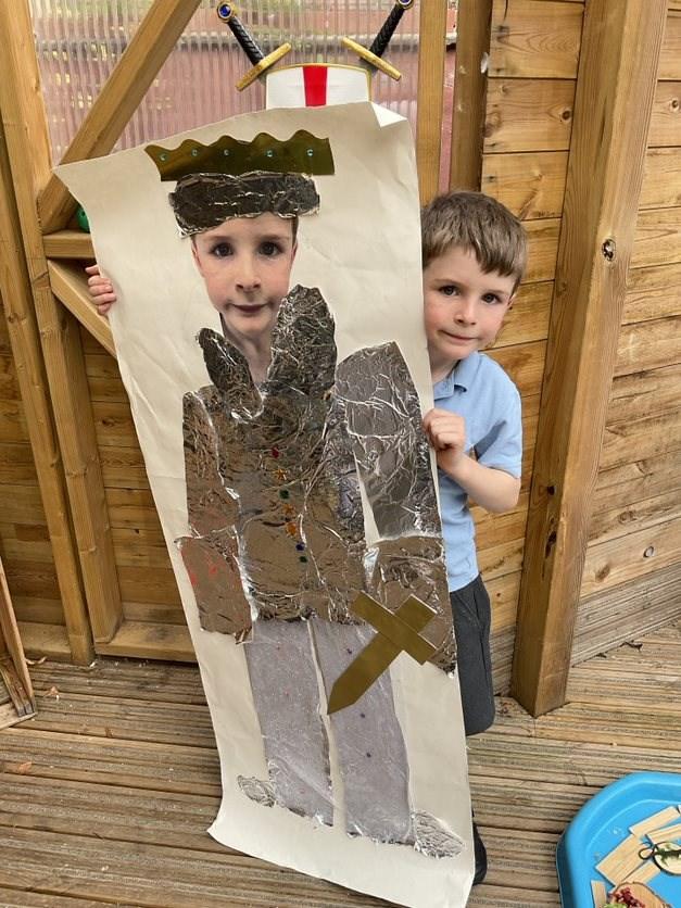 We have been busy making full sized pictures of ourselves as Knights or Ladies out of collage