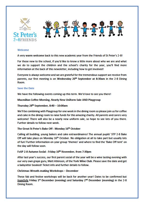 The priority for this first week of the year is always to reestablish our school community and make sure that everyone feels welcome, especially those who are new to St Peter’s. I’d like to extend a special welcome to our new staff Mrs Alexander, Reception teacher, Miss Crosbie, Year 2 teacher and Mrs Digby, Year 2 teaching assistant and to each and every one of our sixty one new starters and their families who joined our St Peter’s 2 -8 school community from Nursery to Year 3. We also welcome Mrs Nicholson who has also joined us from St Peter’s 13-18 to work in our office in the mornings alongside Mrs McCurrie and at the end of September we will have an additional member of staff who will join the admin team each afternoon.