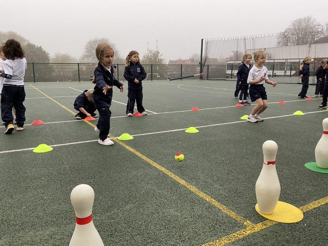 This week’s PE spotlight is on Reception. Within the core PE lessons, Reception have learnt the fundamentals of rolling. We allowed them to practice this core skill through varying their rolling distances, allowing the children to explore how much force is needed to reach the target. They then applied this to a short game of bowling, attempting to knock over the skittles!