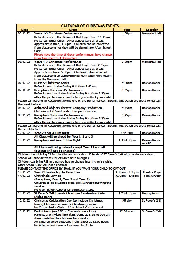 It has been another exciting week at St Peter’s 2 8. I have really enjoyed listening to the children singing Christmas Carols and songs with the festive melodies resonating around school. I am sure like me you are looking forward to the Christingle Service and watching the children perform in their Christmas performances. All the details for these events can be found on page 2 of the newsletter. If you require any further information, please do not hesitate to contact the School Office schooloffice2 8@stpetersyork.org.uk