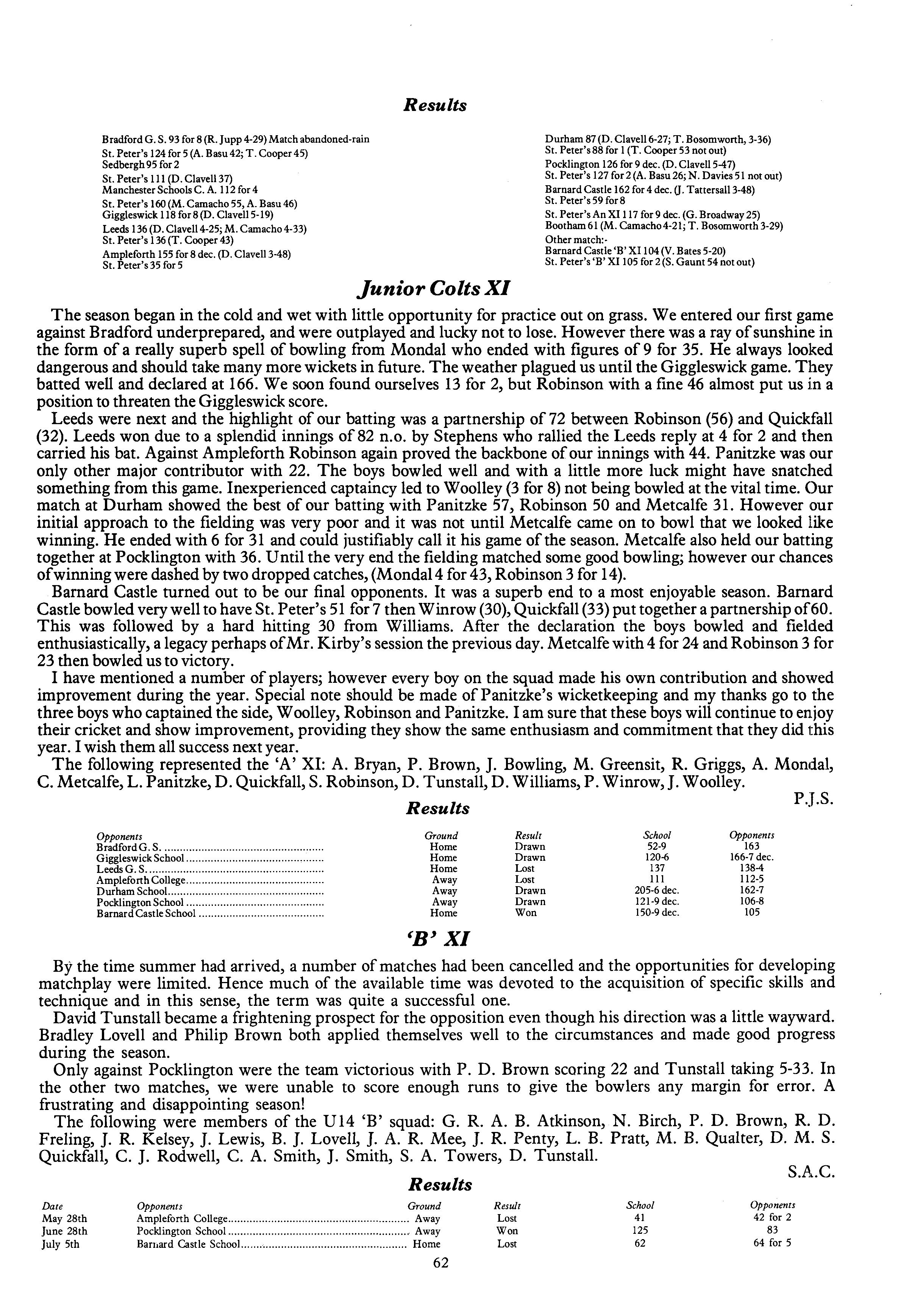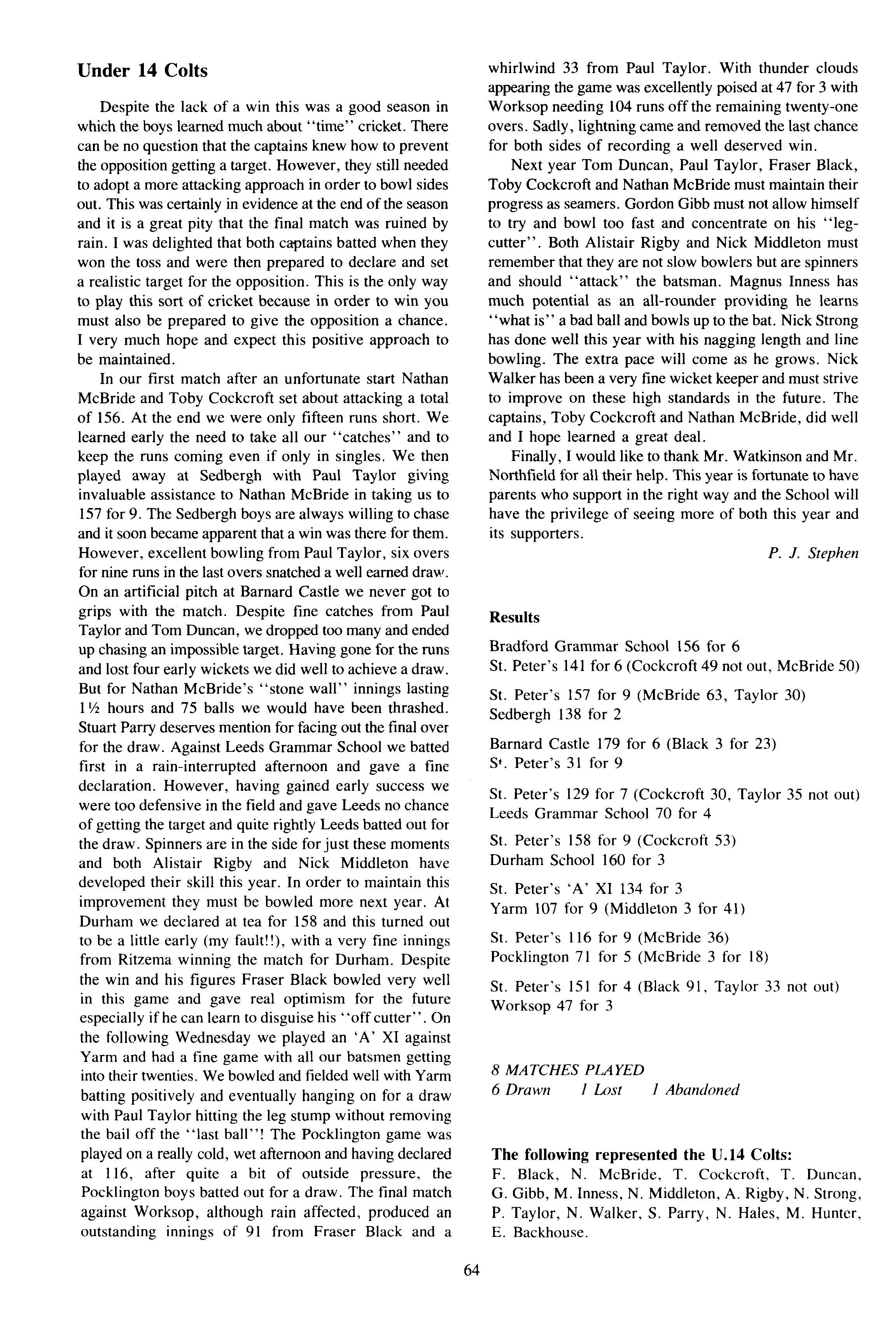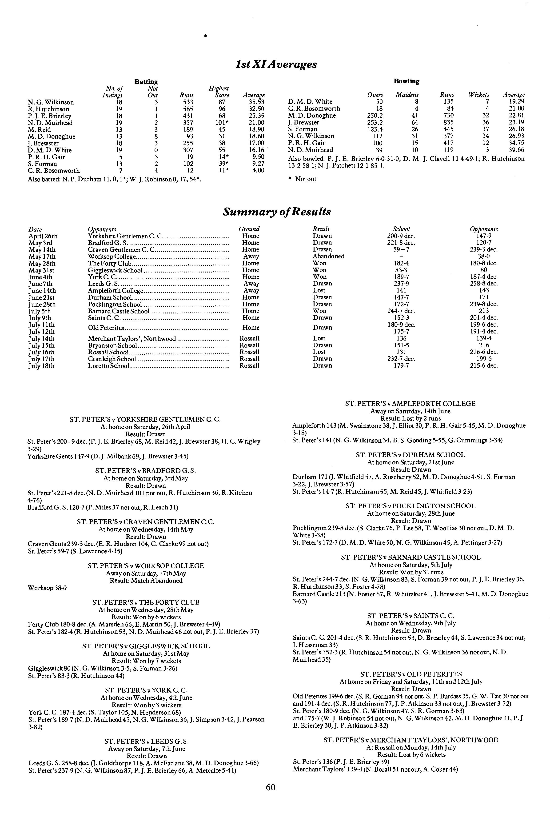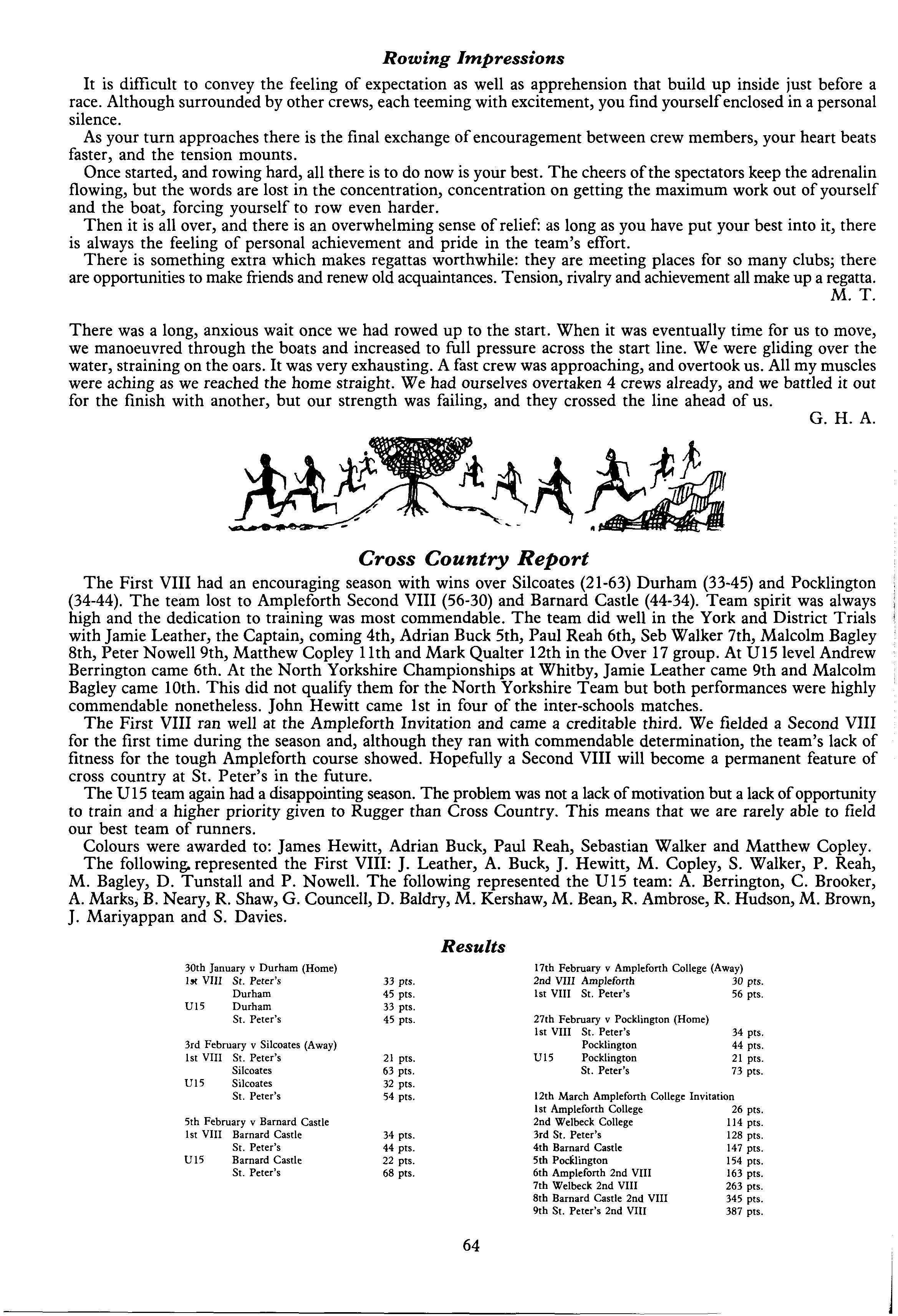 These then are exciting times to be concerned with education: nationally we have new exams, new ideas, new professional demands; and at St Peter's the future beckons with new challenges and new opportunities to be recognised, responded to and developed To preserve alone and not to improve - there lies the easy, complacent path which will surely lead to atrophy and eventual ruin We cannot keep things fixed when all the world (not least the world of education) is in eternal progress And it is to this task - the continuing improvement ofthis great and ancient school - that I as Head Master am dedicated."