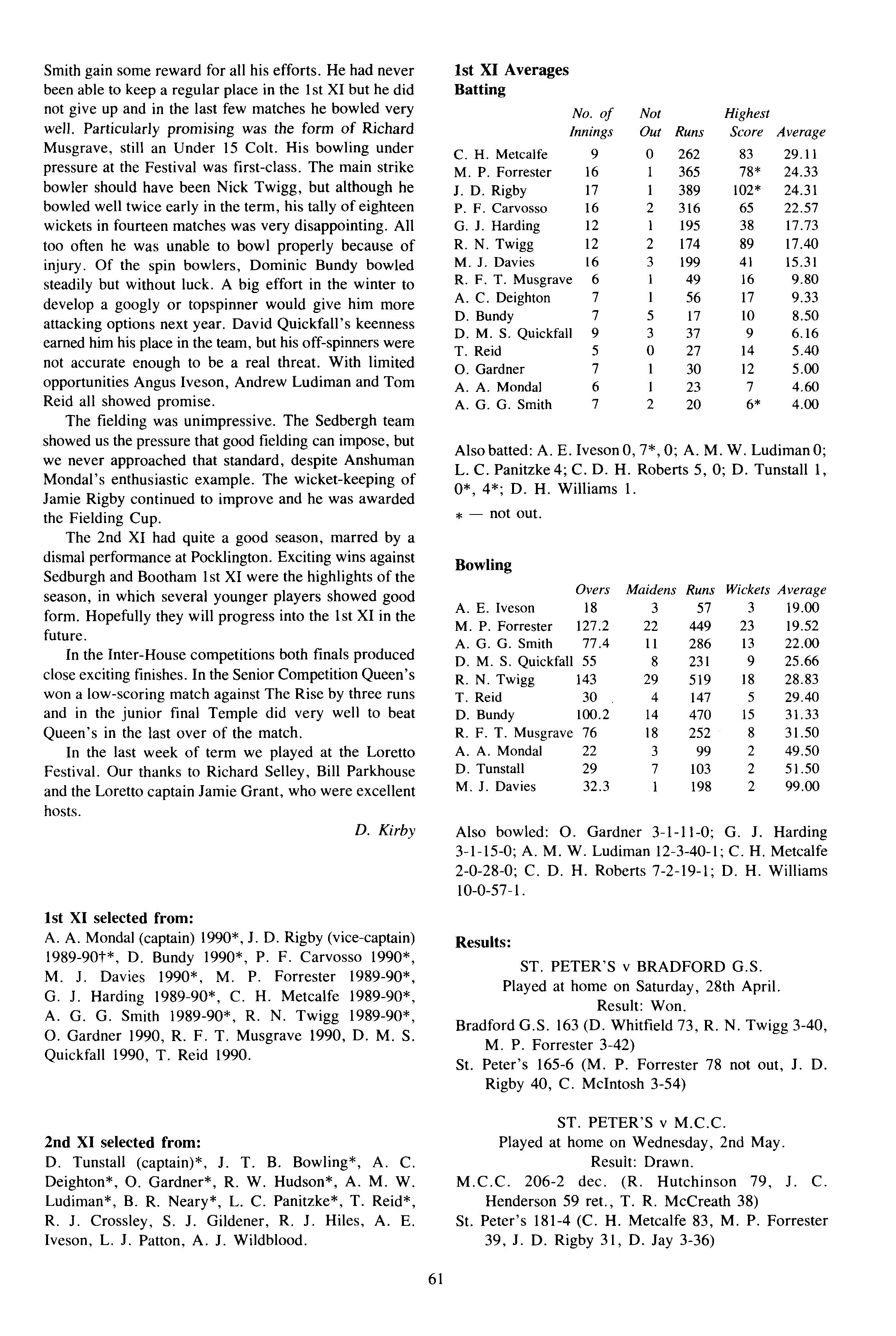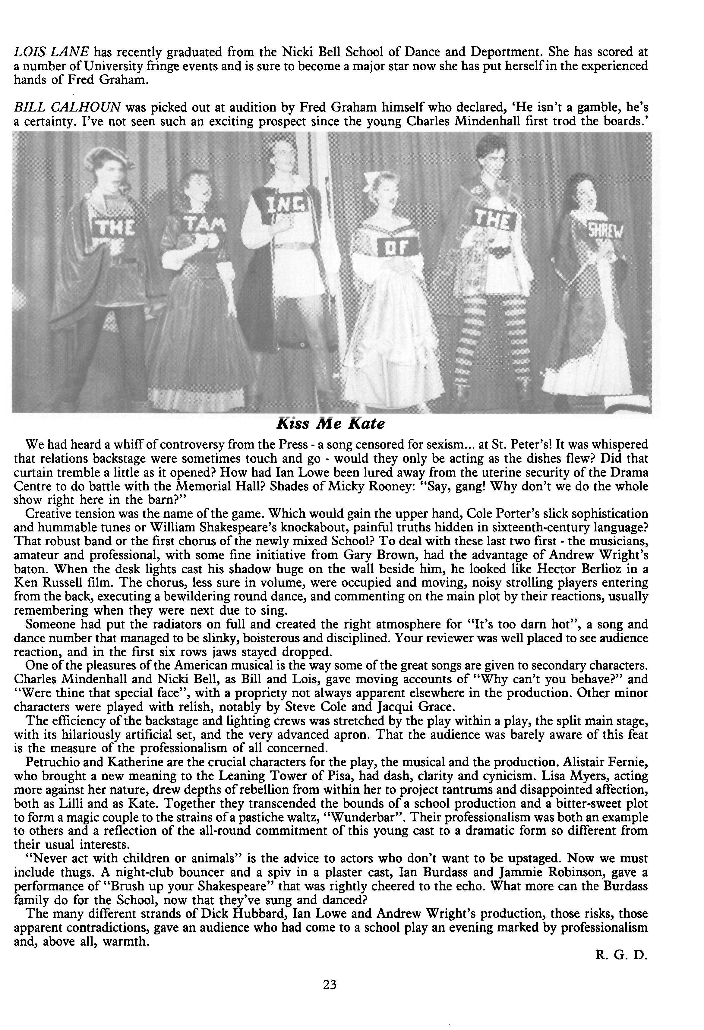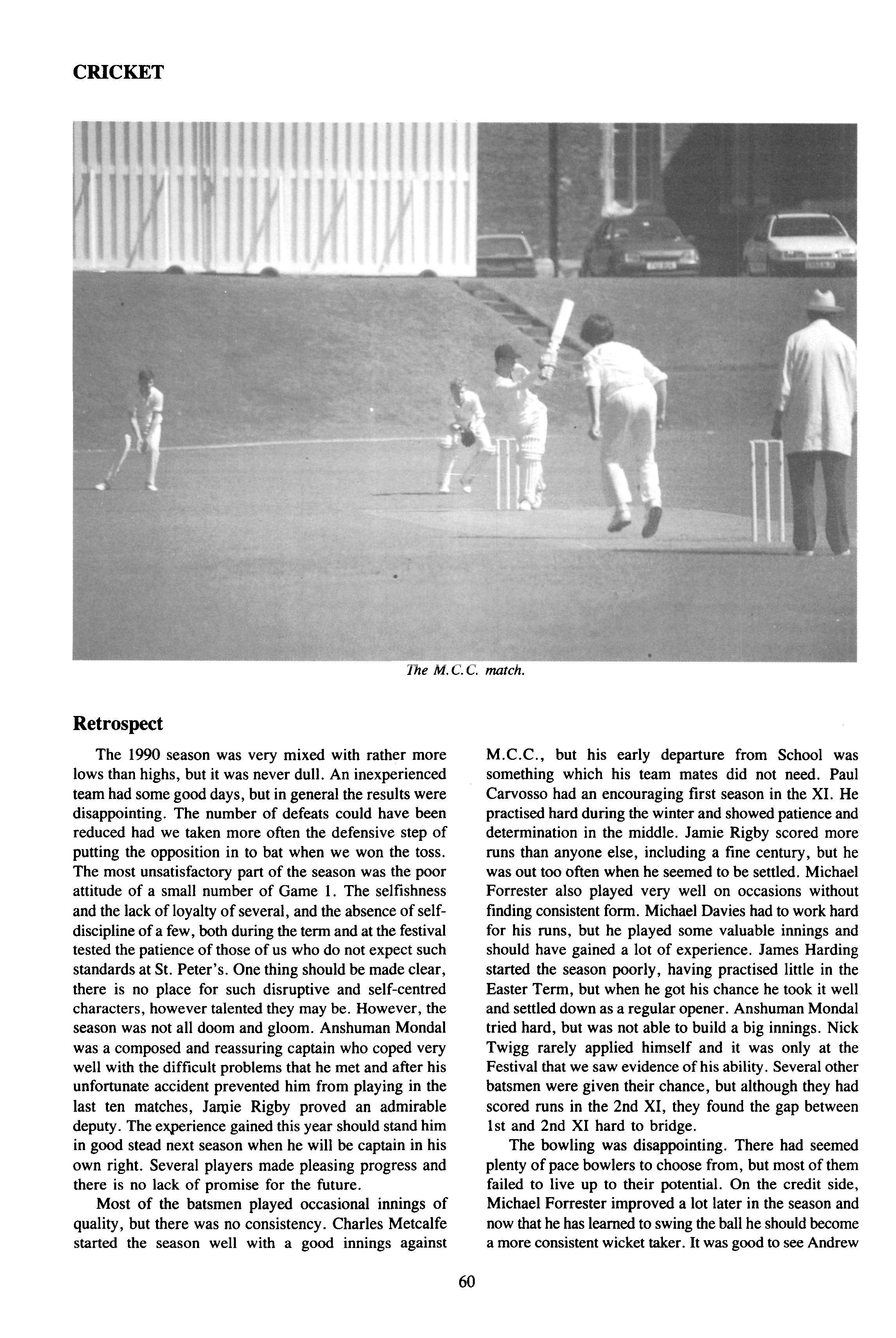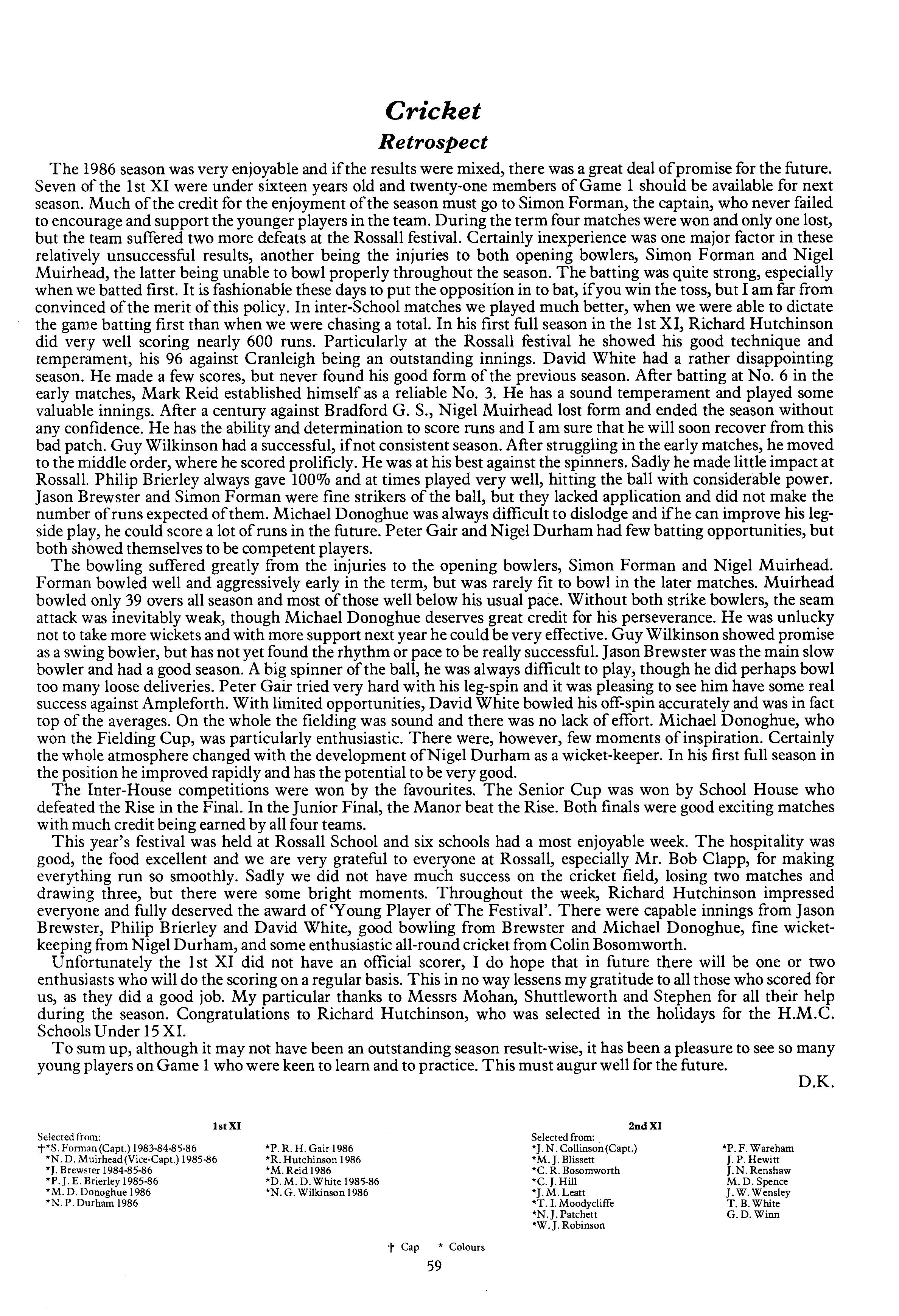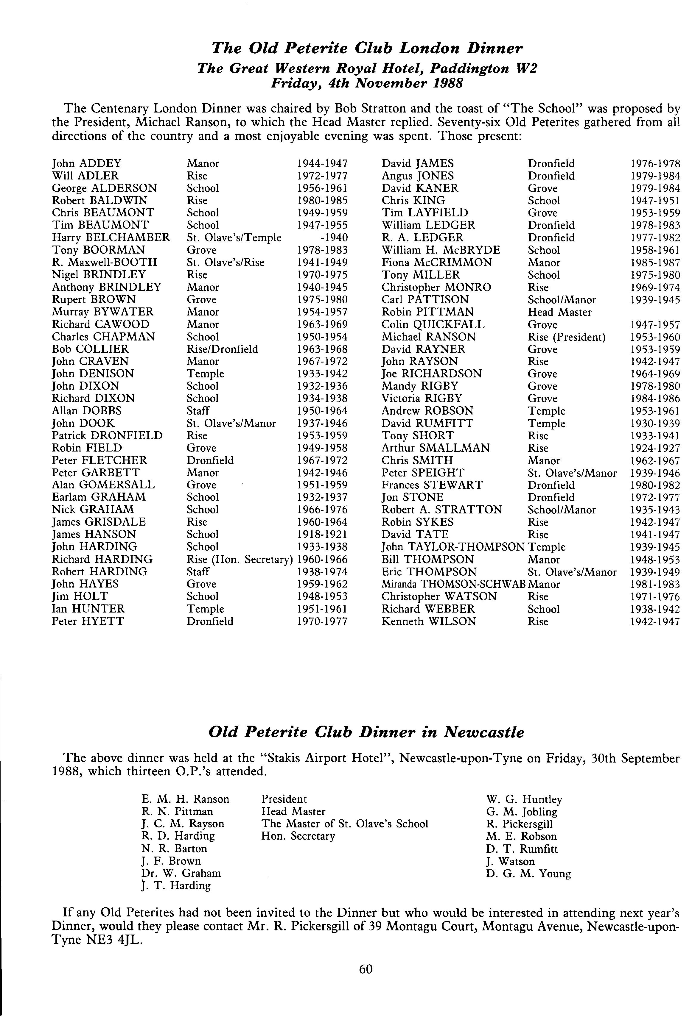 Before moving to mytheme - to improve rather then preserve - I have one pleasant and necessary task to fulfil in paying tribute to my immediate predecessor as Head Master, David Cummin, because improvement was surely the hall-mark ofhis four terms in office Iwant to acknowledge his immense contribution to St Peter's over many years as teacher of history, as housemaster and latterly as Head Master, when he selflessly returned from retirement to guide the School with steady wisdom and great loyalty St Peter's oweshim ahuge debt, and weare glad that he and hiswife are enjoying what wehope willbeaverylong and happy second retirement
