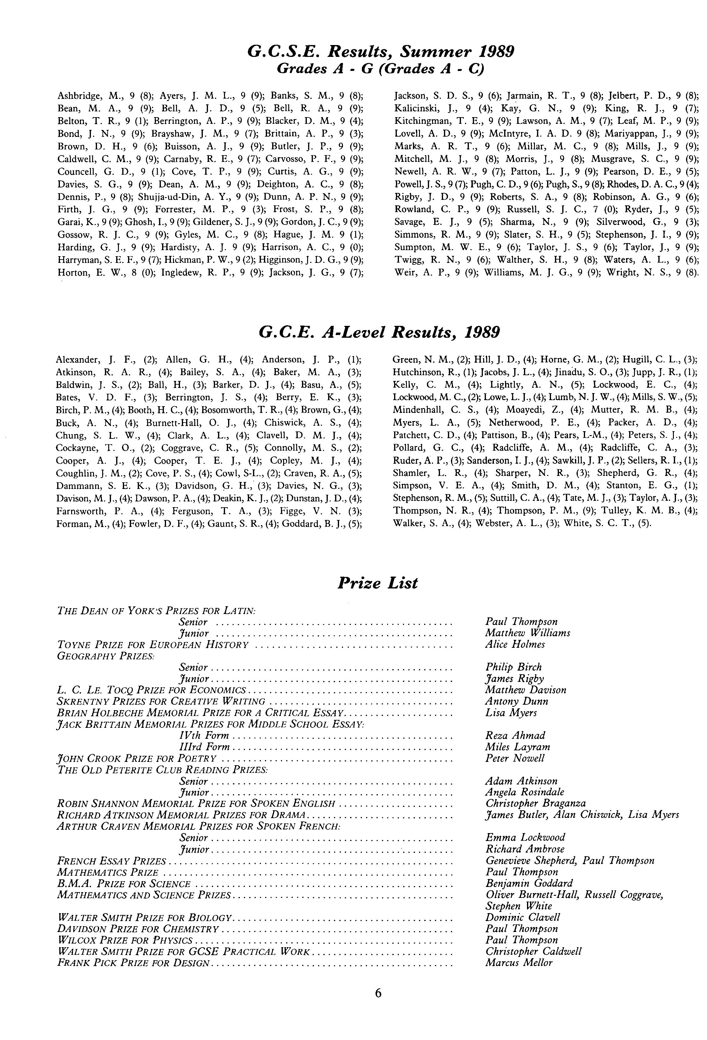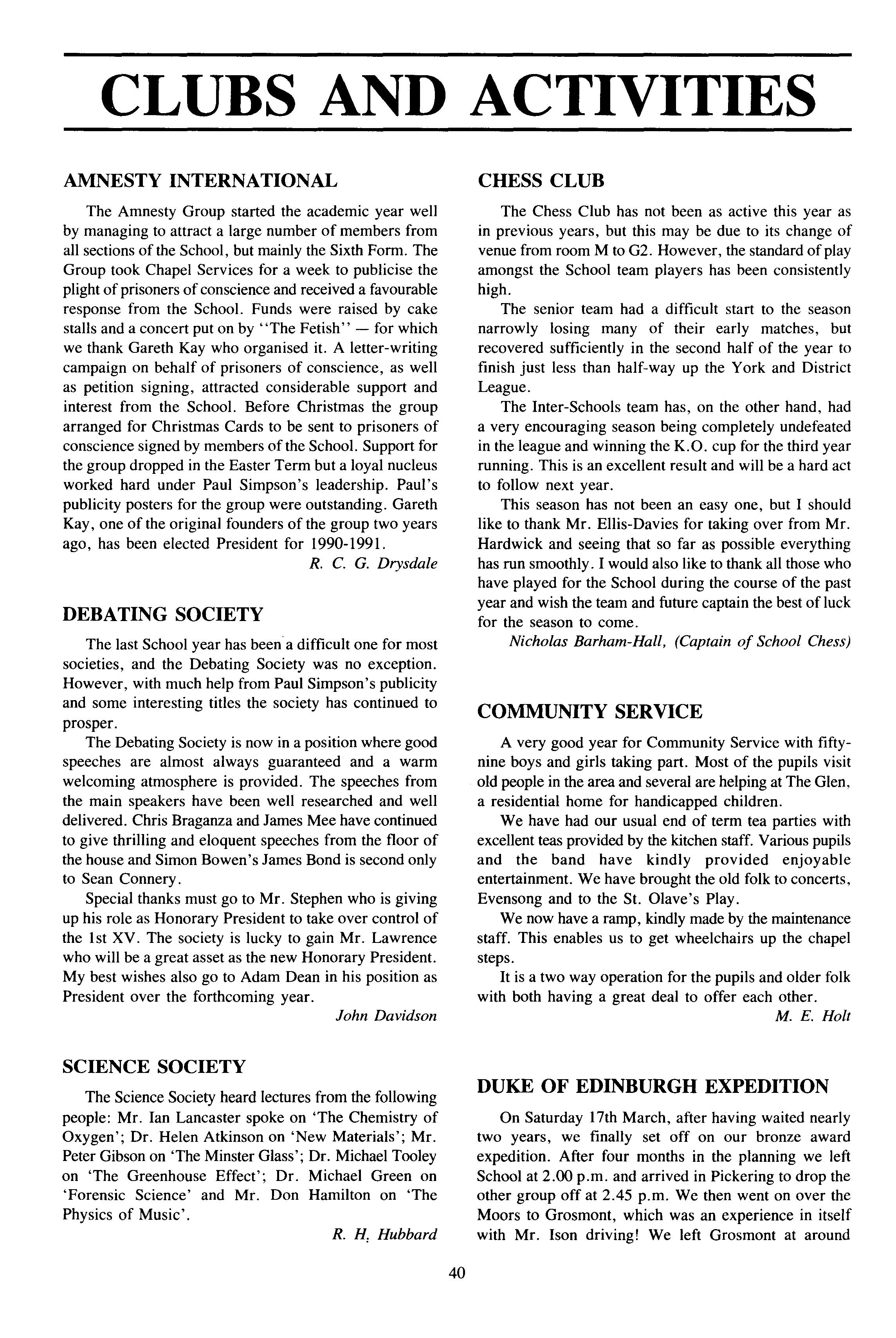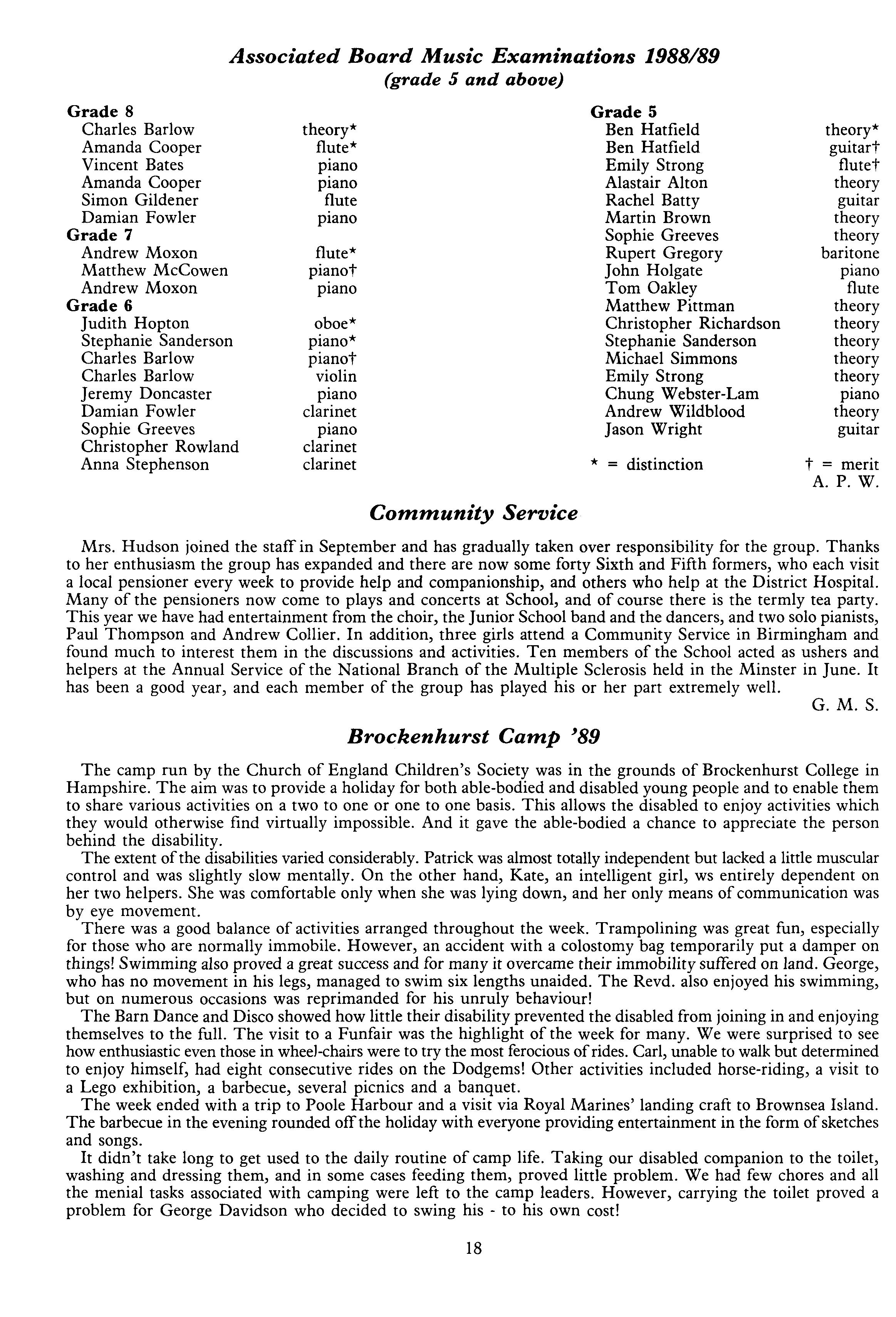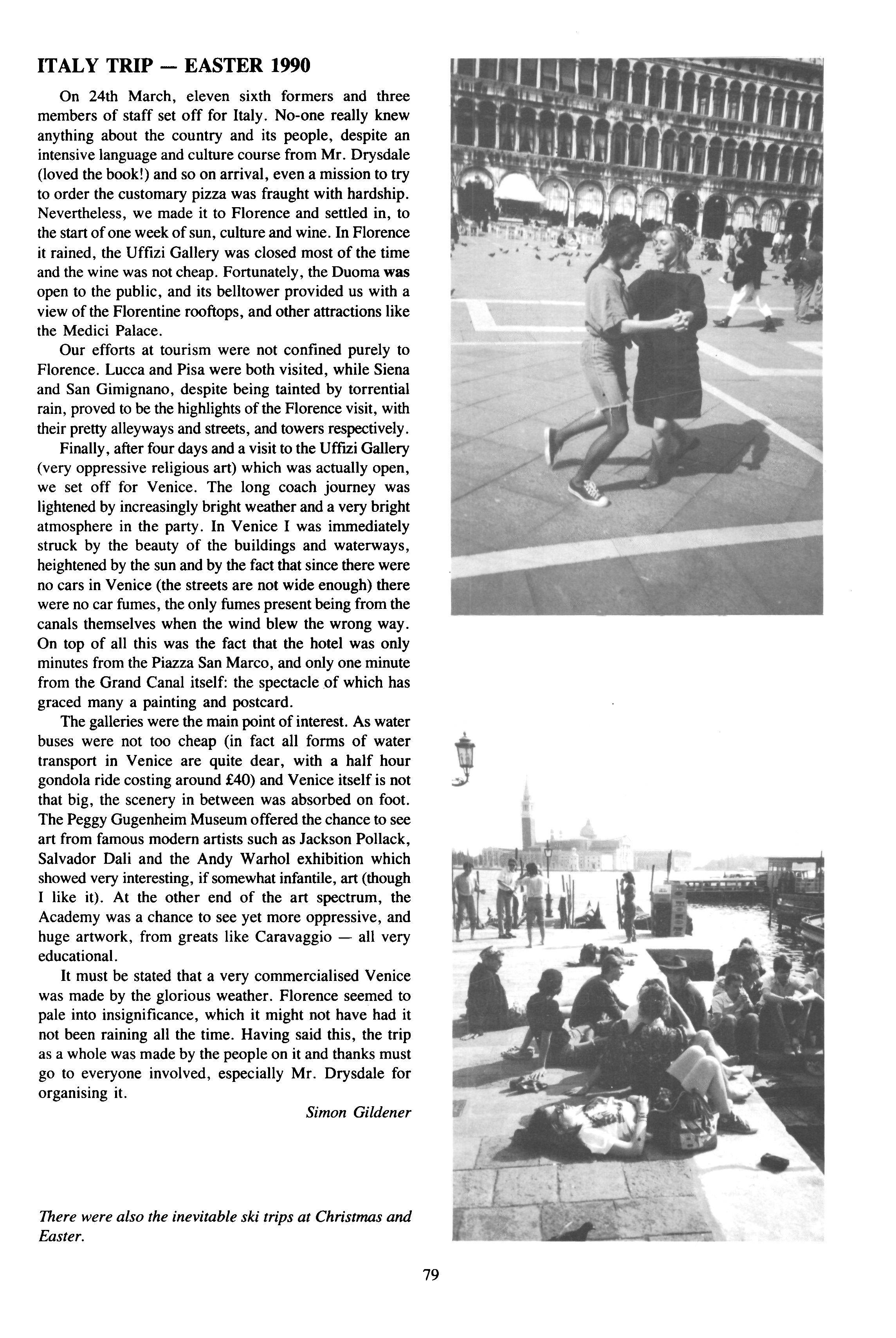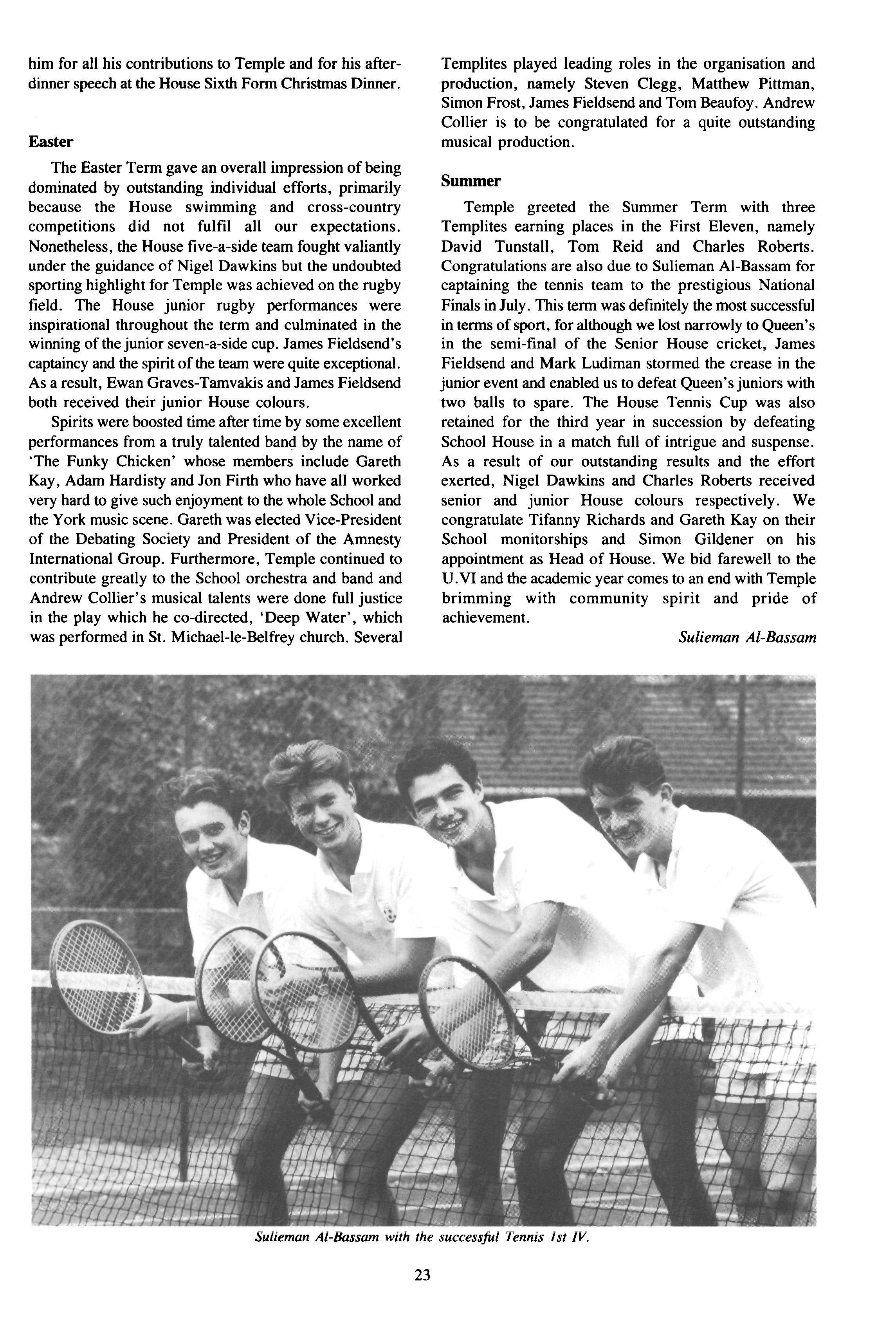 It is customary on these occasions to list a large number of activities and events to illustrate the breadth of the School's extra-curricular life. This 'hidden curriculum' should surely be a very important part of what any good school has to offer, and I was glad to discover that much which is both worthwhile and enjoyable flourished here outside the timetabled lessons. I firmly hold the view that it is the boy or girl who works hard and successfully at his or her studies and is also involved fully in all that the School offers outside the classroom who receives the truly fulfilling education Gibbon had the right ideawhen hewrote this ofthe Emperor Gordian:
