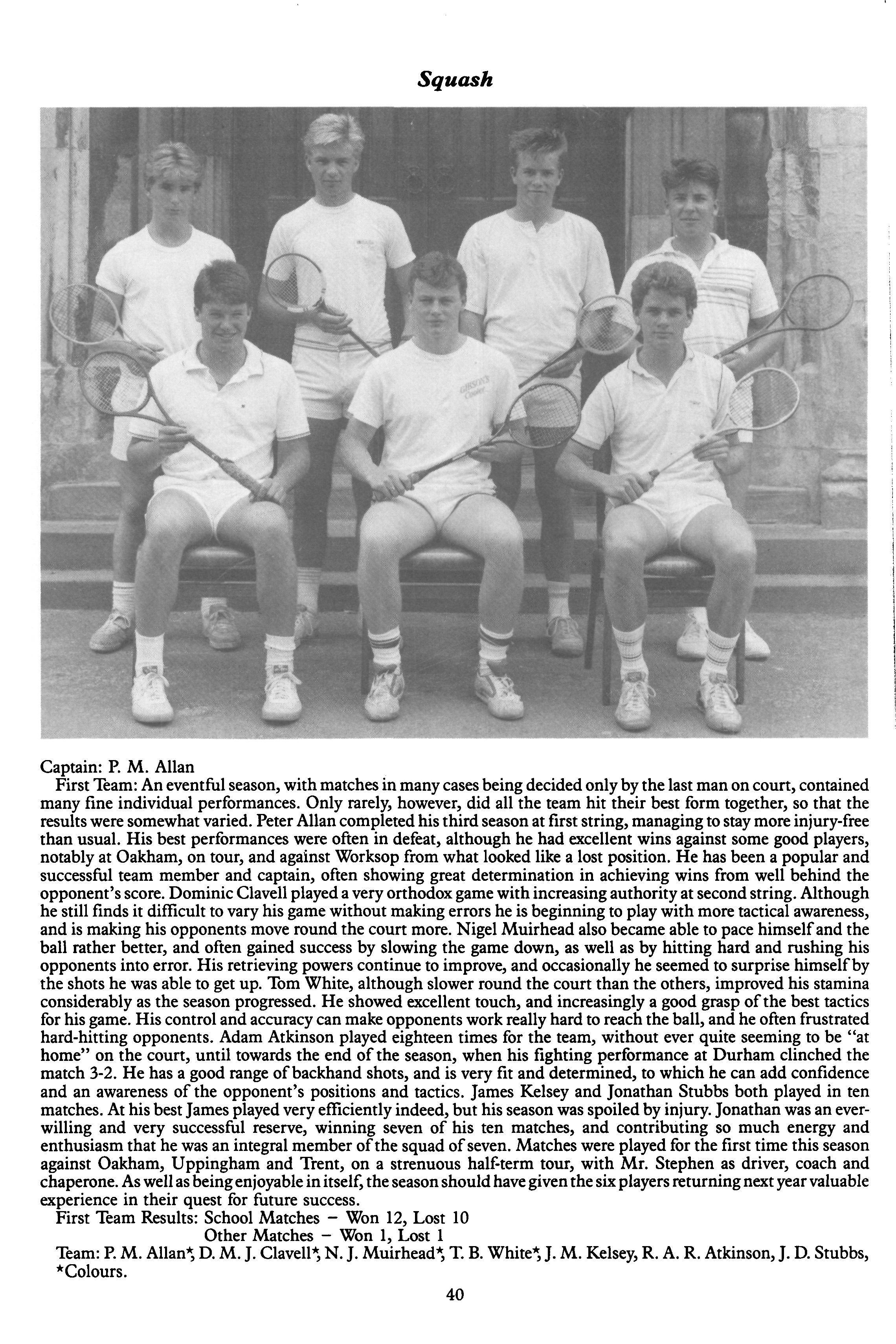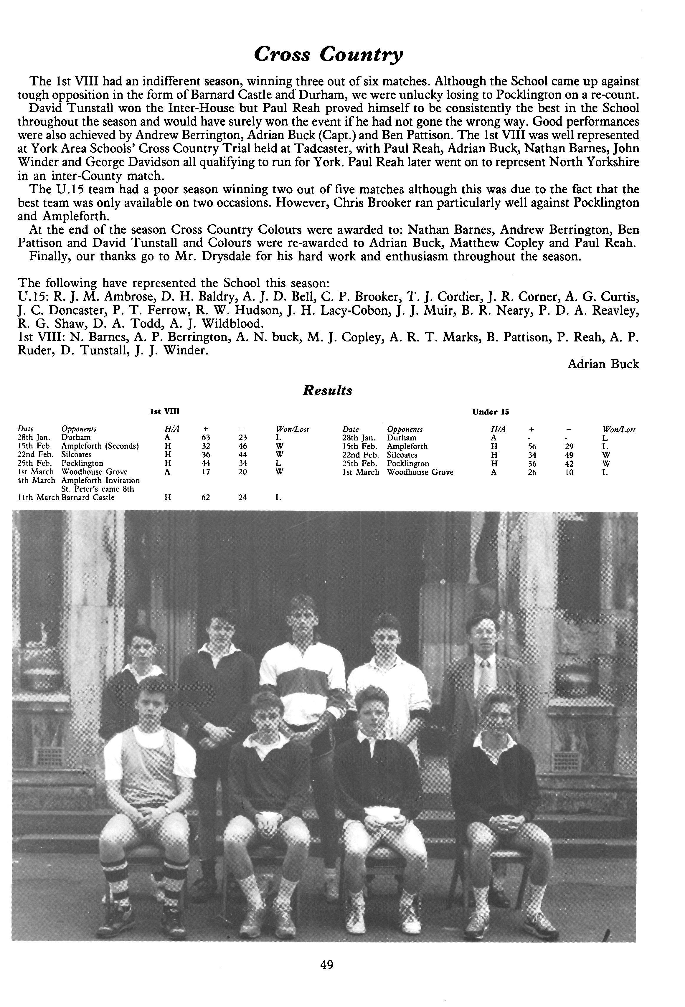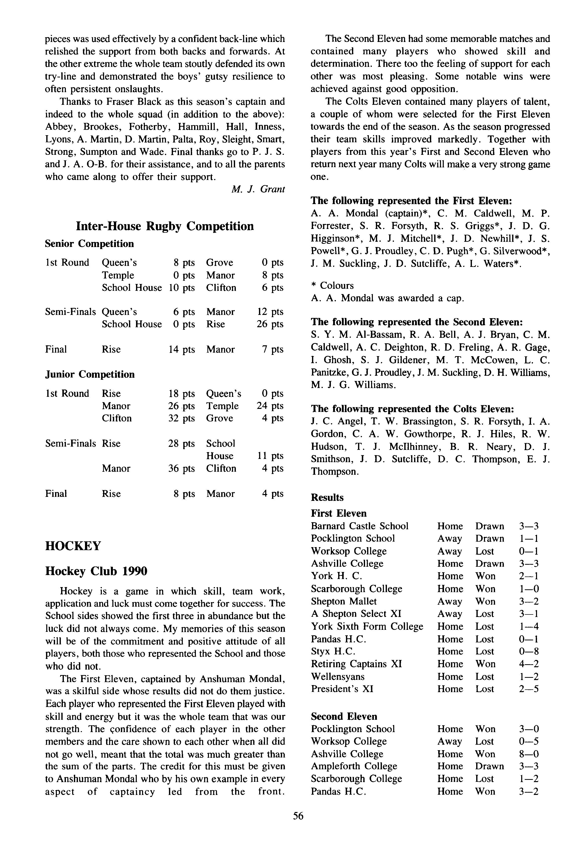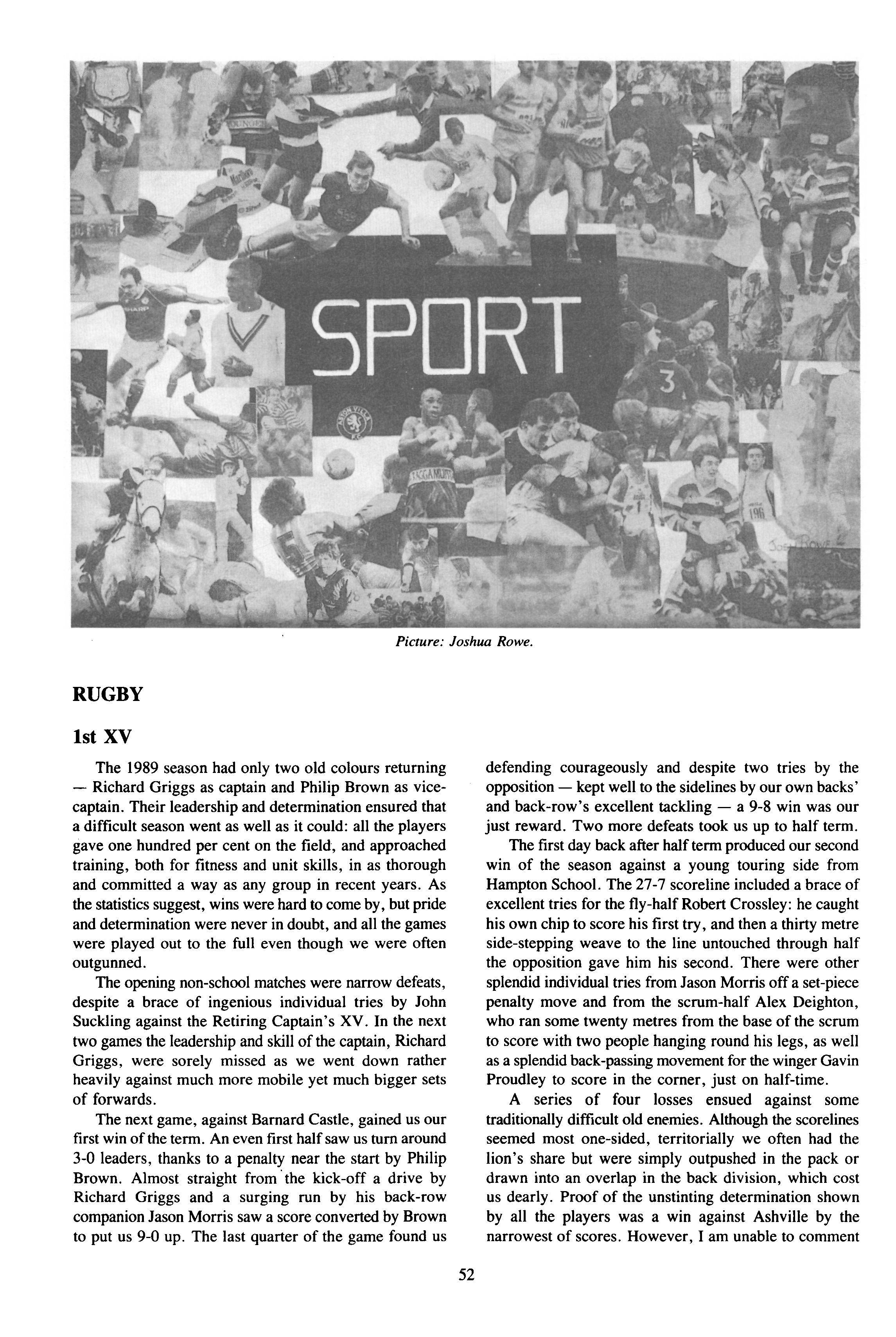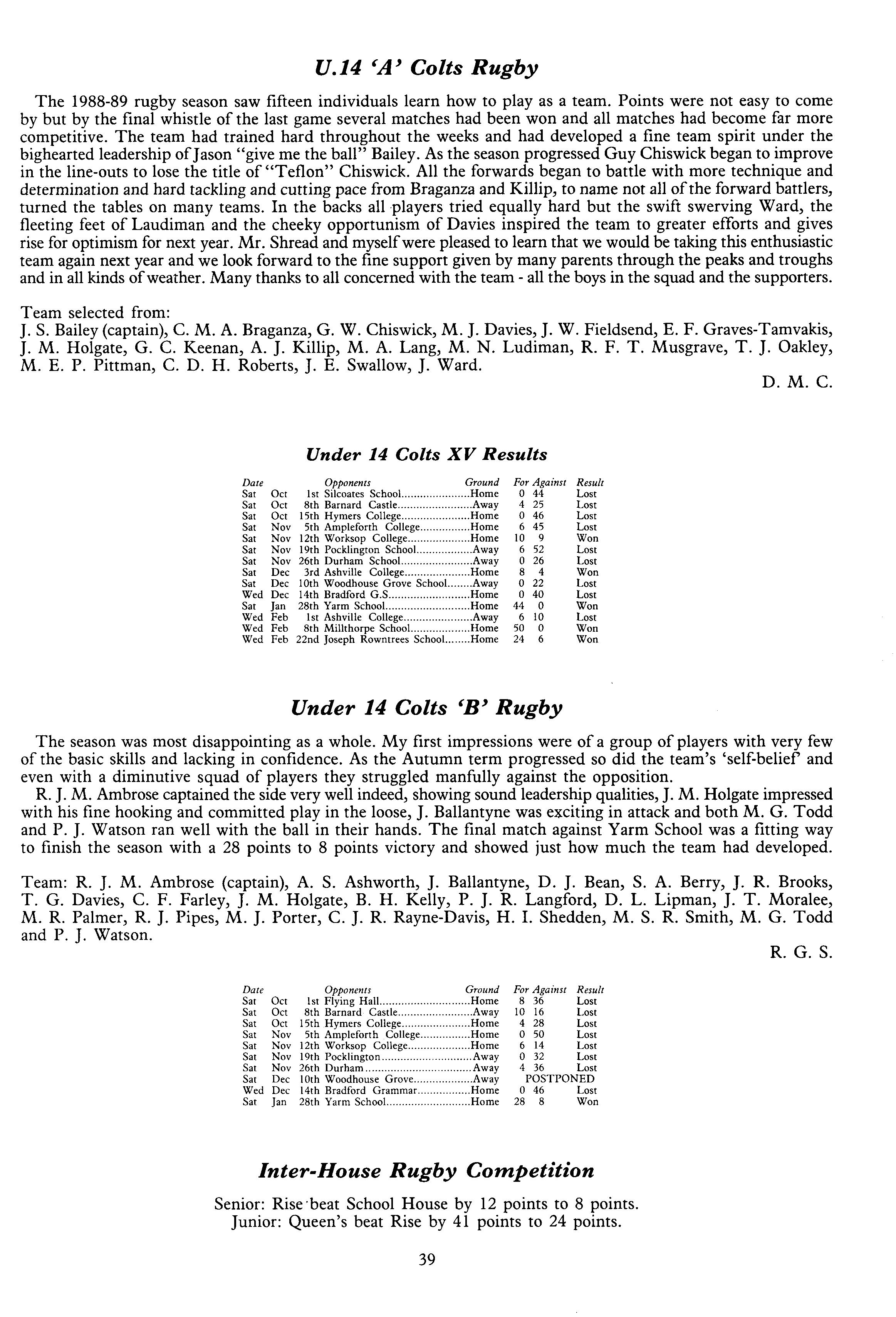 Outside the classroom he was always busy He was a very keen and noisy rugger coach and ran the U 15 team for many years with tremendous enthusiasm; in 1984-85 histeam achieved the rare feat ofbeingunbeaten!His interests were many, but whether it was acourse in car maintenance, playing soccer or basketball against the boys, helping to run the athletics, or organising a small but enthusiastic lunchtime bridge club, he did everything with tremendous zest He even found time tobetheAssistant in the new House, Clifton