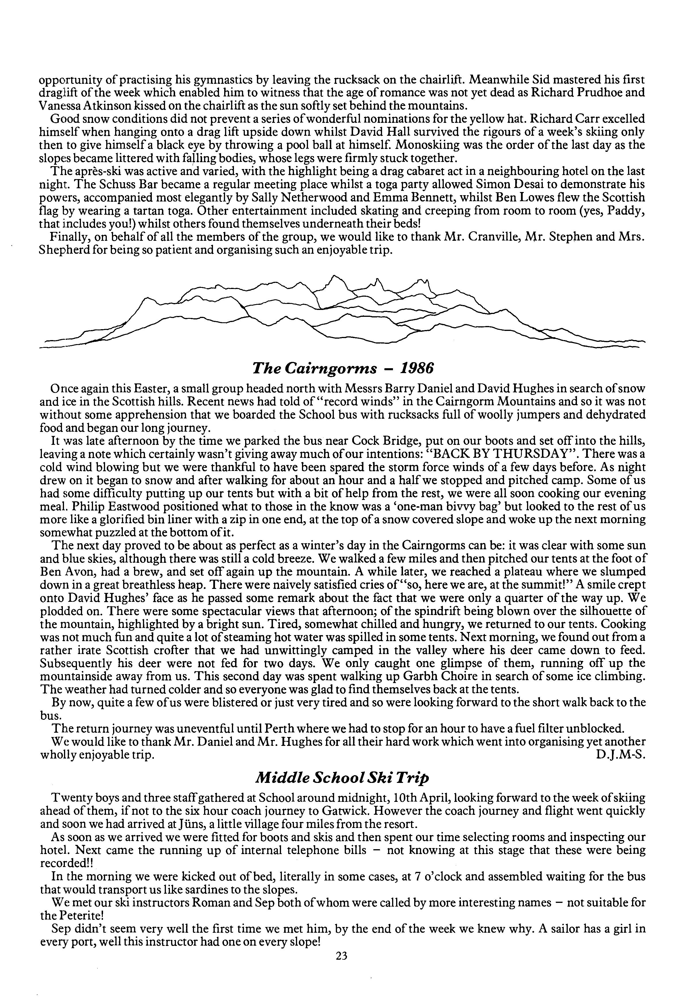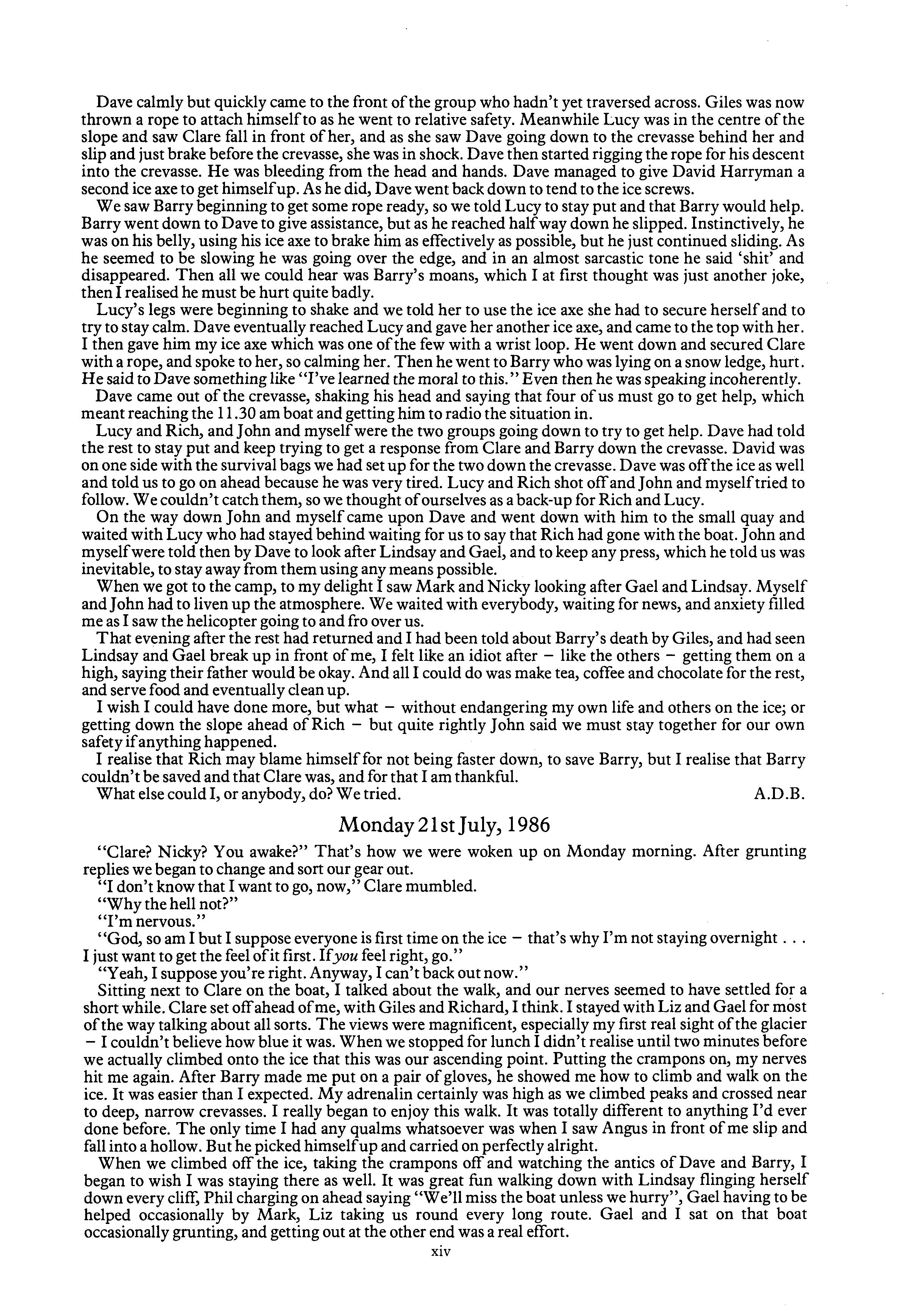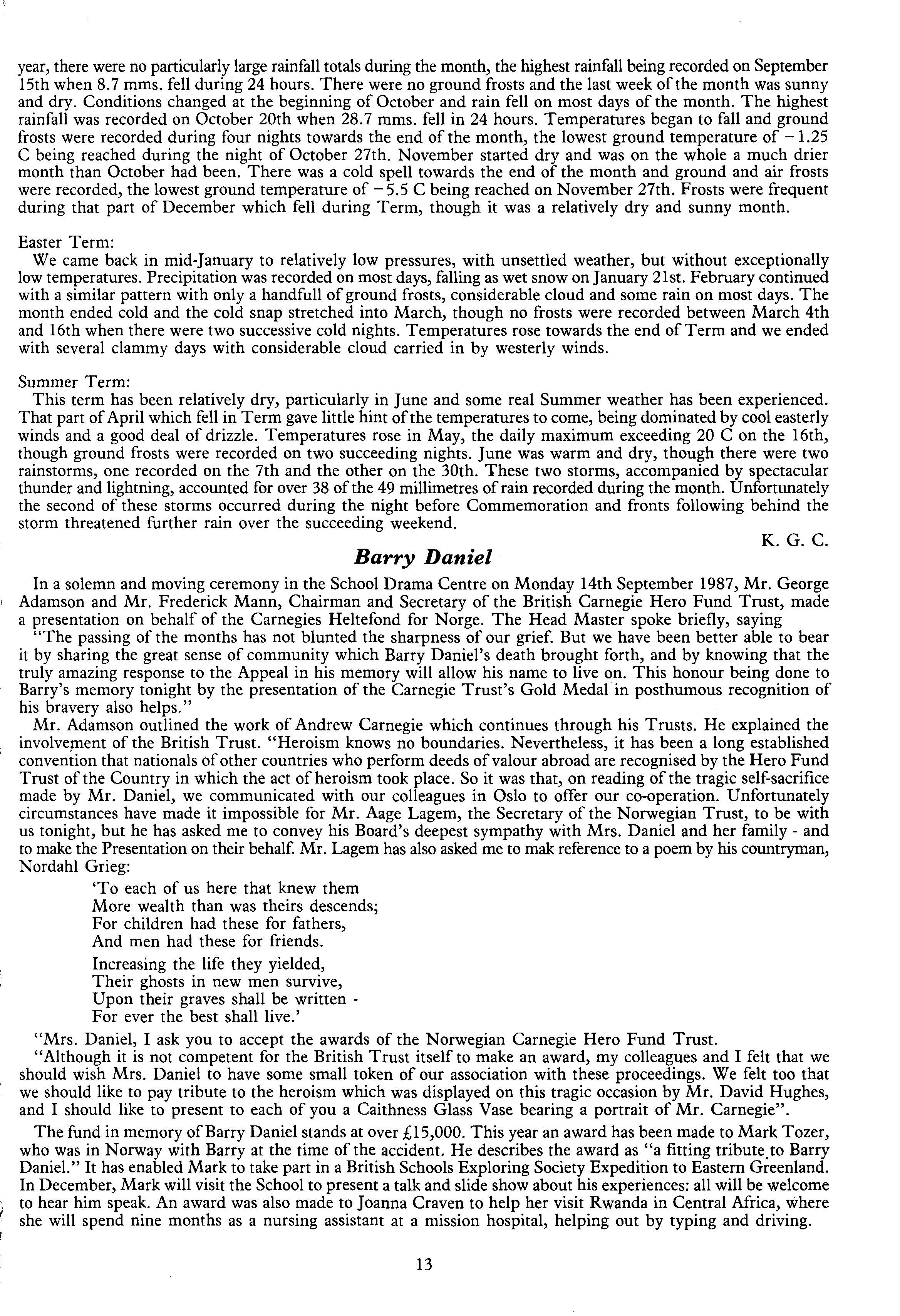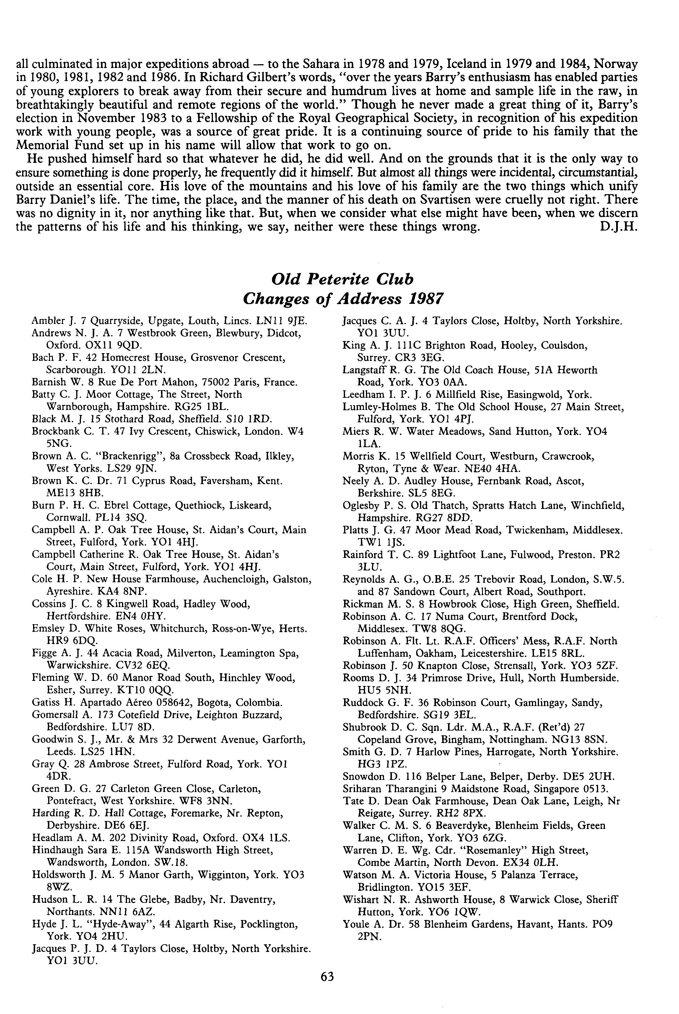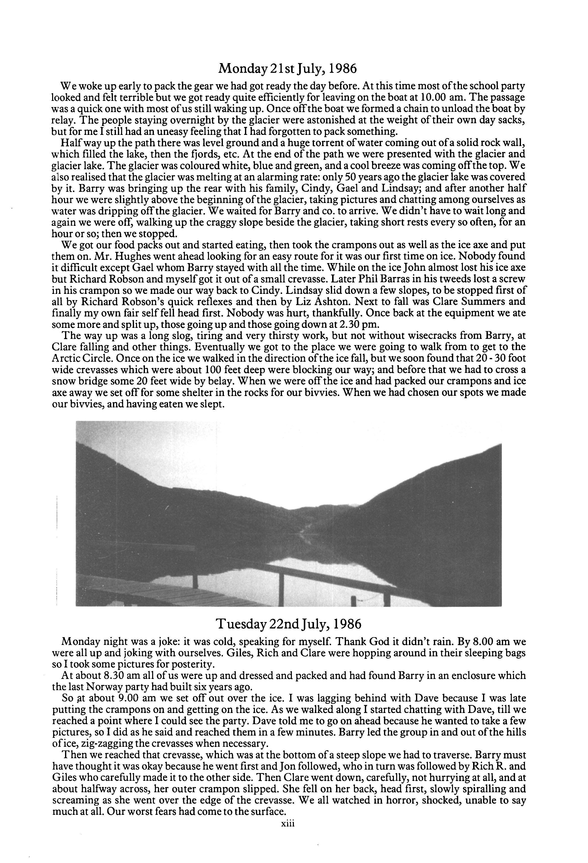 This number wasdesigned to celebrate the centenary ofthe foundation ofthe Old Peterite Club in 1886;and soit does But on the 22nd July 1986 came the dreadful news from Norway that Mr R B Daniel had been killed in a climbing accident on the Svartisen glacier, while leading a School group To him too we dedicate this edition asa tribute to his courage and skill as a mountaineer as well to the memory ofa fine and dedicated schoolmaster, whom weallmisswith aching hearts