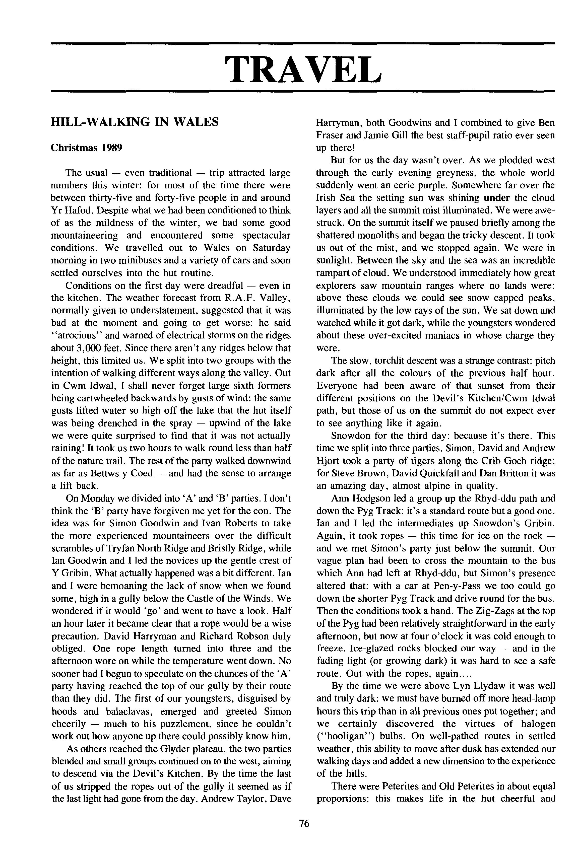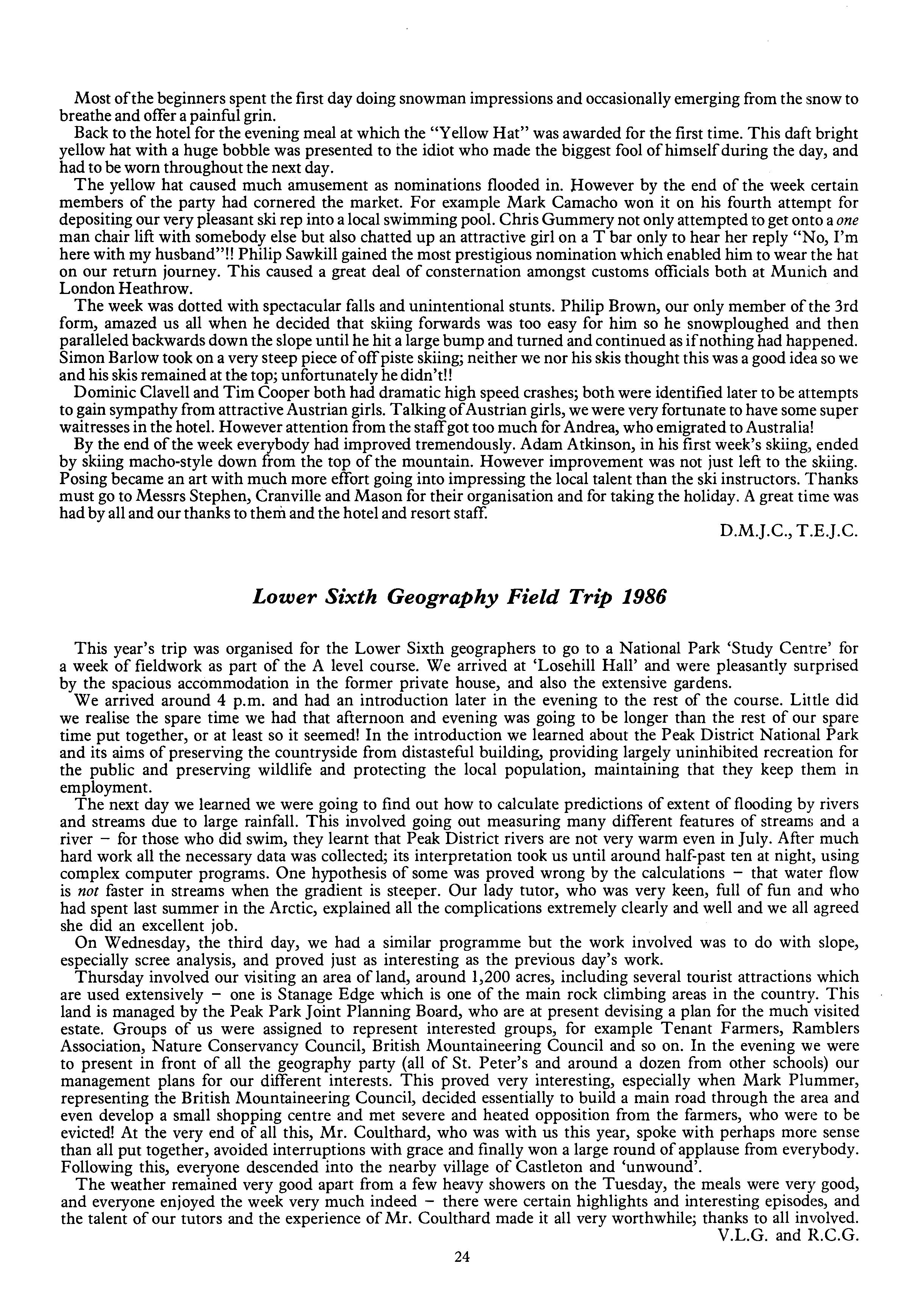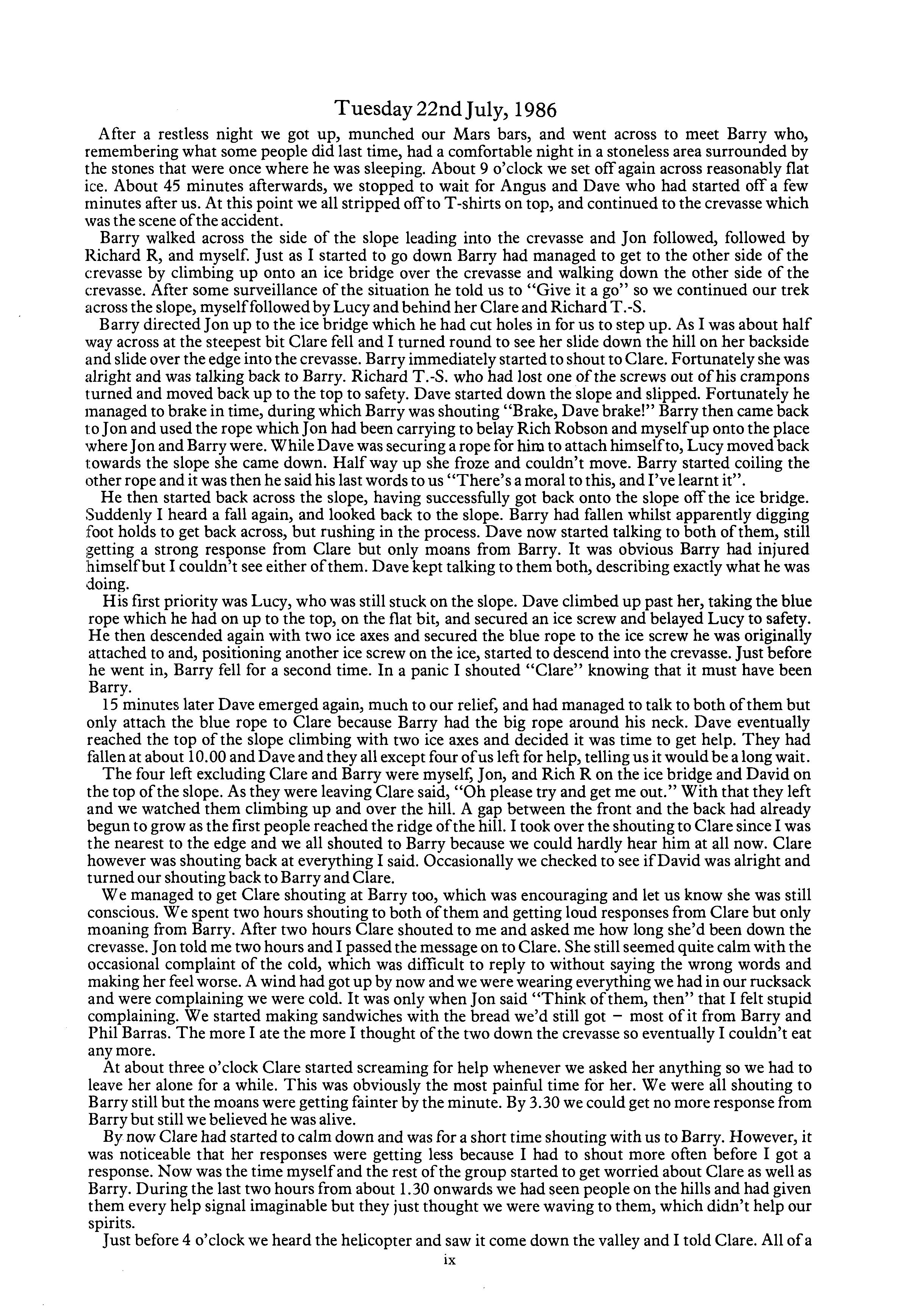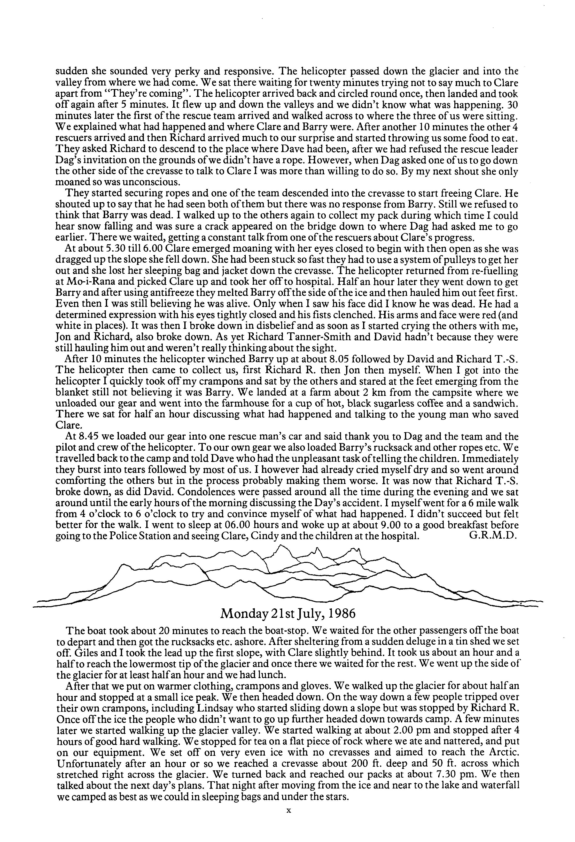 This number wasdesigned to celebrate the centenary ofthe foundation ofthe Old Peterite Club in 1886;and soit does But on the 22nd July 1986 came the dreadful news from Norway that Mr R B Daniel had been killed in a climbing accident on the Svartisen glacier, while leading a School group To him too we dedicate this edition asa tribute to his courage and skill as a mountaineer as well to the memory ofa fine and dedicated schoolmaster, whom weallmisswith aching hearts
