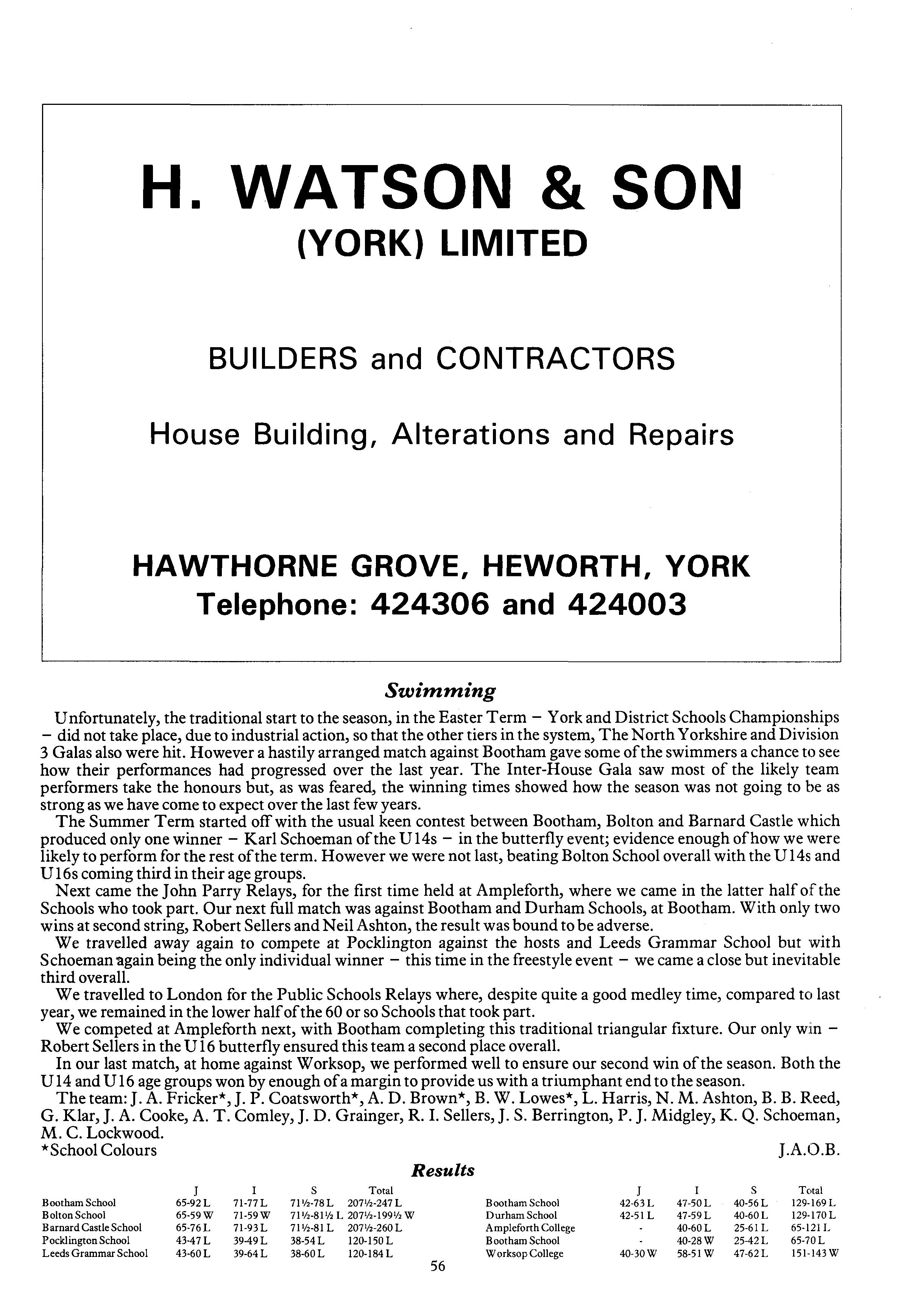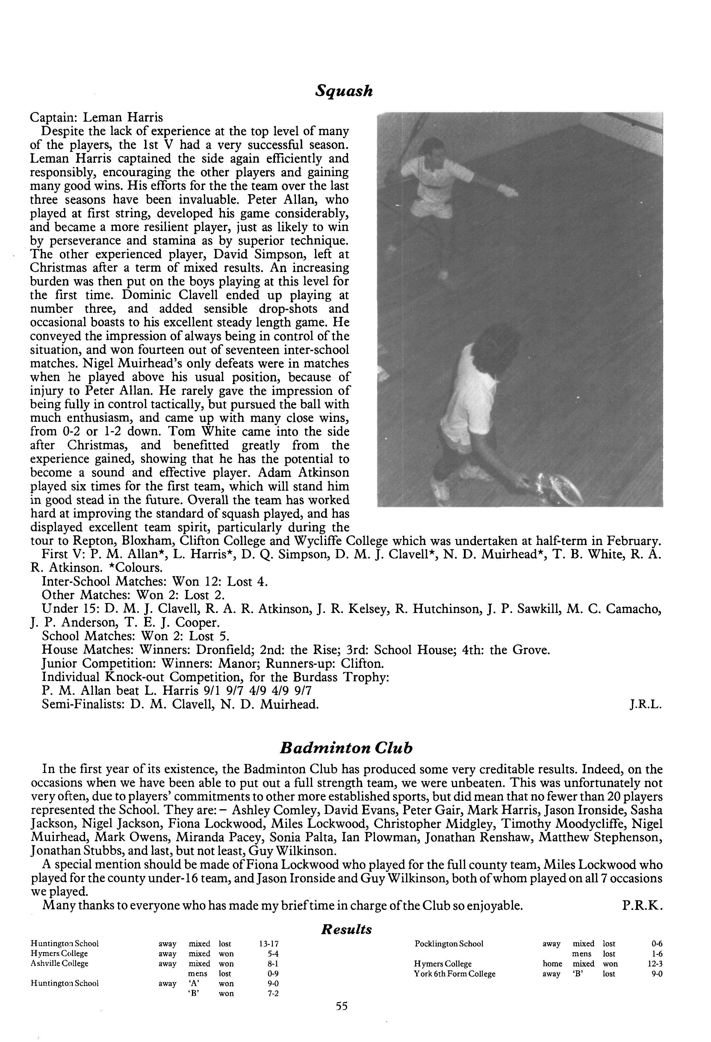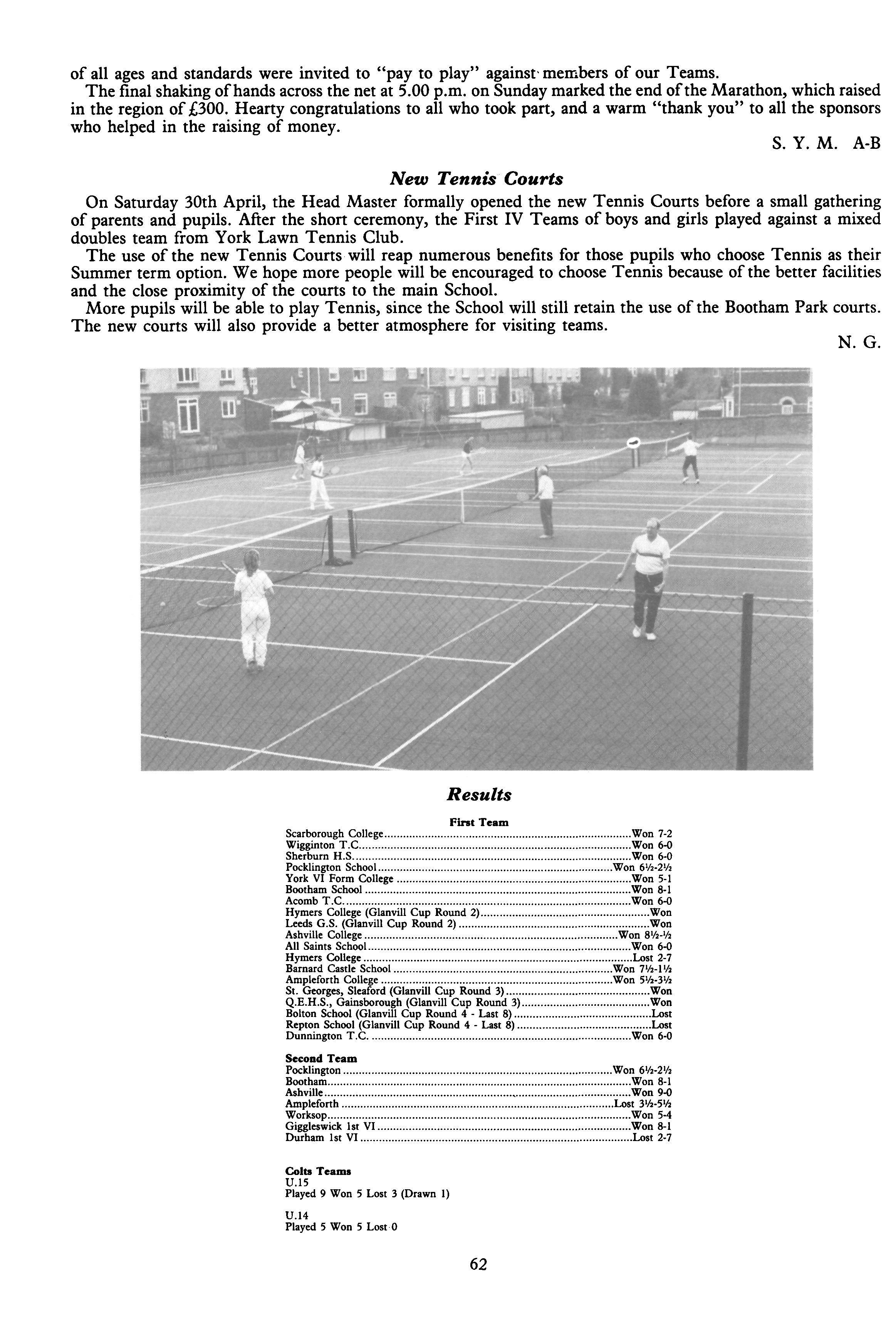 In the course ofthis report, Mr. Chairman, I have tried to give an impression ofwhat has been happening during this past year. Asto the future, much else remains to be accomplished. Our curriculum and teaching resources must be continuously reviewed and improved. Our out-of-school activities must be constantly enriched (and a particular ambition ofmine isto see our pupils undertaking some social service among the local community ofthe City). There are shabby areas of the School which need fresh paint, refurbishment and new asphalt. A special opportunity may come our way ifwe are able to purchase the Clifton Methodist church hall which would provide us with additional provision for music and careers and primarily a much enlarged and improved school library (a really urgent need, with our present library quite inadequate and under-stocked for a school of this stature) And, unrelated to coeducation, an all-weather surface for hockey and tennis and new squash courts would be most desirable additions to our sports facilities I very much hope that we will find the means in the medium- rather than the long-term to fund these desirable and necessary improvements