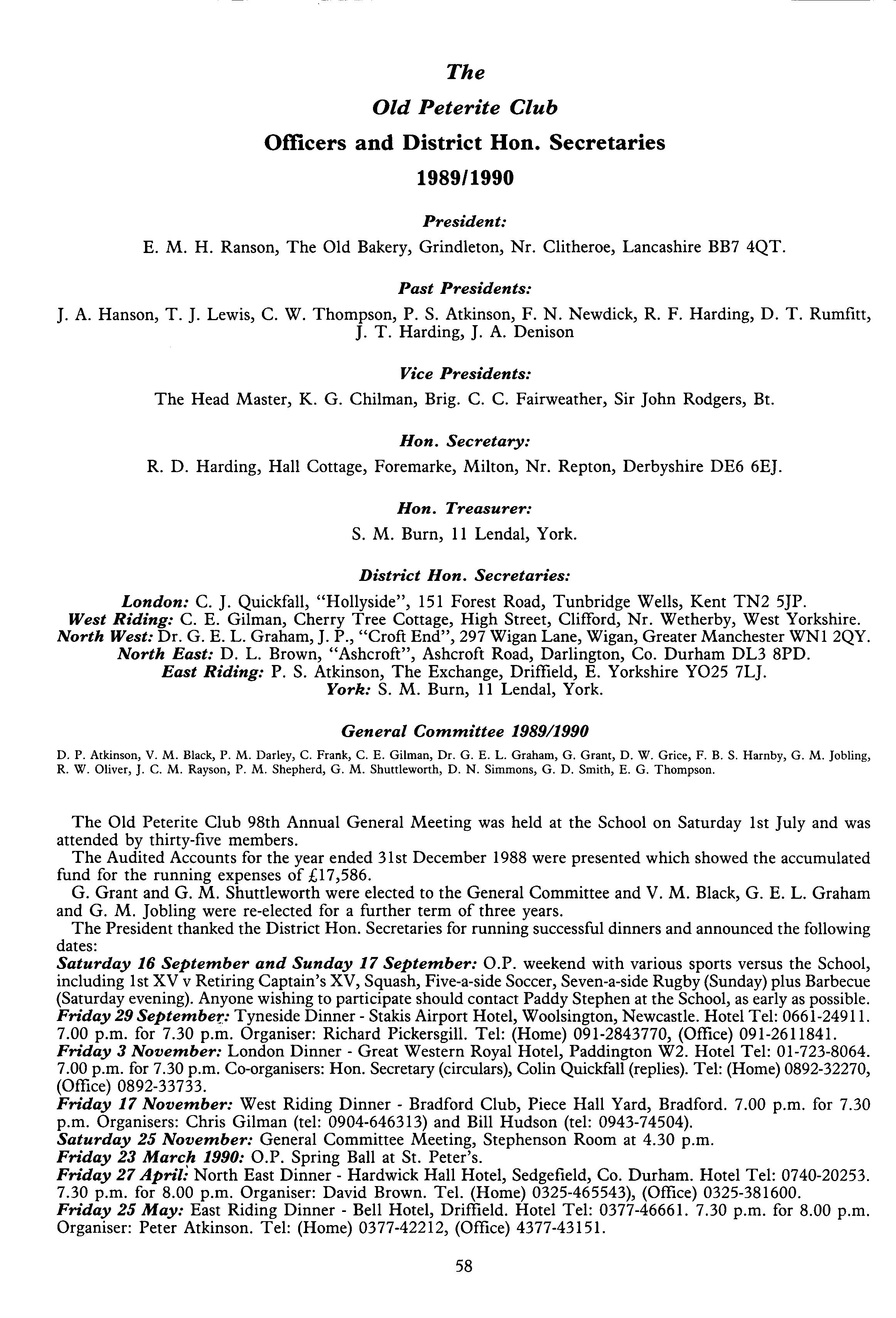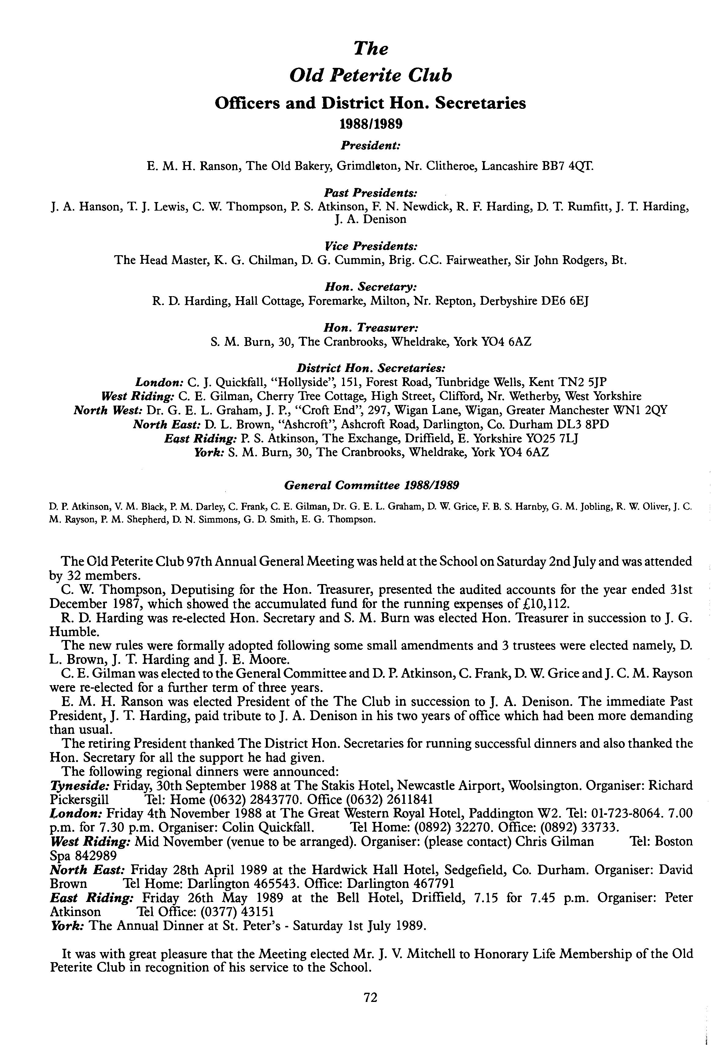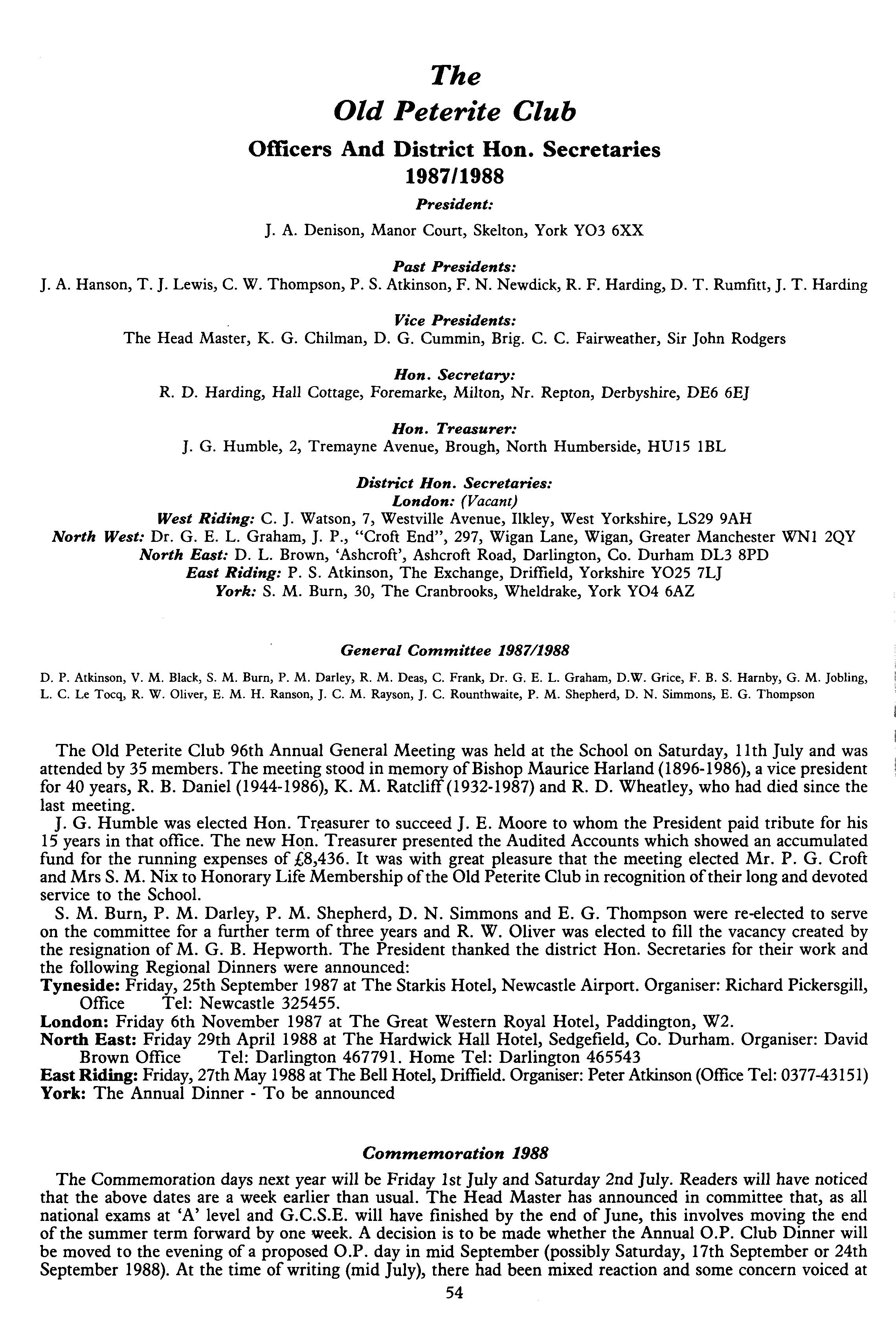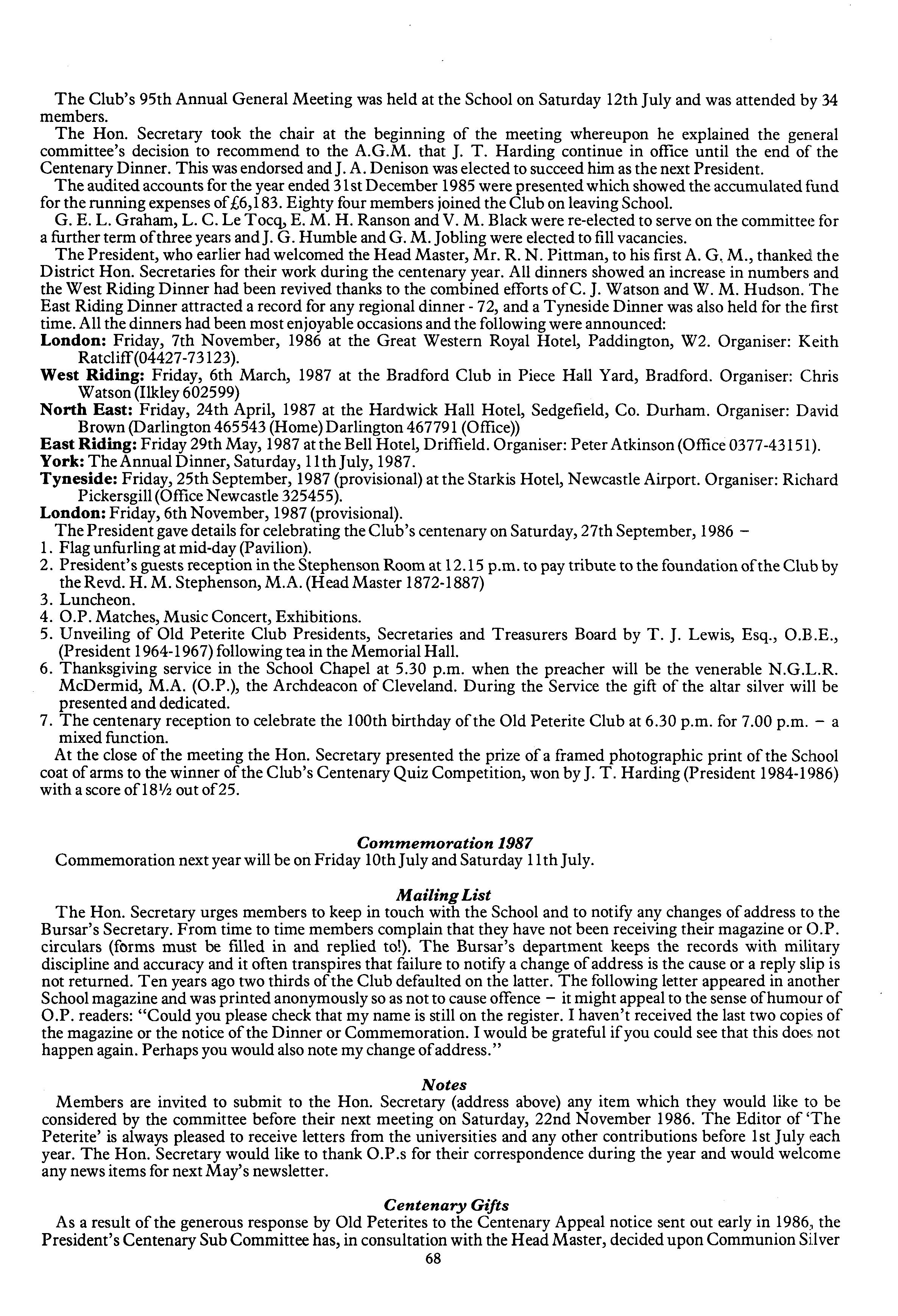 The Old Peterite Club 99th Annual General Meeting was held at the School on Saturday 7th July and was attended by fifty members.