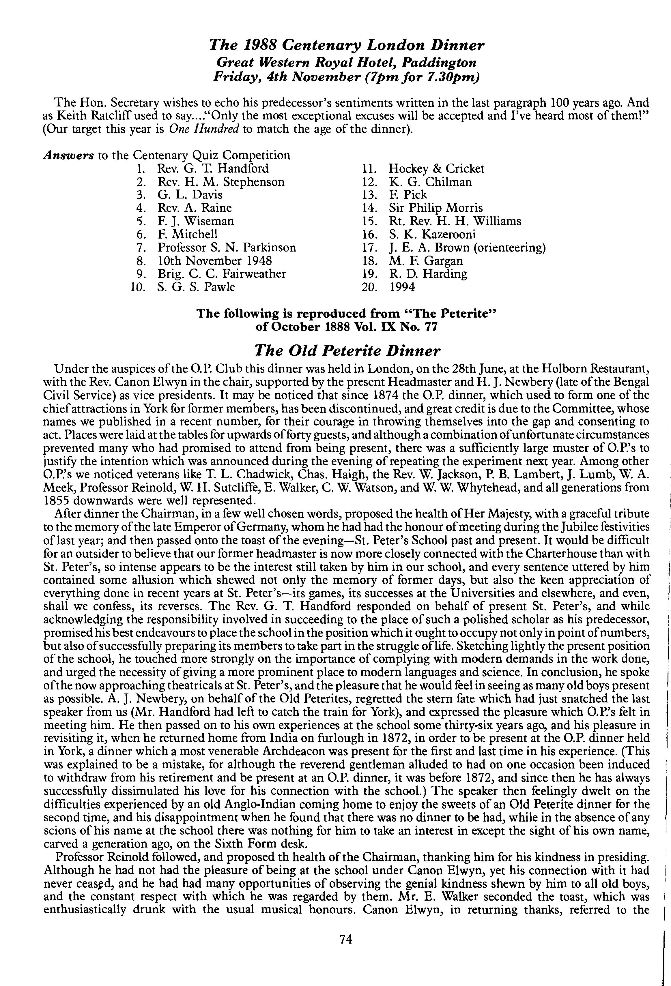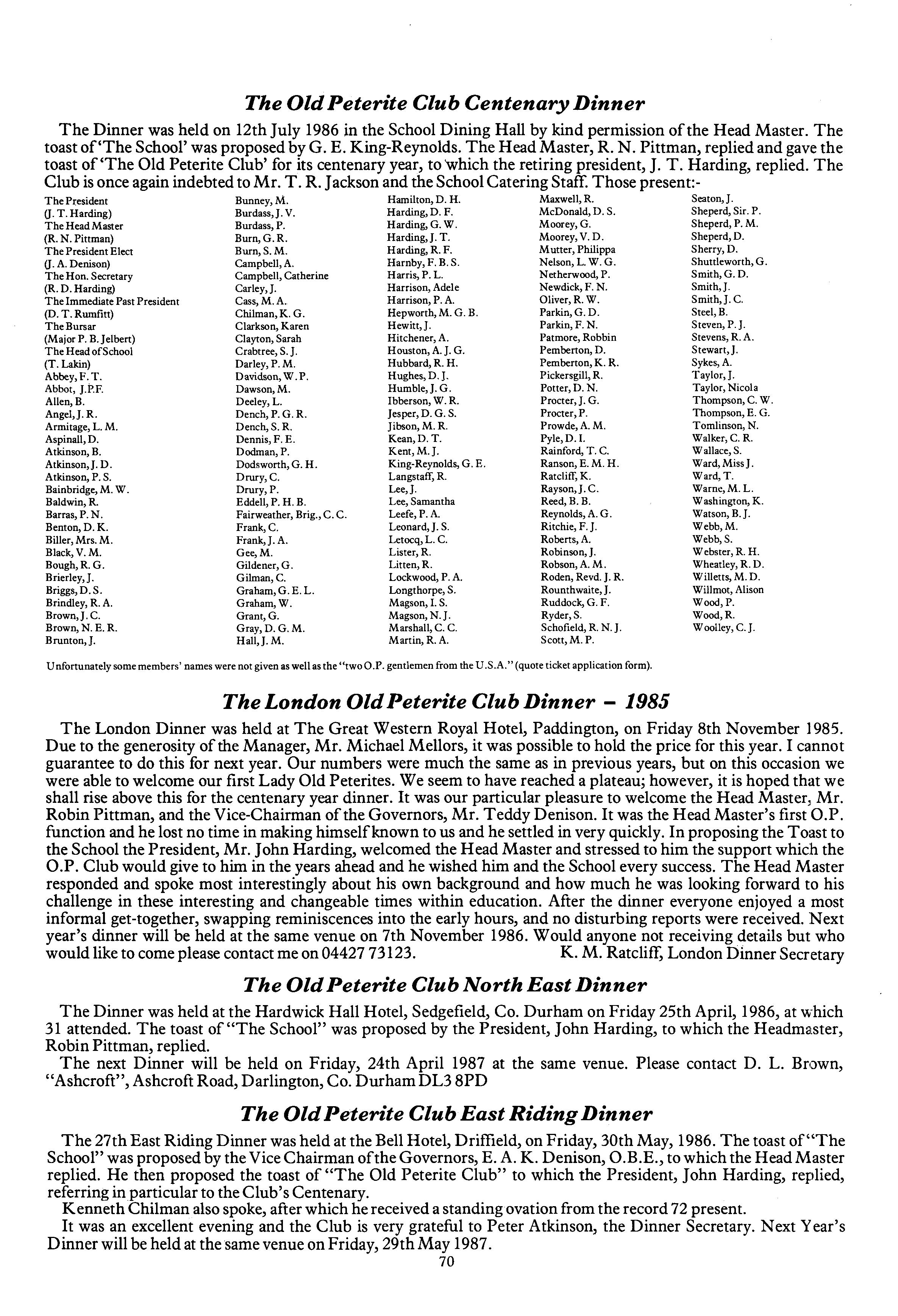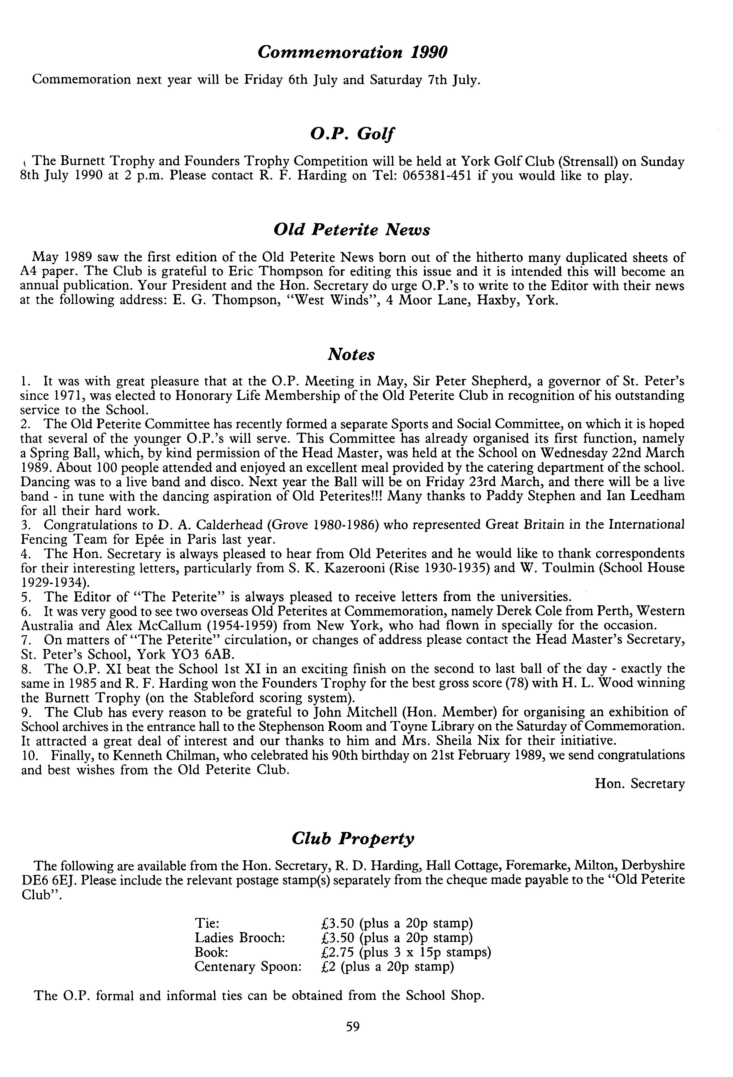 The Old Peterite Club 99th Annual General Meeting was held at the School on Saturday 7th July and was attended by fifty members.