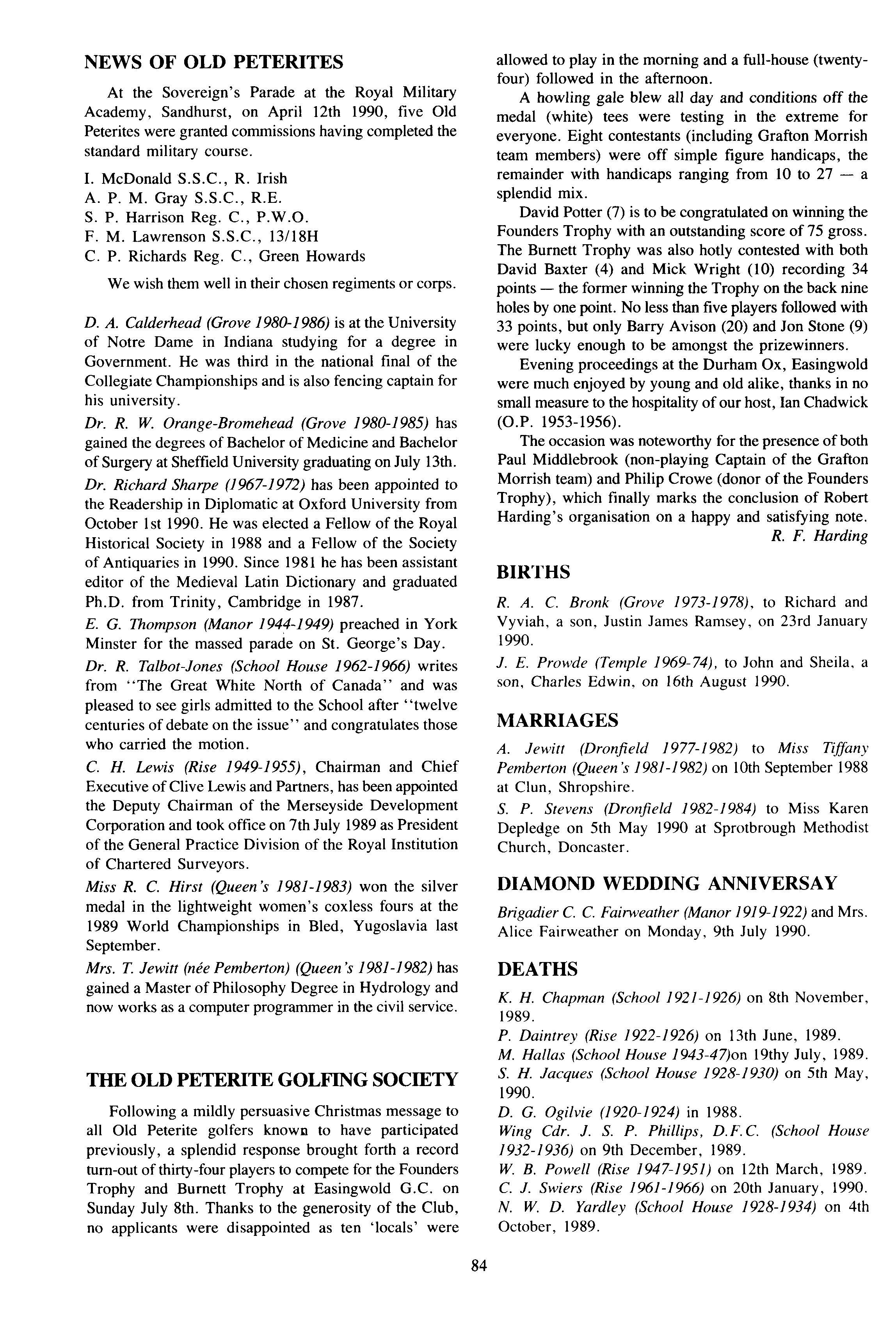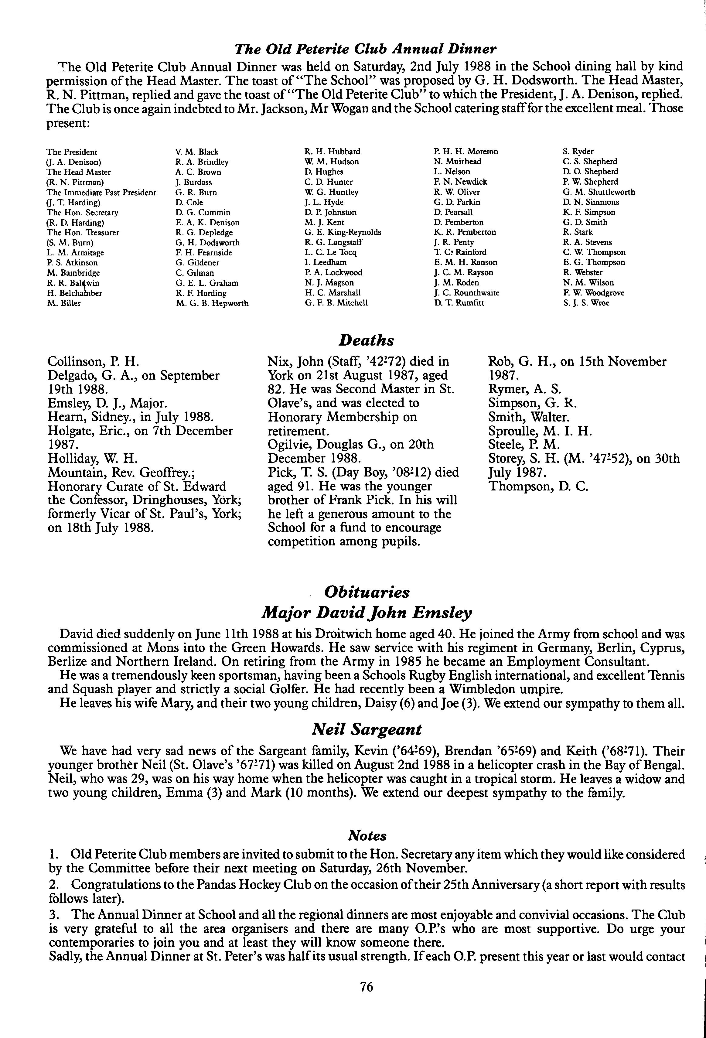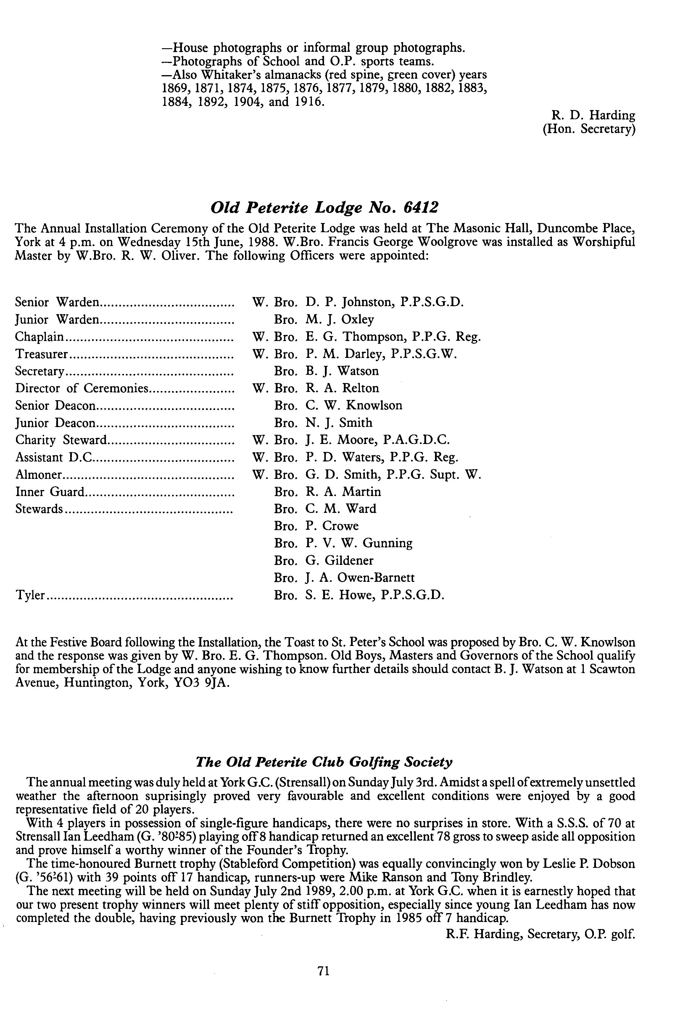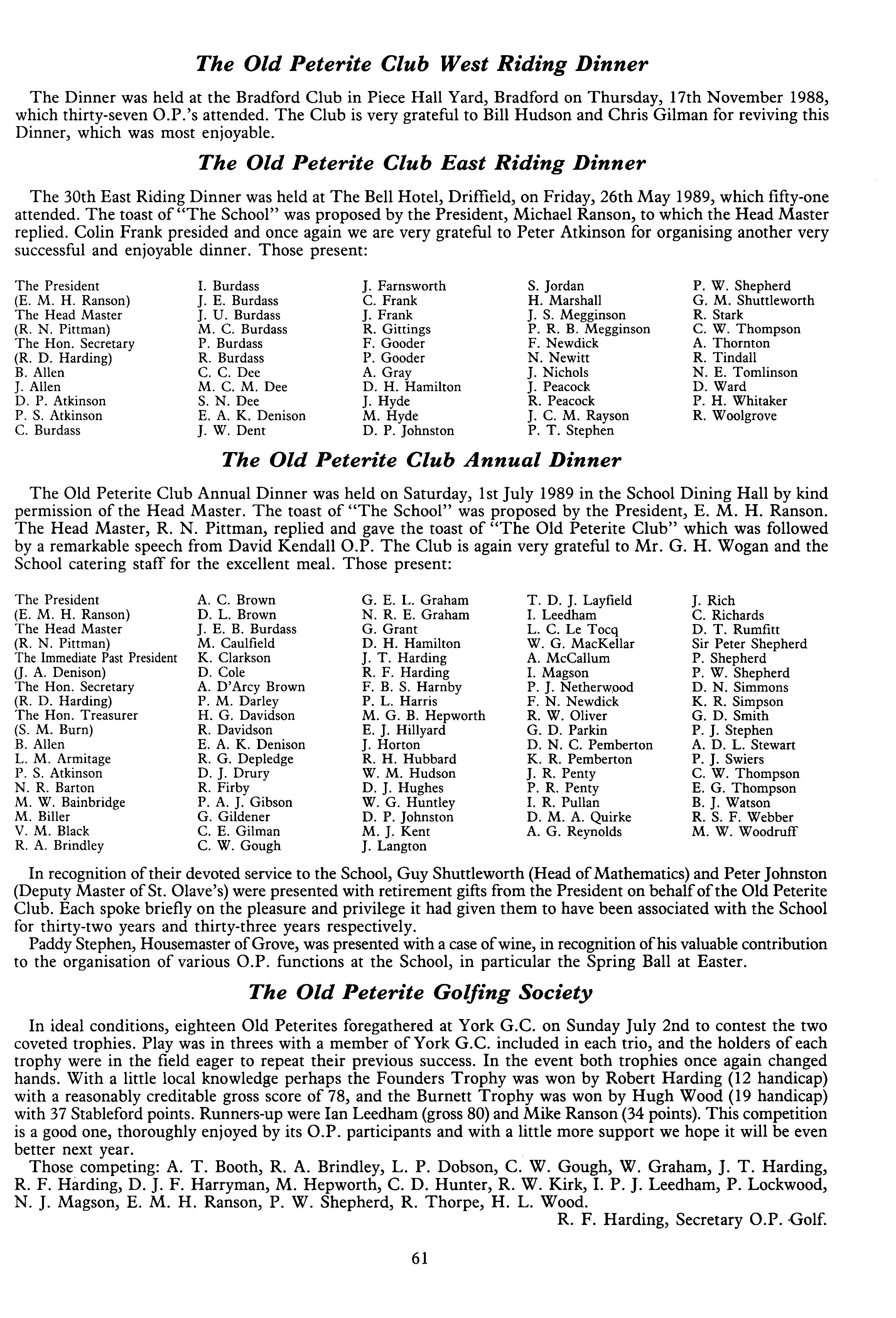 The Old Peterite Club 99th Annual General Meeting was held at the School on Saturday 7th July and was attended by fifty members.