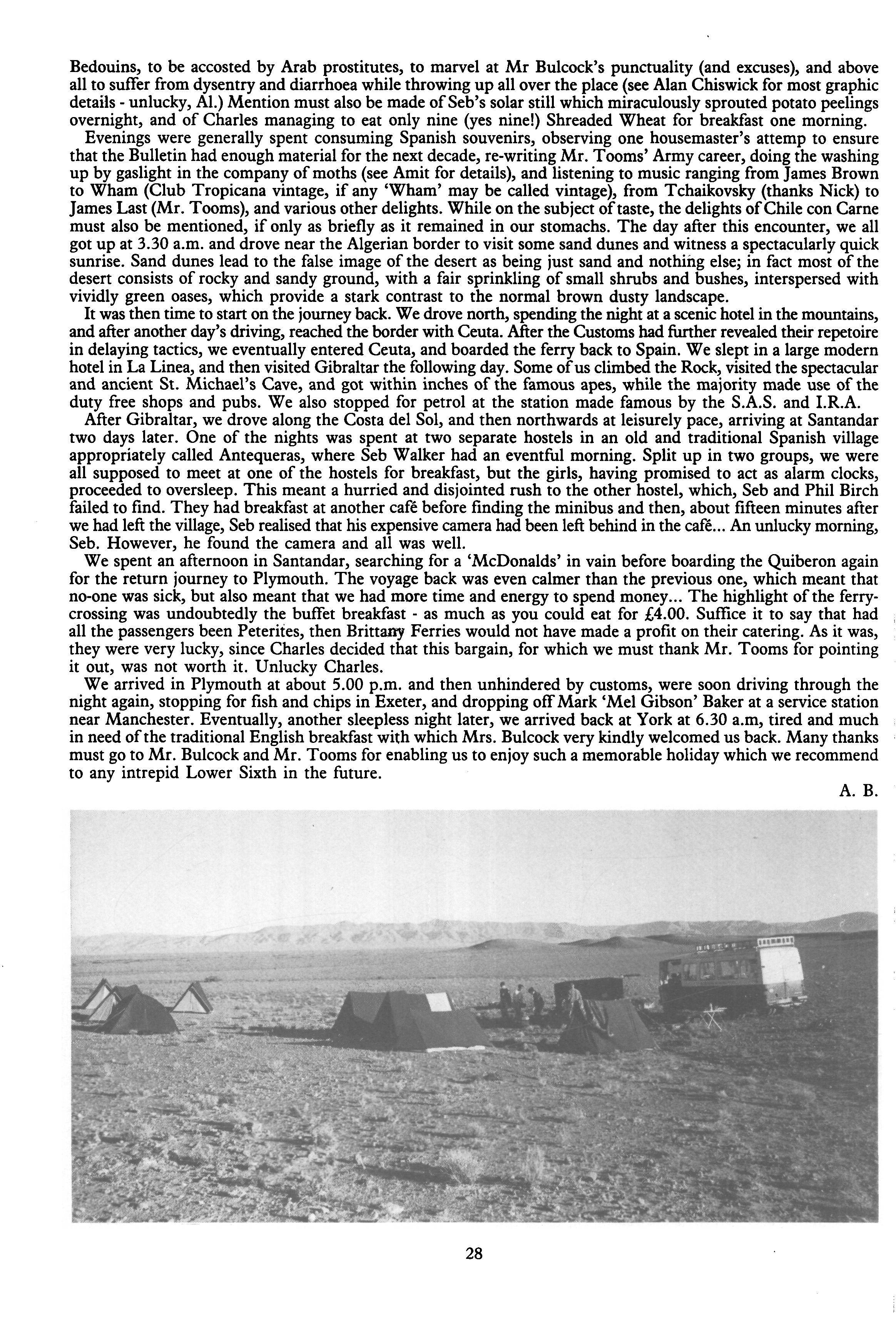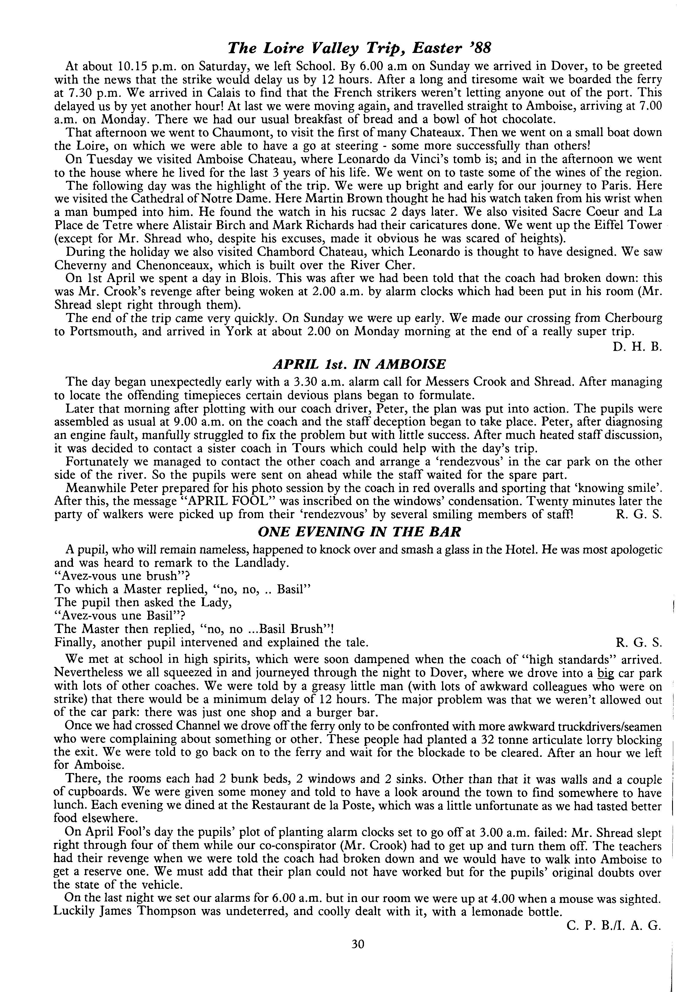Common Room participation in School affairs has again been widespread and a number of examples follows It would beimpossible to mention allthat has happened and I can only apologise in advance for any glaring omissions. Two major events in the School year were directed towards Charity and these are reported in full elsewhere Some staff entered into the spirit of the non-uniform day and Messrs Hubbard and Shuttleworth made a particularly elegant pair A number ofus took the easy way out and paid up tobe allowed todress normally The whole Common Room was involved in the sponsored walk in early May and we were delighted to be joined by colleagues from the School offices, the maintenance departments and the catering staff. Some dozen members ofthe Common Room, as well asthe Head Master, walked the full 20 miles, while the rest were involved in marshalling and in manning check points during what turned out tobe one ofthe most perfect days ofthe Term