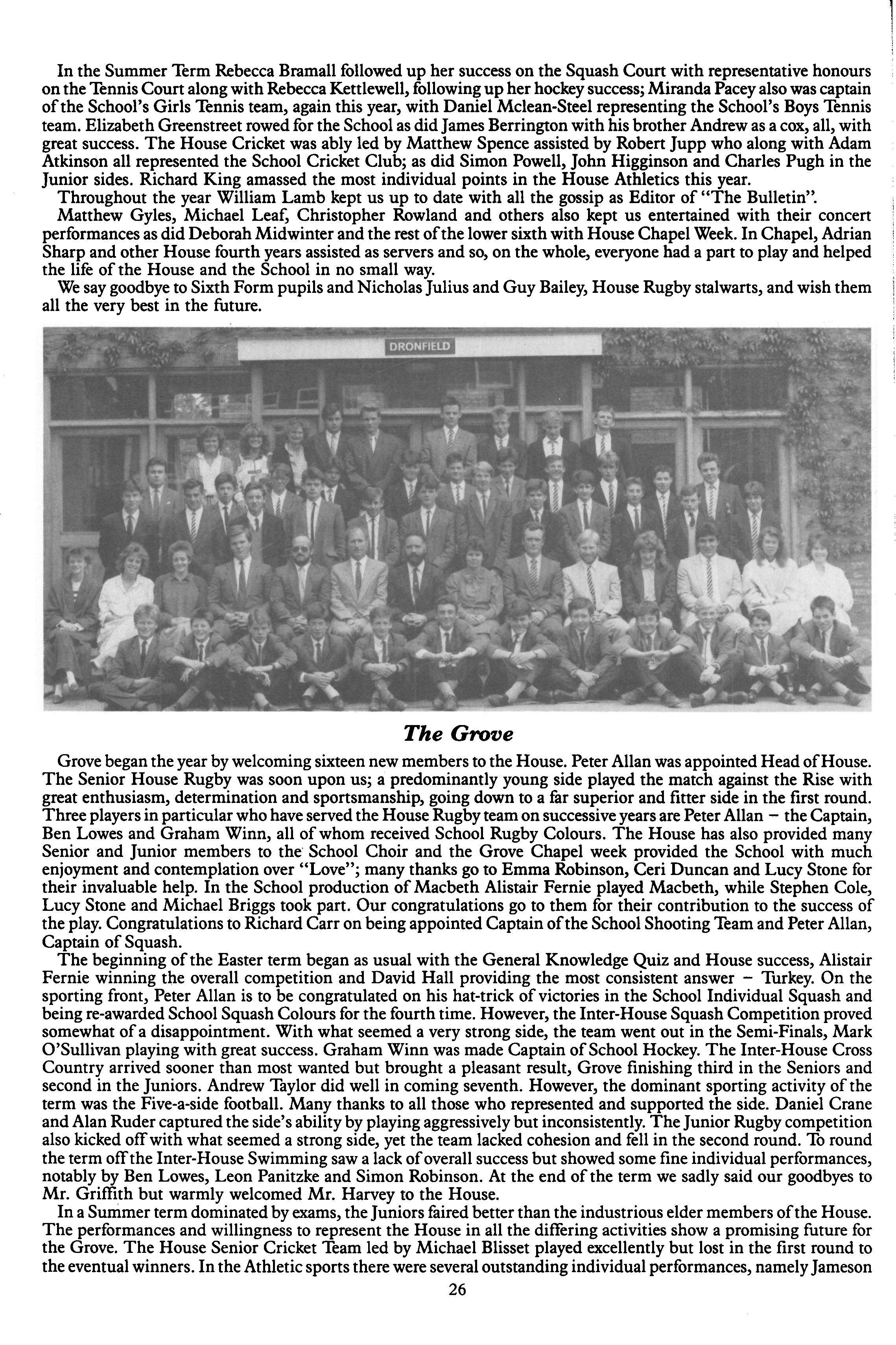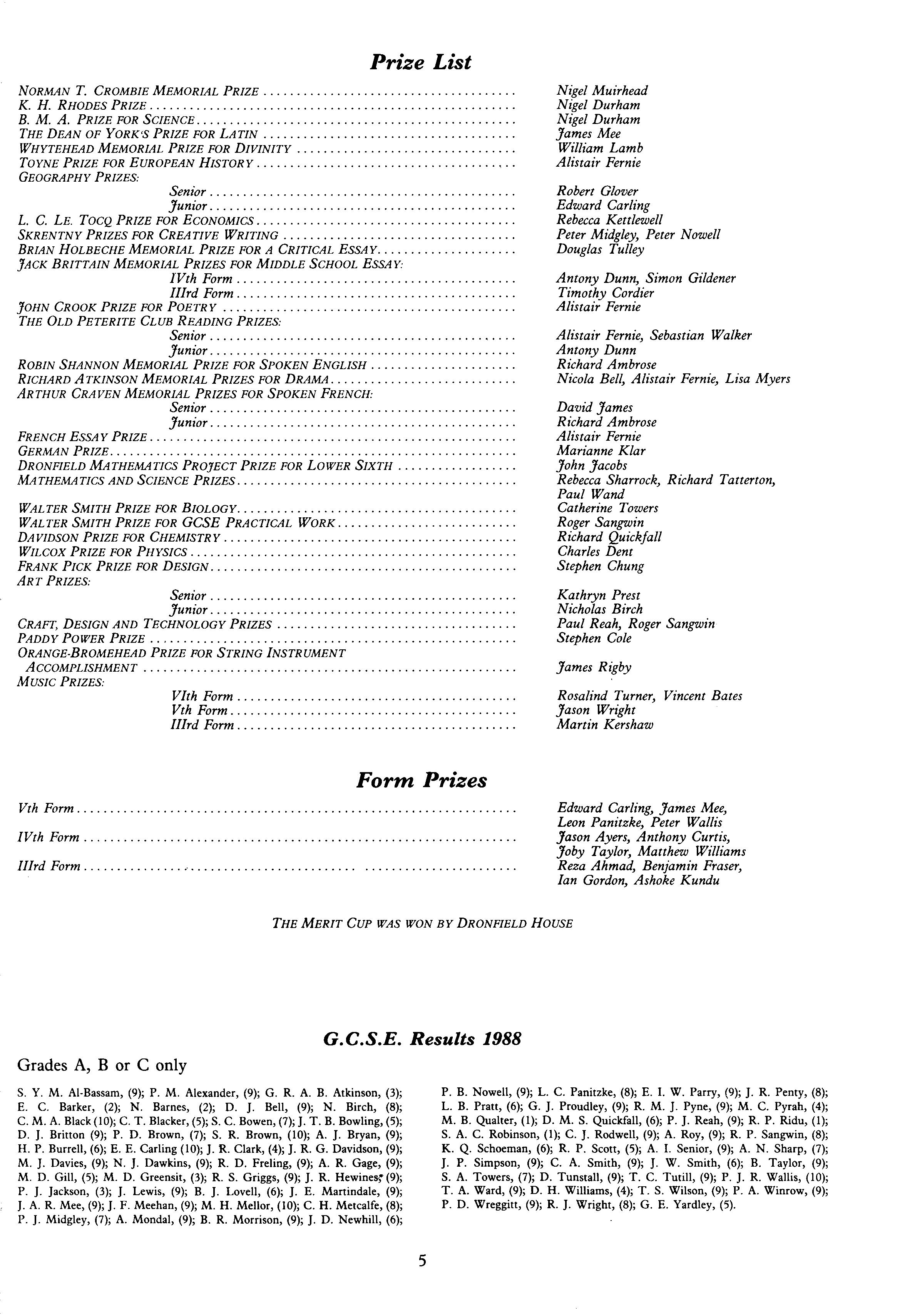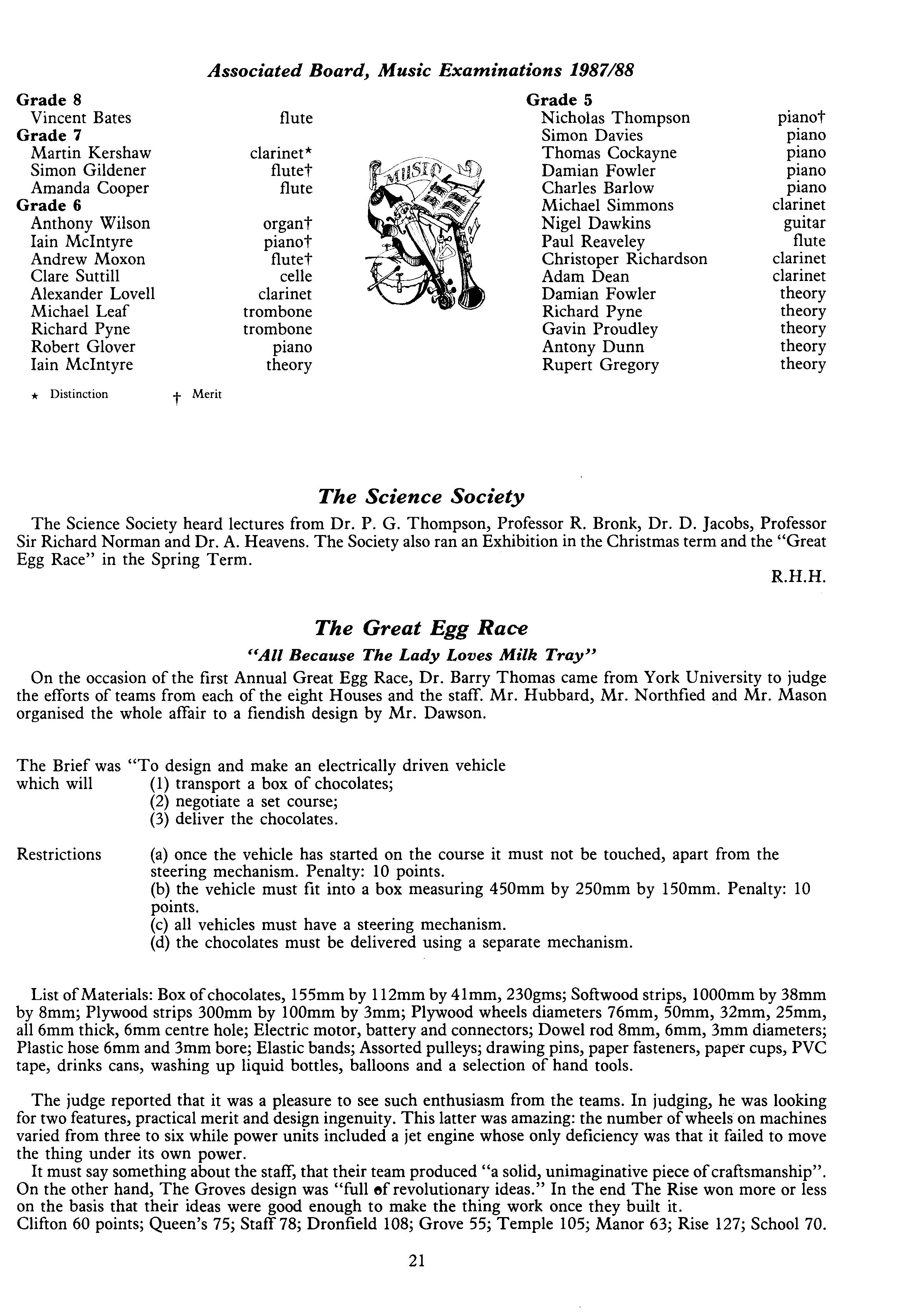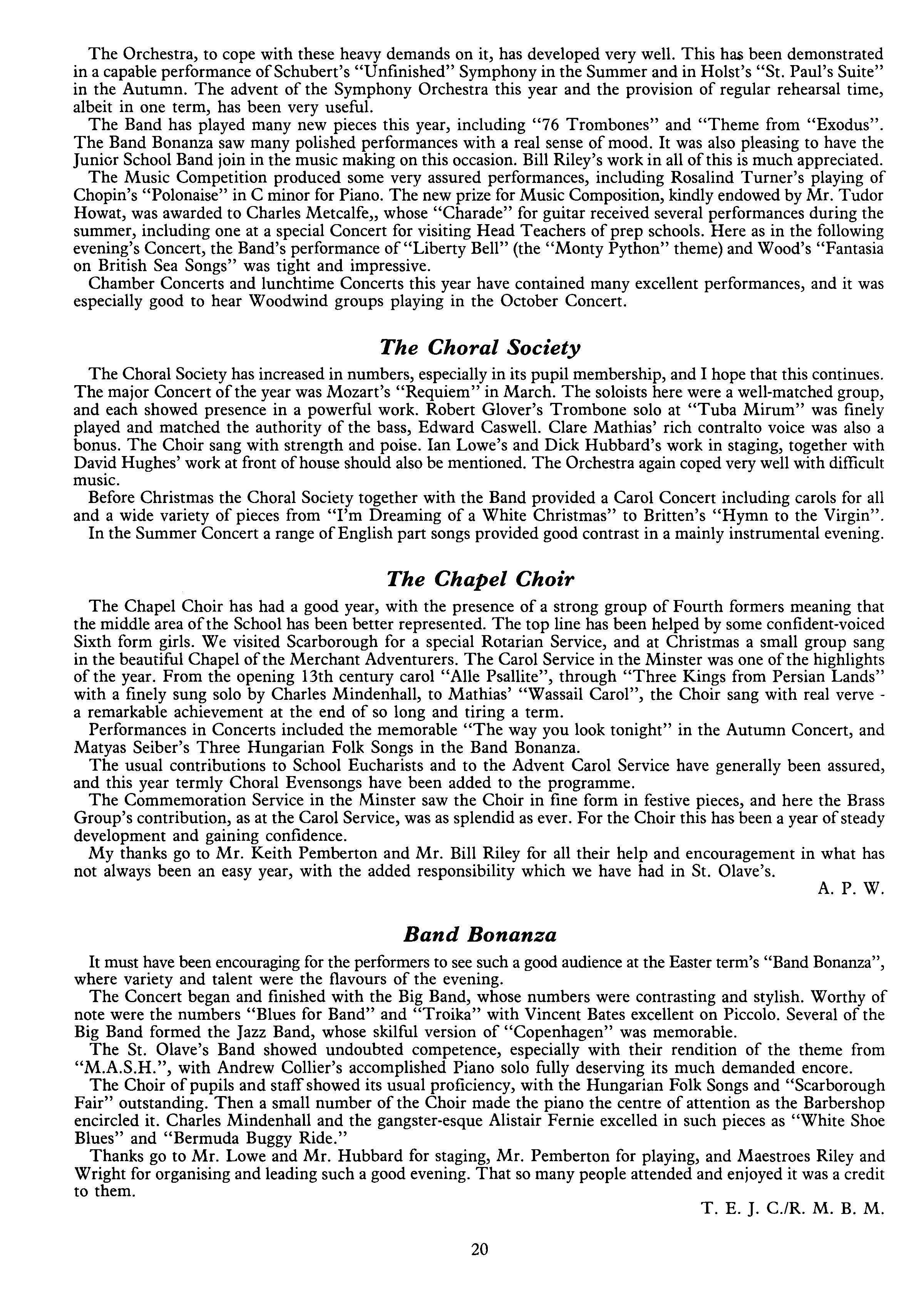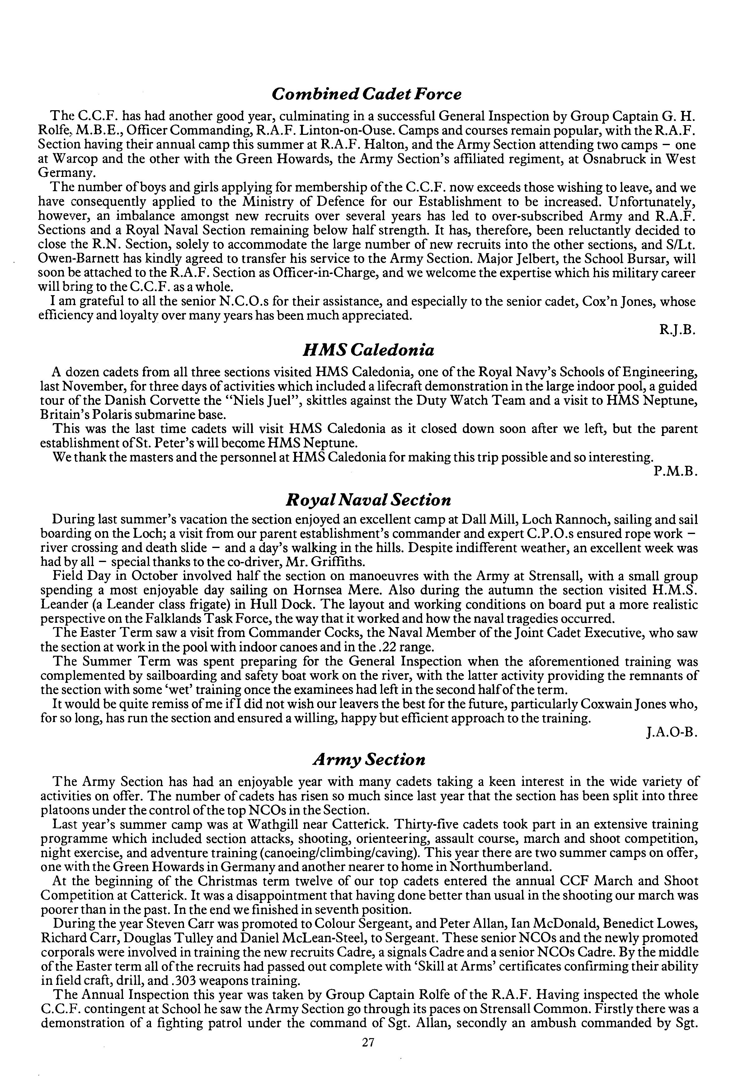 Also in the academic context I would mention some other changes for next year: amodest reform to our third year courses allowing for music and design/technology tobesampled by allour senior school entrants; and areview ofour fourth and fifth year options system in the light ofthe new demands tobemadeby G.C.S.E on our timetable