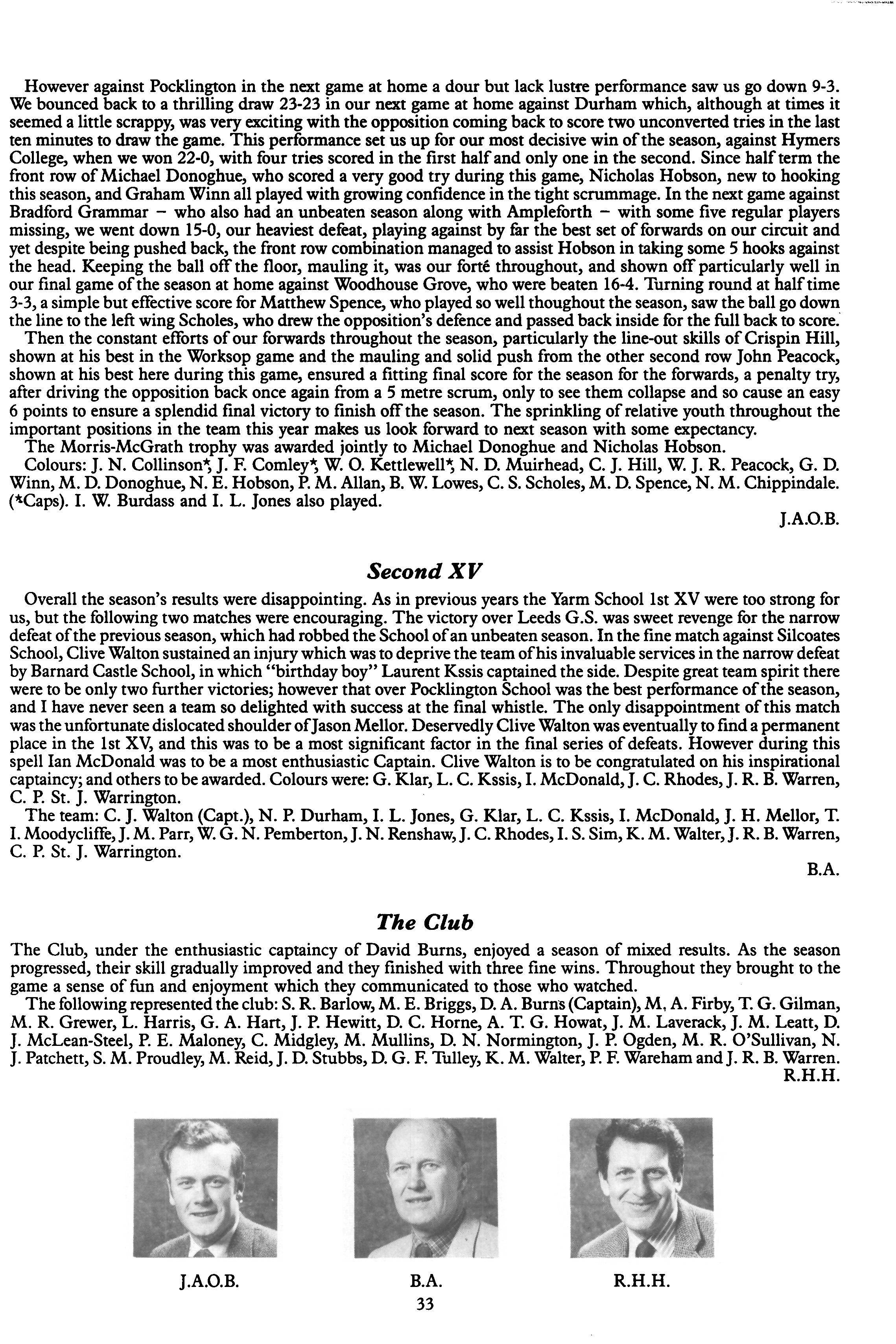 D P Atkinson, V M Black, J E B Burdass, P M Darley, C Frank, C E Gilman, Dr G E L Graham, G Grant, F B S Harnby, Miss V. Inness, G. M. Jobling, I. P. J. Leedham, R. W. Oliver, J. C. M. Rayson, S. Ryder, P. M. Shepherd, G. M. Shuttleworth, G D Smith, D Tunstall