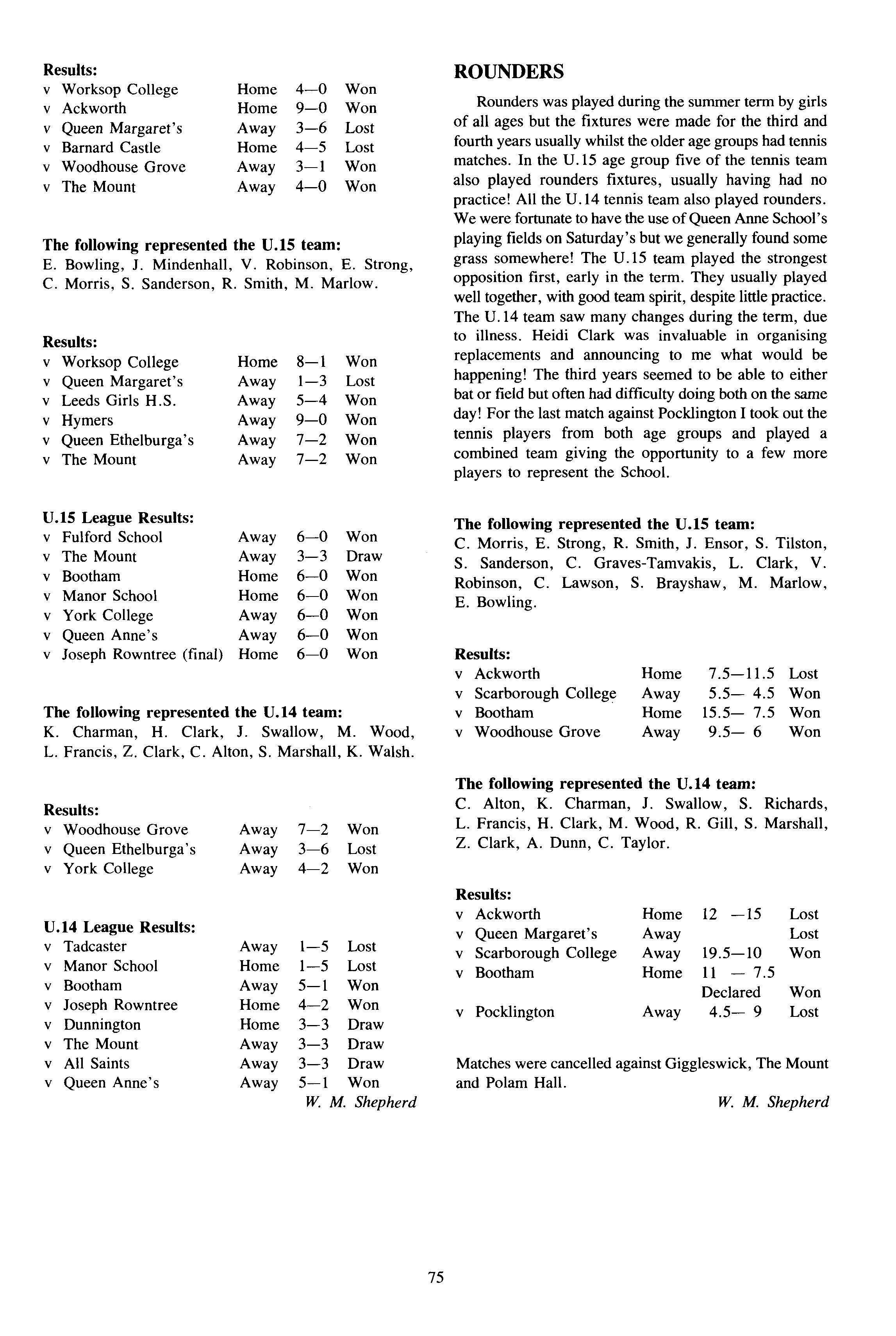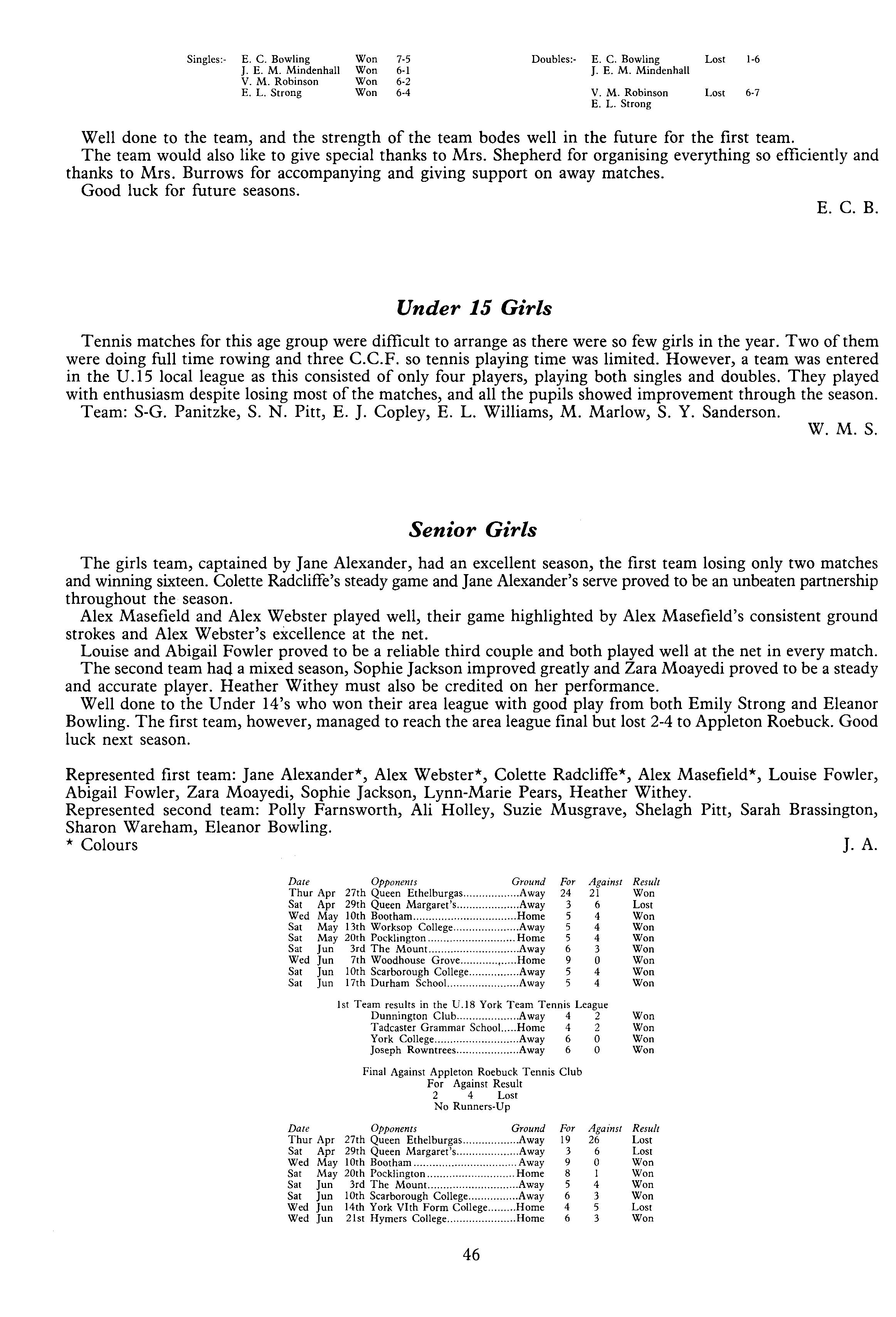 Miss V. Inness, D. Tunstall, I. Leedham, S. Ryder and J. Burdass were elected to fill vacancies and P. M. Darley, R. W. Oliver and P. M. Shepherd were re-elected to the General Committee.