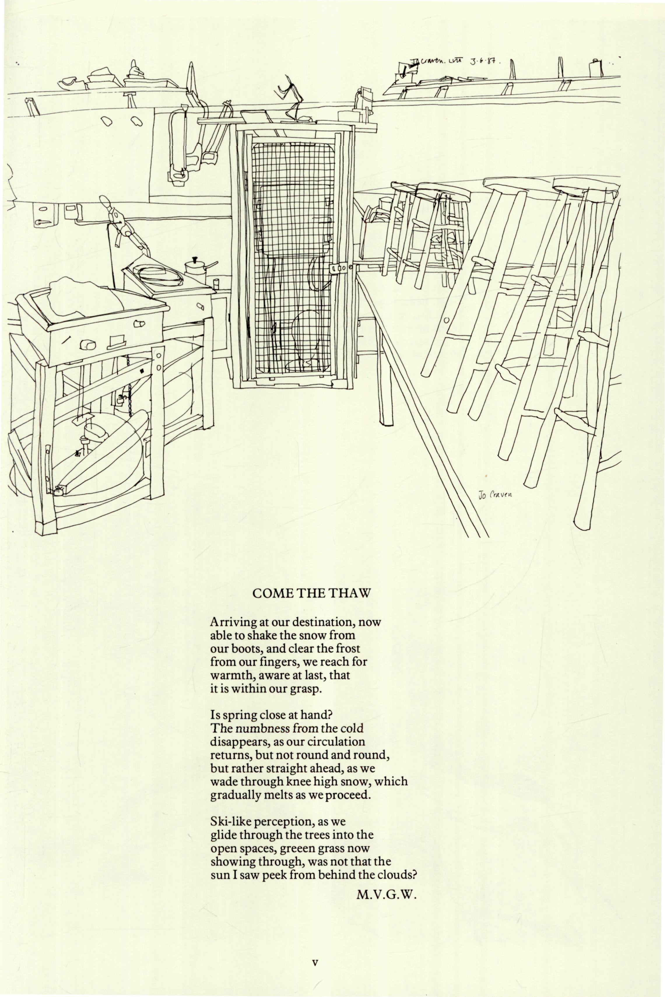 It wasasMissJean Wagstaff that she joined the Staff in September 1981and shewasgiven thetwo rolesofWarden ofAlcuin and Art Teacher She contributed enormously to both; her friendly nature must have helped many girls to settle into boarding school life Certainly this quality made her a very approachable teacher It soon became clear that her main artistic strength is in graphic design, and agood thing toobecause that nicely plugged agap in the Art Department's teaching repertoire She encouraged very colourful work and, inthe VI Form, screen printing became her speciality Dozens of decorated T-shirts are witness to this, especially those with Boat Club or Rugger Club motifs on them! Very imaginative and neatly presented art work was noticeably coming from her busy St Olave's pupils Also her fairytale pottery castles are creations many will remember with delight I was particularly pleased that she so willingly joined the teaching team ofthe Summer School.