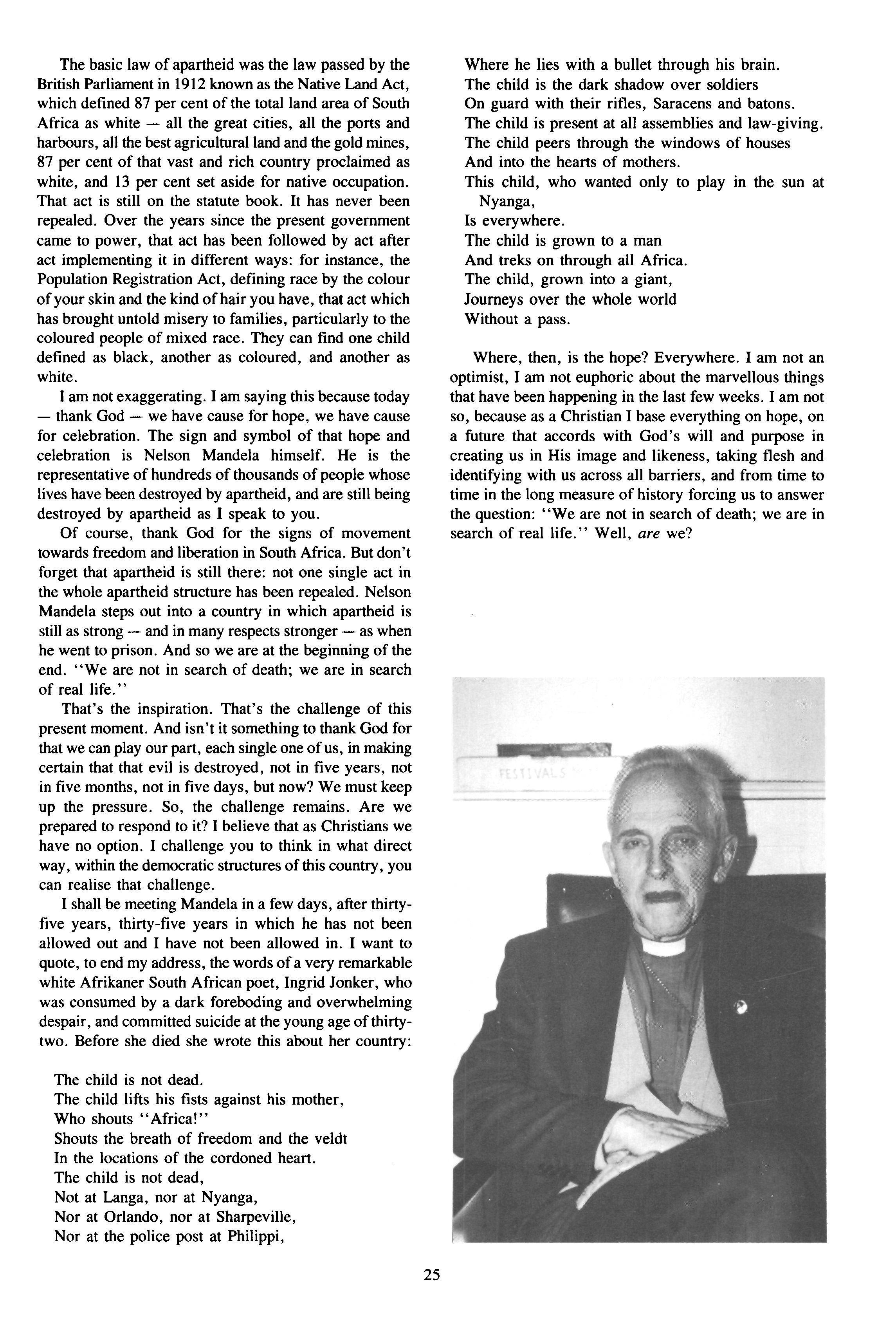 The guest of honour, Sir Henry Plumb, M.E.P., presented the prizes, and in a speech which referred to the current conflict in South Africa, he said the government was determined to keep control in the hands of the white community But he added: "We British, in our colonisation of Africa, never pretended that it would be there permanently." Forecasting that the white government would eventually fall "through the sheer weight of its own political incompetence," he said the British influence and help would still be needed In another part of his speech he said the European Parliament was a young institution which still had much to learn "We should learn from political events and realise that political change in ademocracy is not just important, it is the very condition of life", he said "All democratic polticians should recognise that, ifmajor political or social change isforced, there isa risk of conflict and violence Change cannot bepresumed, and it should not be dictated."