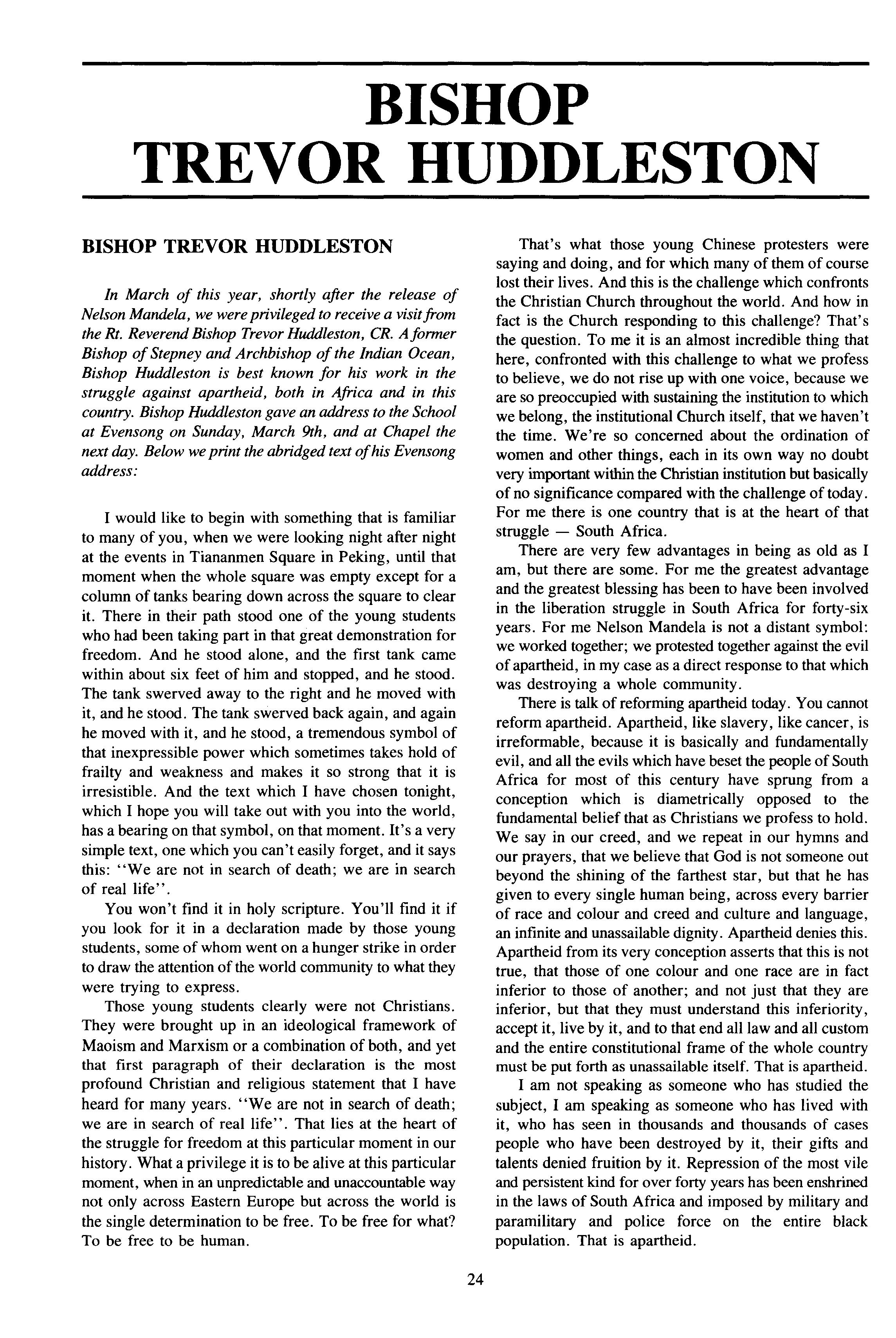 One ofthe strengths ofthe independent school isitsfreedom to control itsown affairs, but this alsopresents agreat challenge to its administration as well asto itsteaching power. Colonel Abbott has taken amajor part in the response of St Peter's to challenge in these last twelve years, and he gives up the post of Bursar with our admiration and thanks.