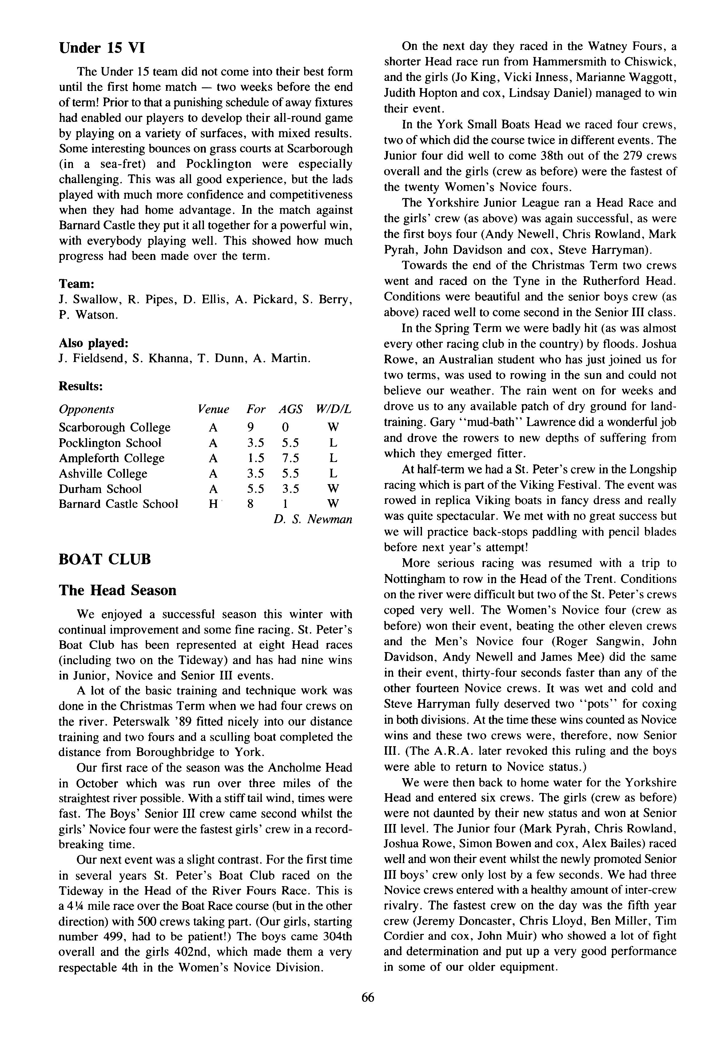 Soyou see; little has changed in three hundred years Teaching isaprofession which isnotby any standards highly paid; there are special frustrations at the present time with poor promotion prospects for the well-qualified; teaching the young has its own stresses compounded by the nature oftoday's society and from which we at St Peter's cannot be completely immune Also, during this year, the staffhave not only accepted my new system ofappraisal but have also endured me on occasions in the back row oftheir lessons and occasionally asinattentive as some oftheir pupils (One member of staff in an economics lesson said: "And what do you think about the problem, Head Master?" At which I woke up, came out of my reverie and had to admit in front of the whole class that I hadn't heard the