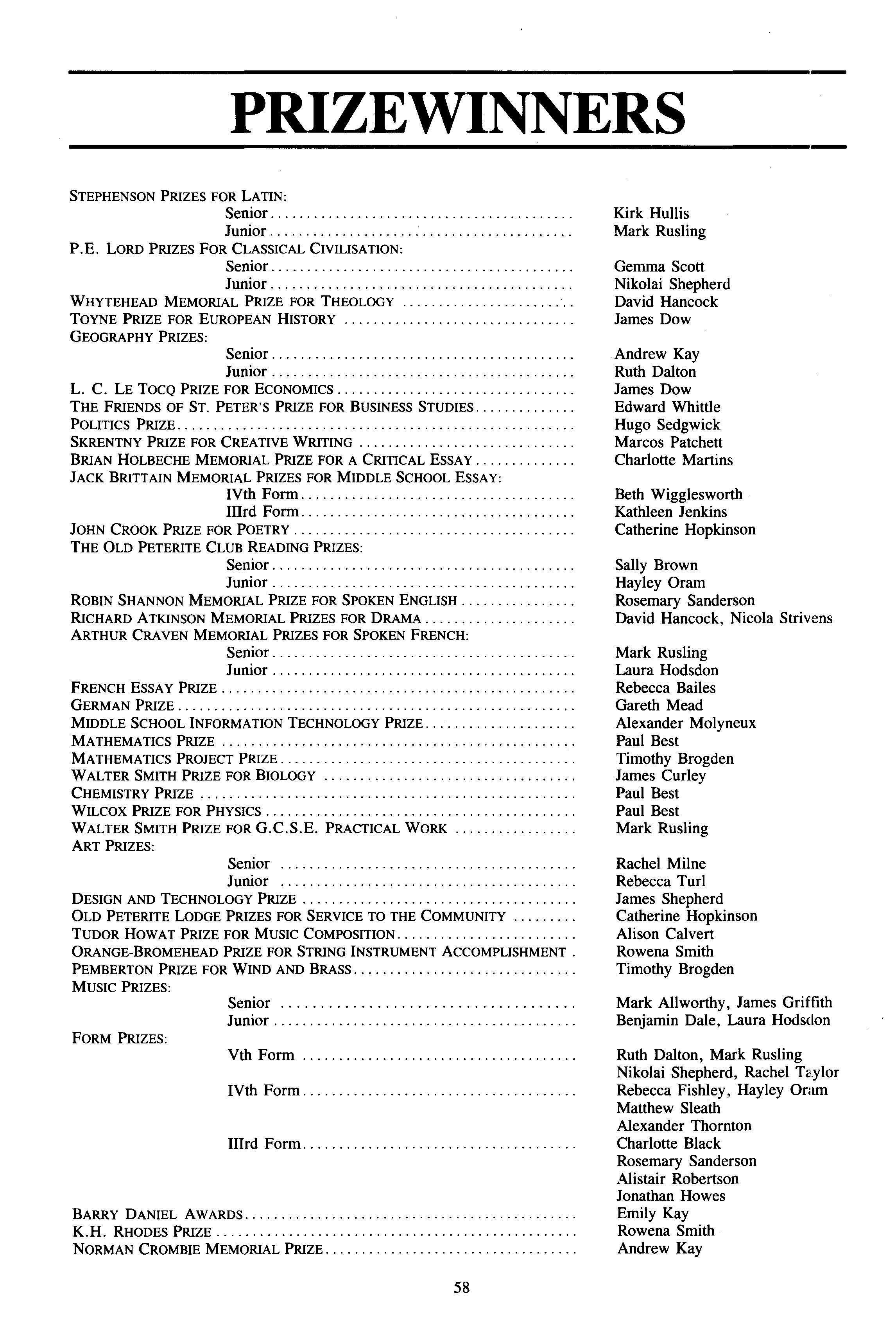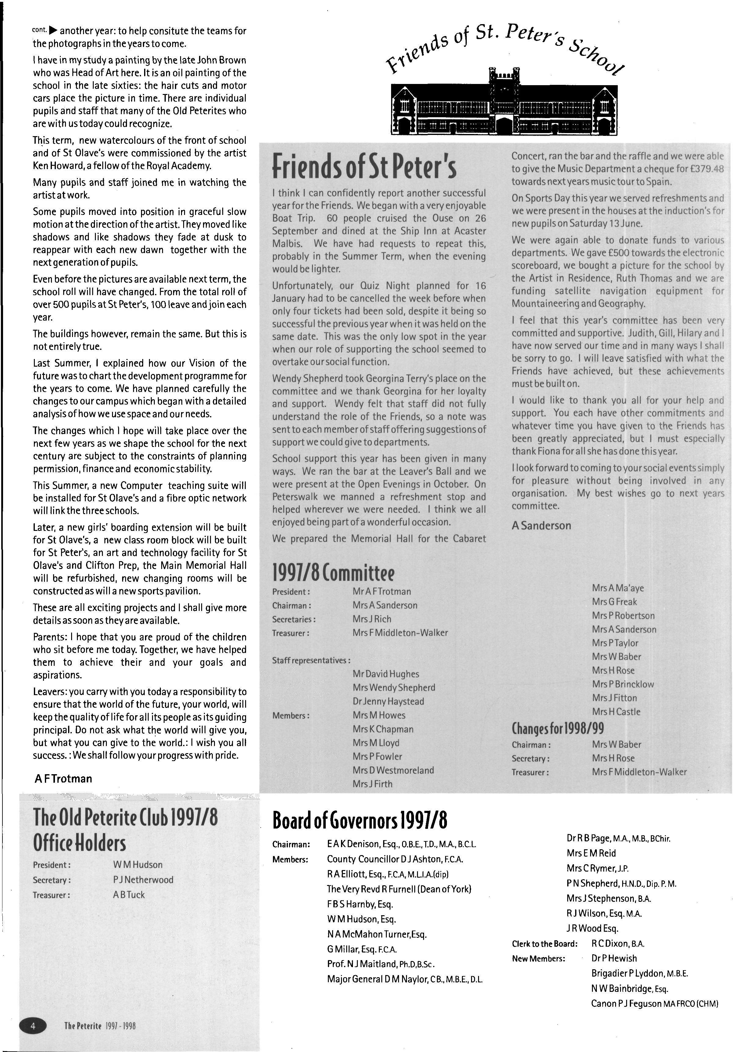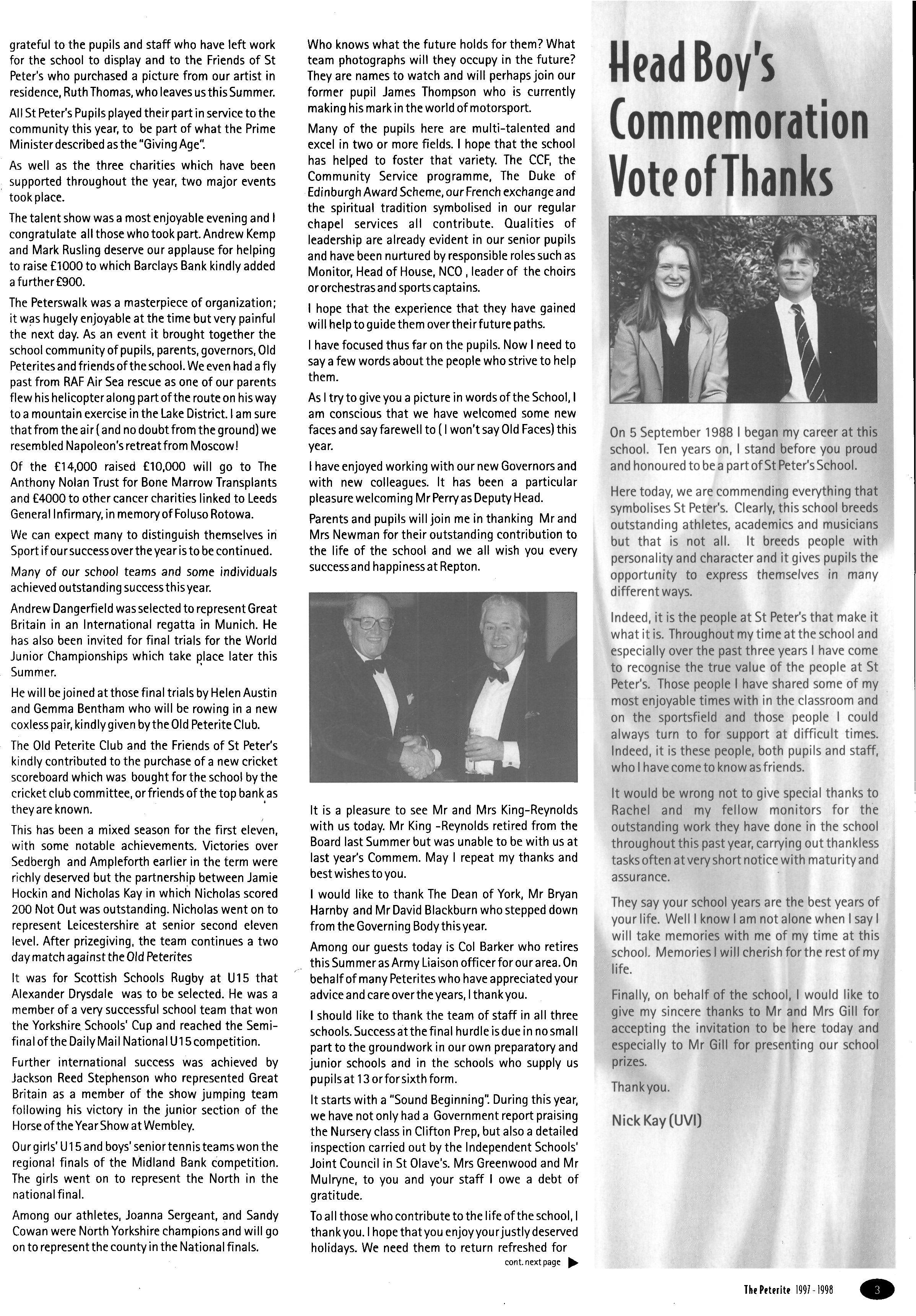 He led by example As Second Master he would read and speak in Chapel, was eloquent, honourable anc fair in hisjudgements, taught a full timetable and edited 'The Peterite' Peter in this way showed his respect for the many parents who sacrificed to send their sons and daughters to die school and none of his colleagues viewing this load could complain of their own Under his aegis the morale of the school and those who taught in it was high.