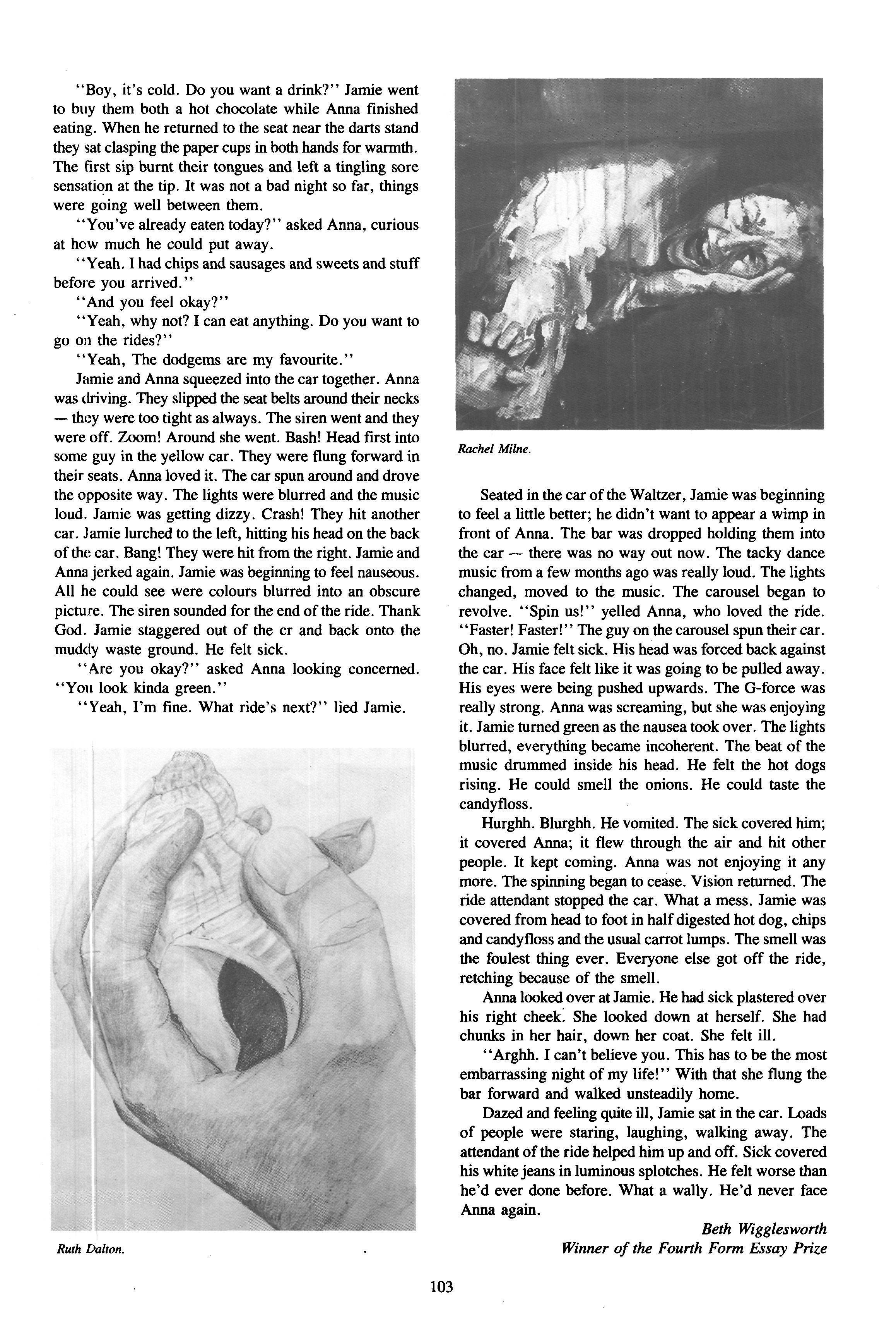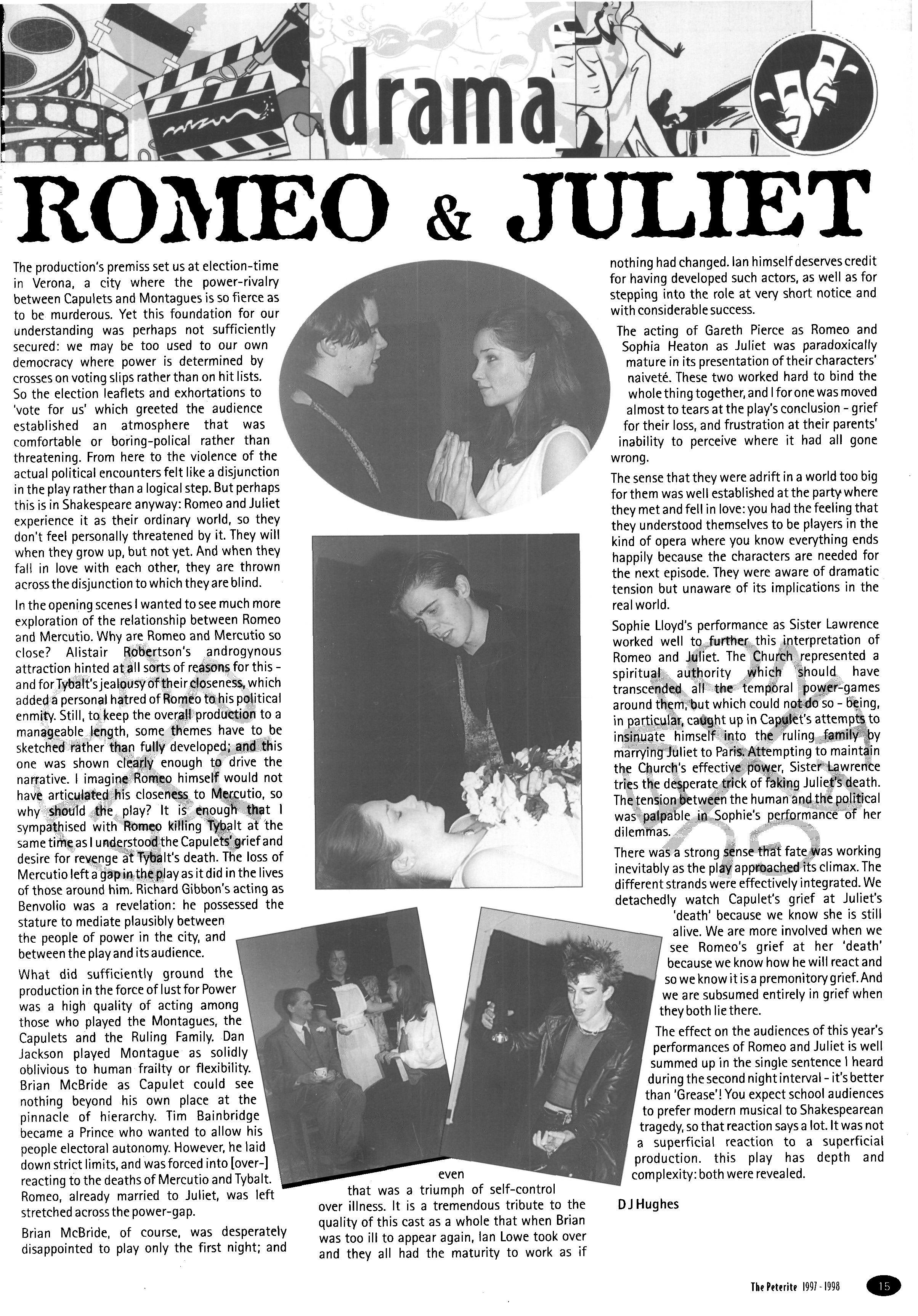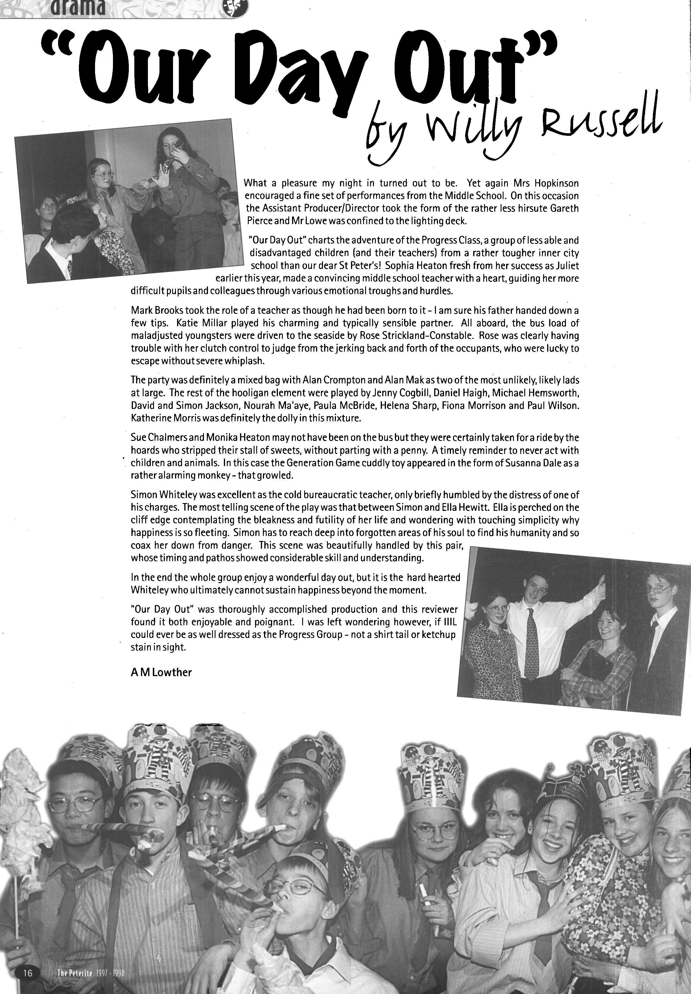 The end of term was asbusy as ever with starring roles in the school productions for several Risites; Nikki Strivens and Katie Gormley in 'Roots', Kate Dowds in 'Look Back in Anger' and Jennie Taylor in 'Twist' All gave stunning performances in outstanding productions