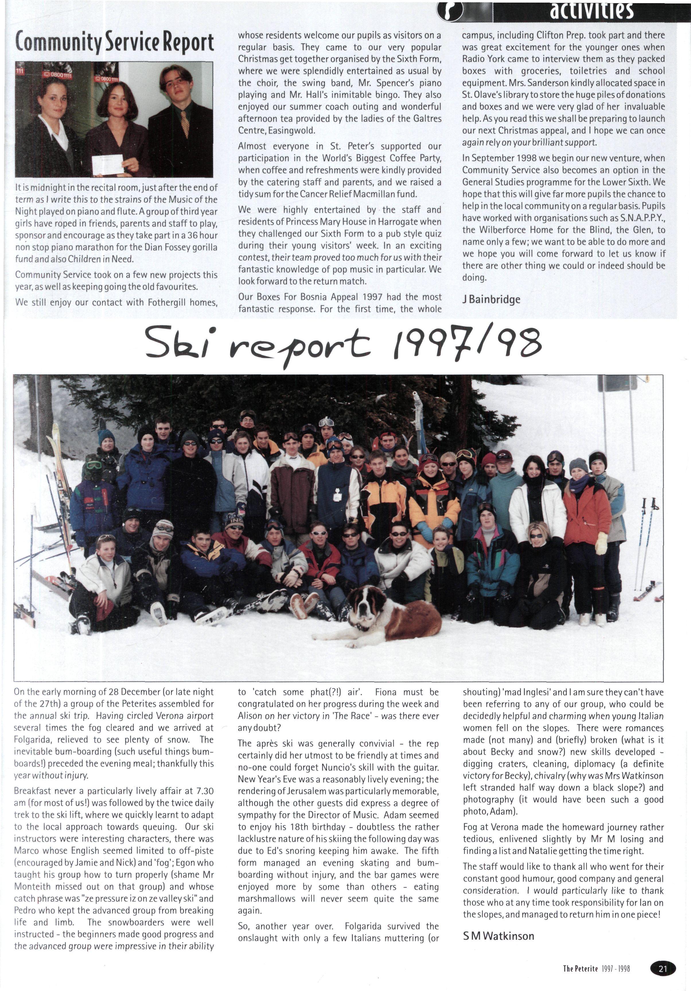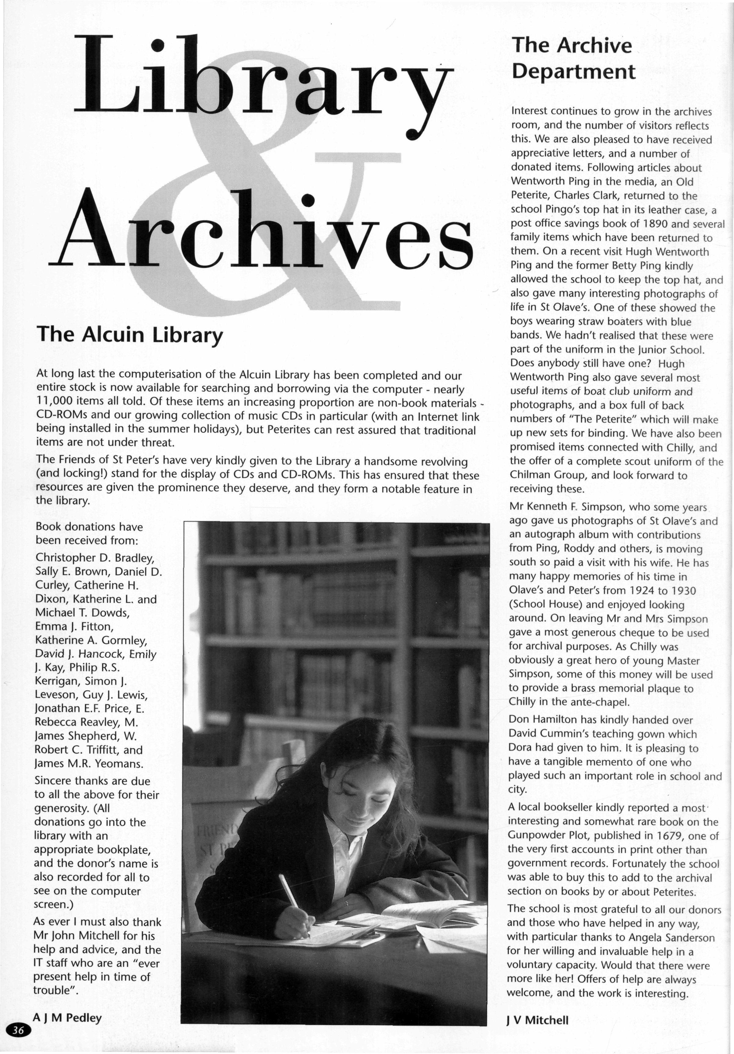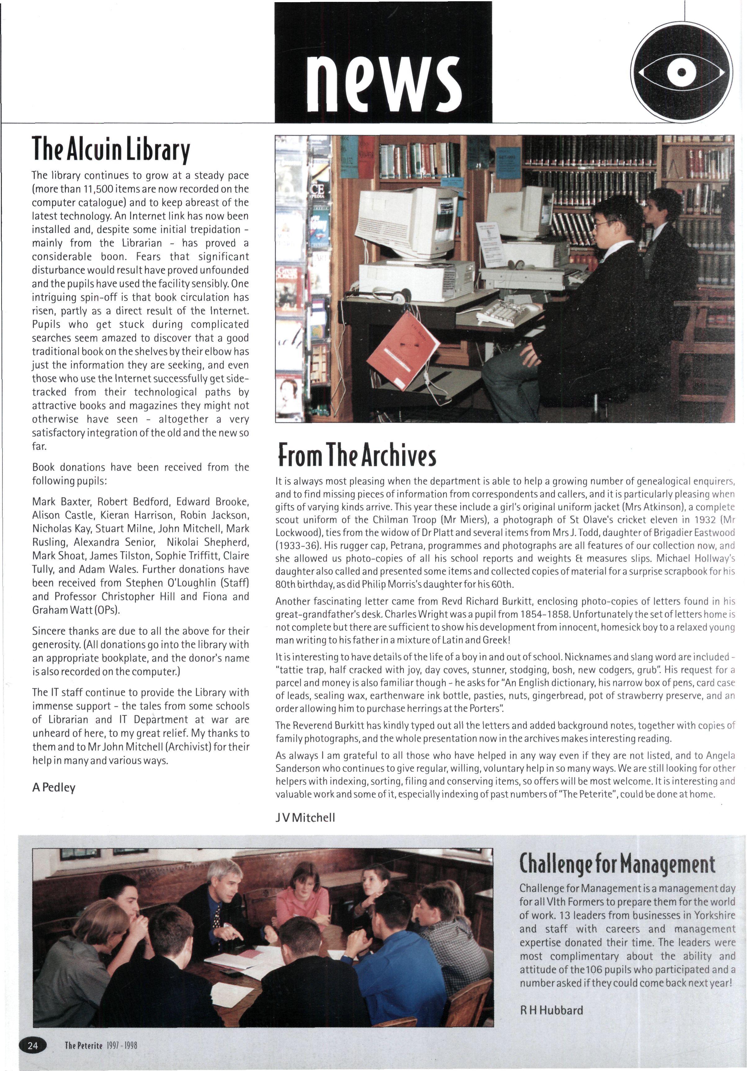 The St Peter's Geography Department is, as ever, at the forefront of the information technology revolution. Thanks to the generosity of the Friends of St Peter's, the school has been able to buy a new weather station Mr Paterson also informs us that the Internet link is now providing daily satellite weather images