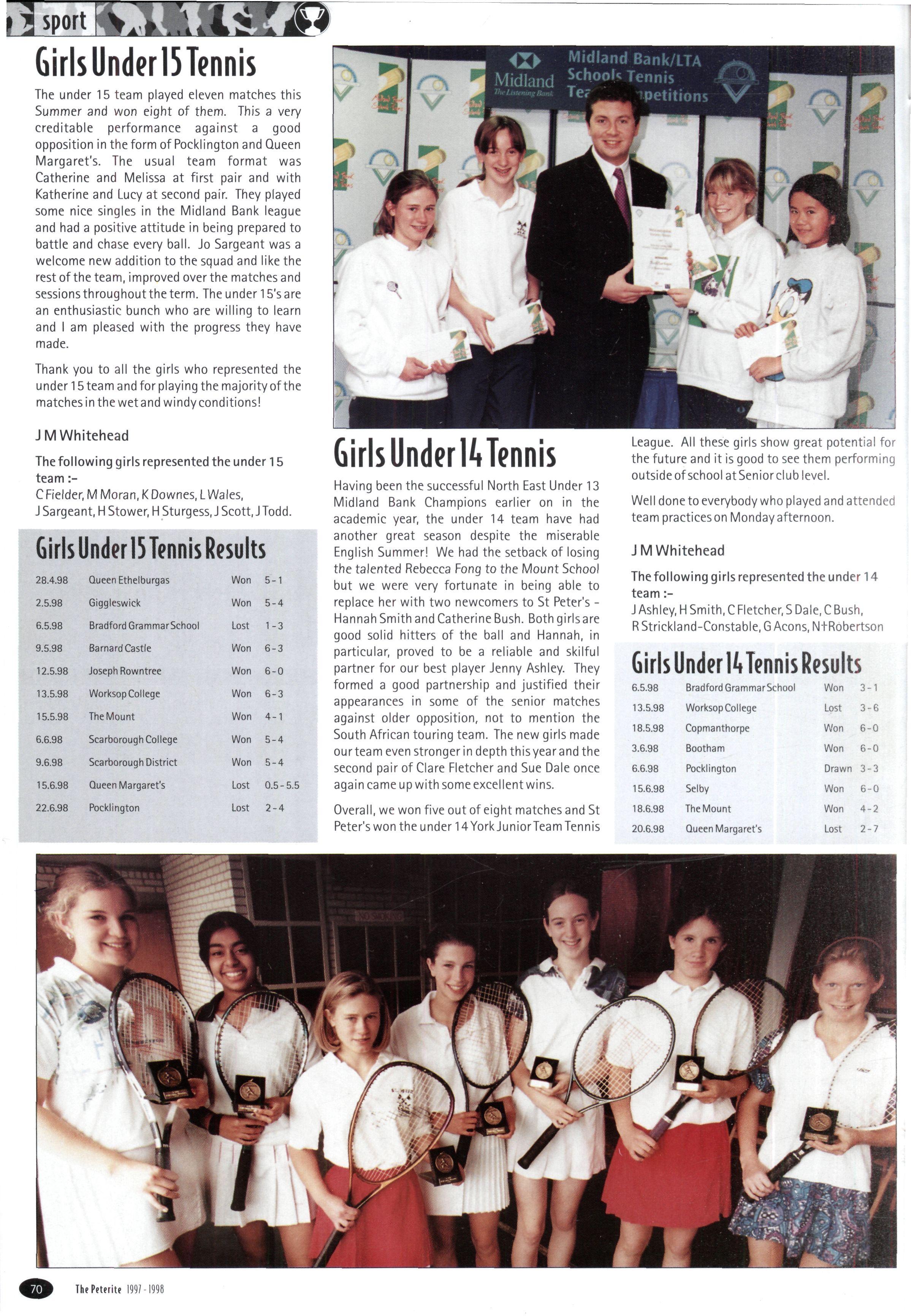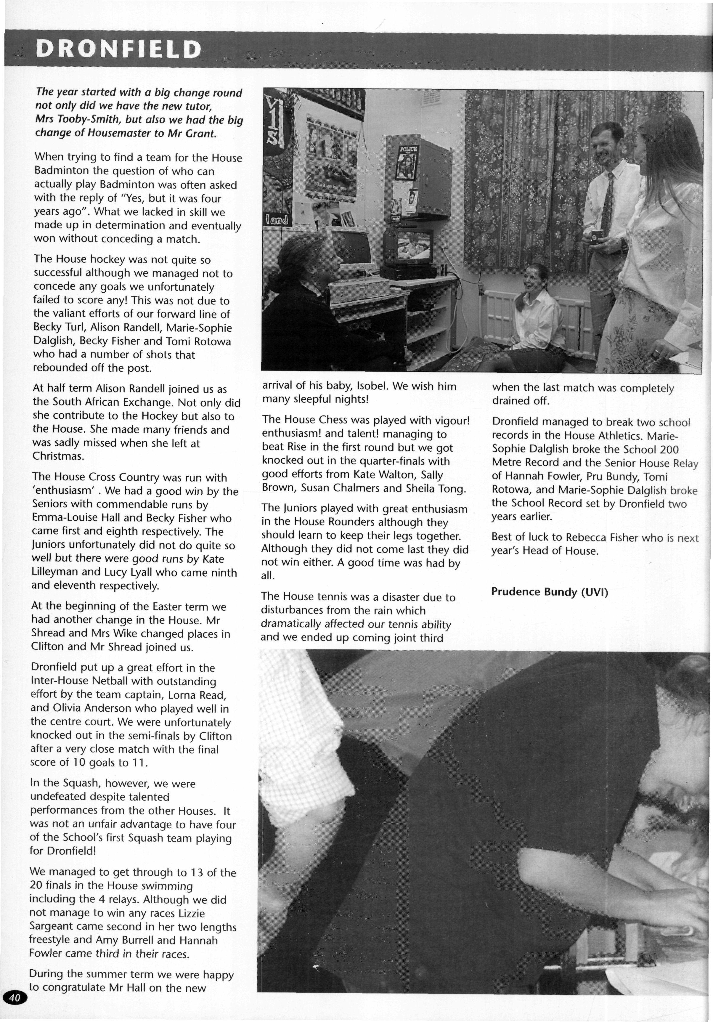 The House Girls' Badminton team of Helen Williamson, Faith Alexander, Louise Hudson, Sarah Metcalfe, Lorna Read, Emily Brown and Emma Fitton managed to get through to the semi-final only to be beaten by Dronfield