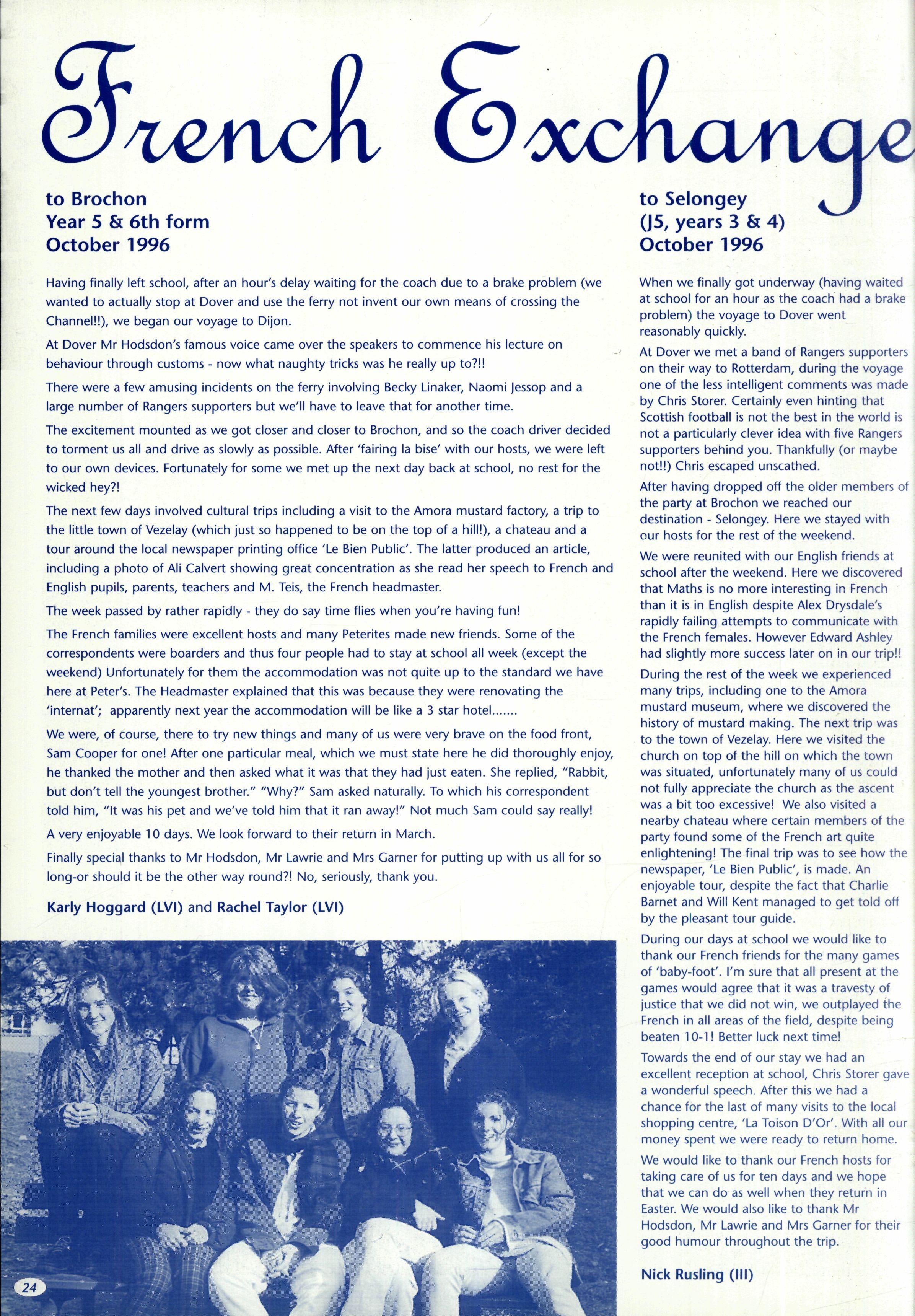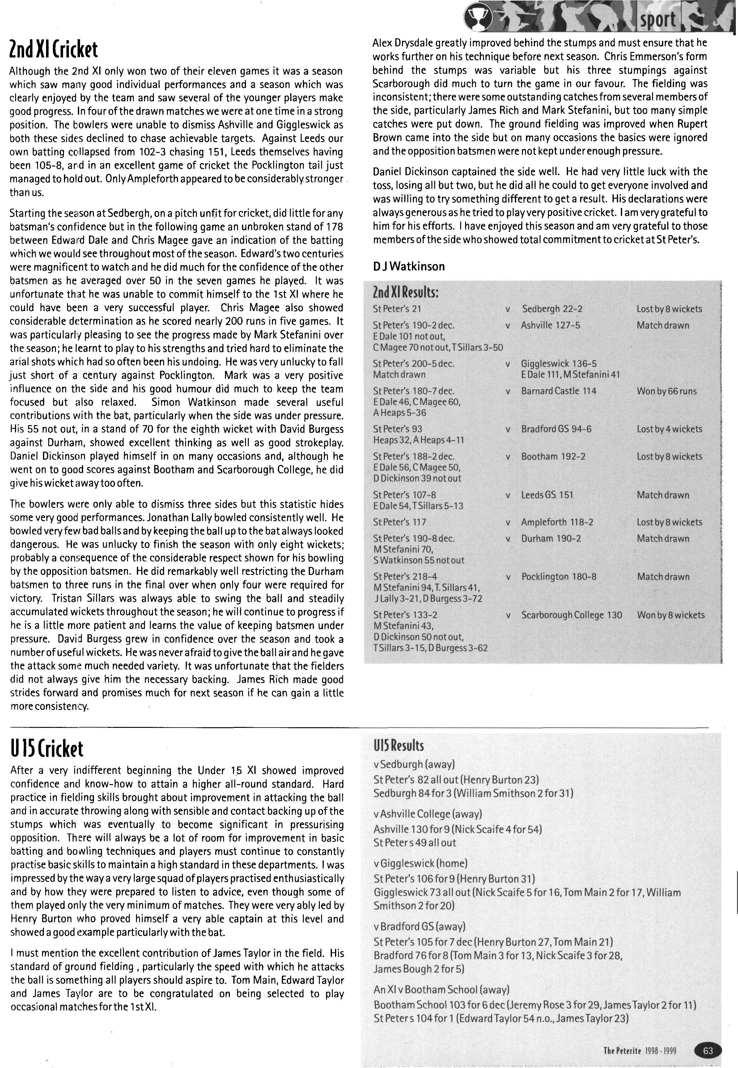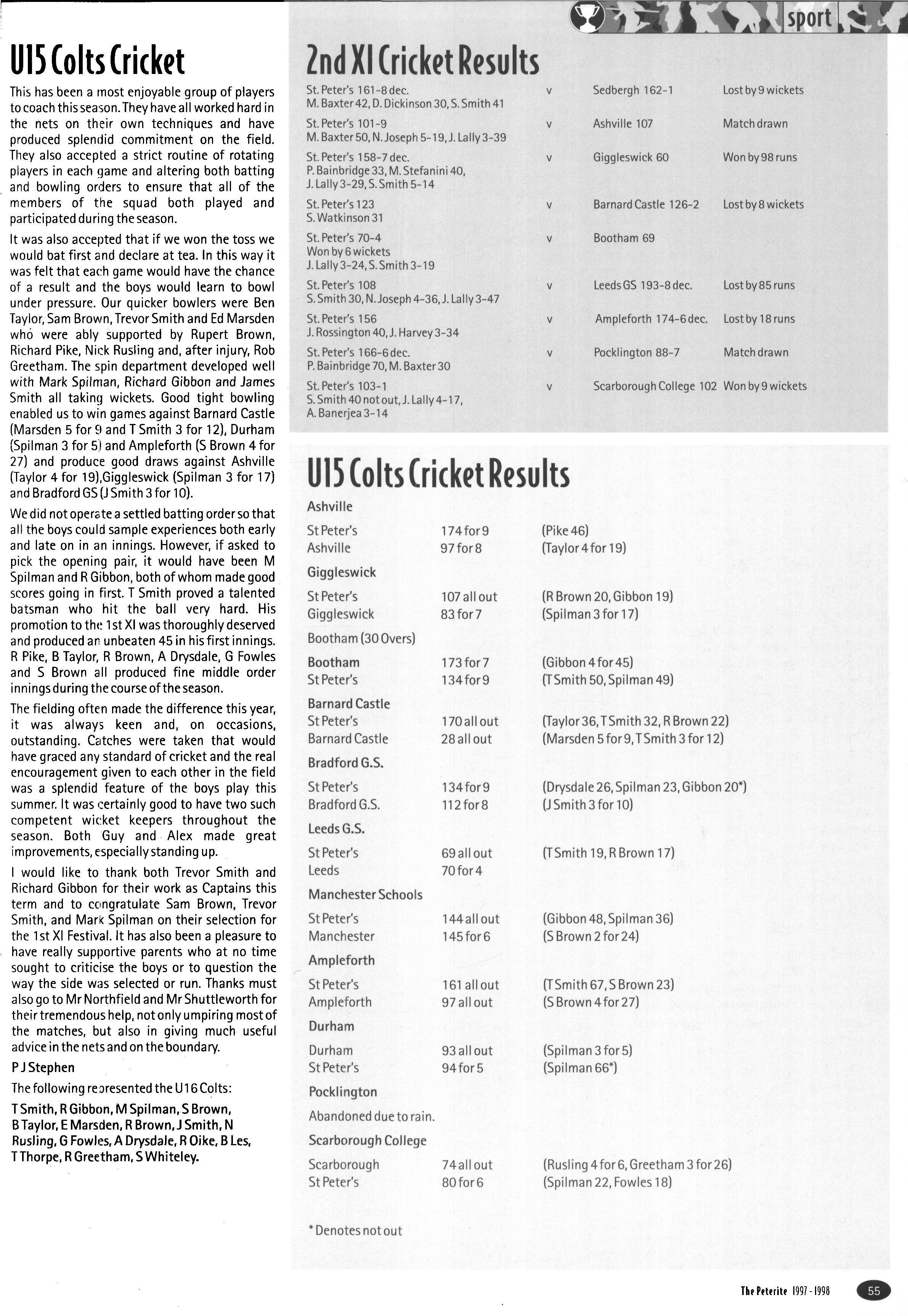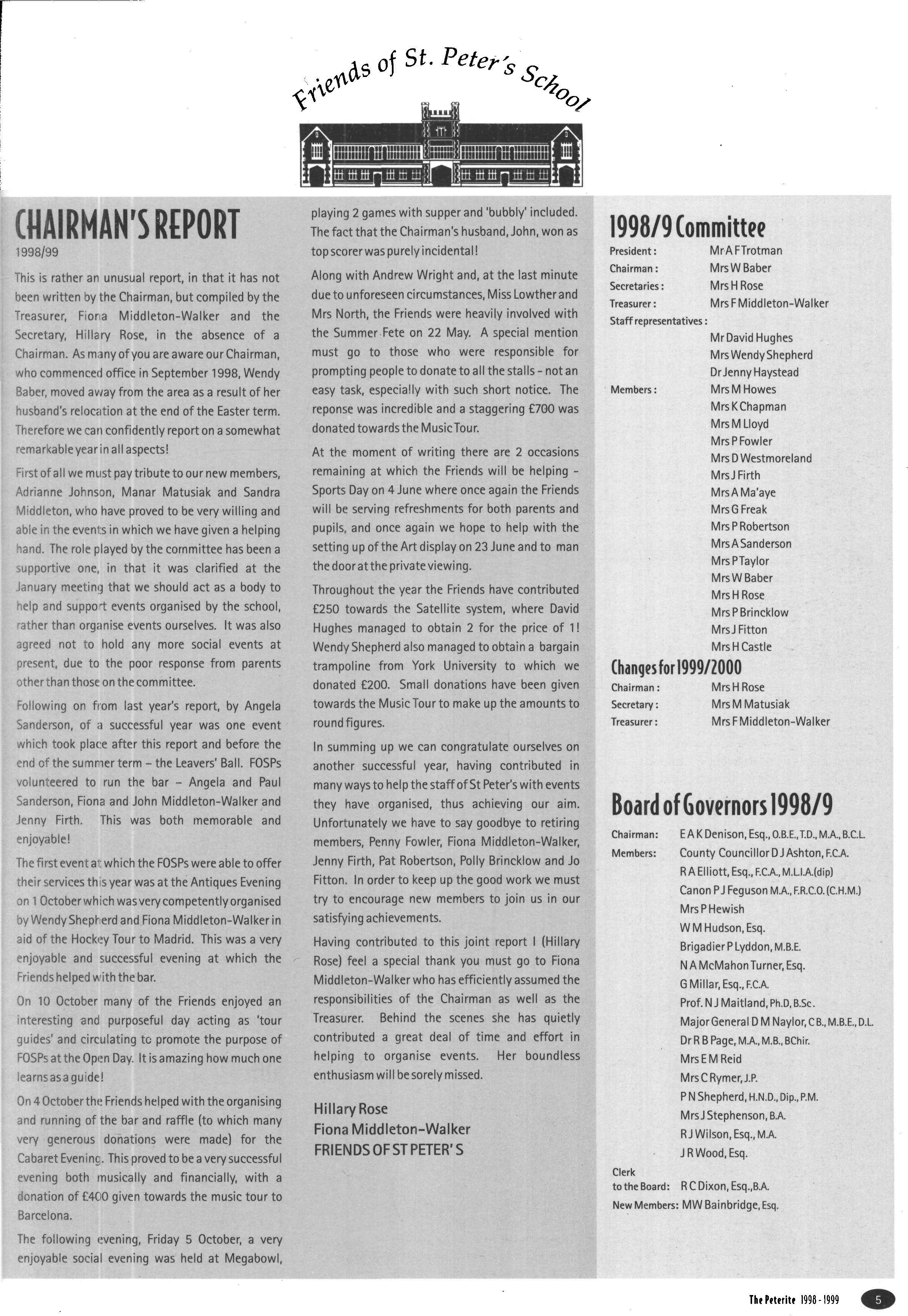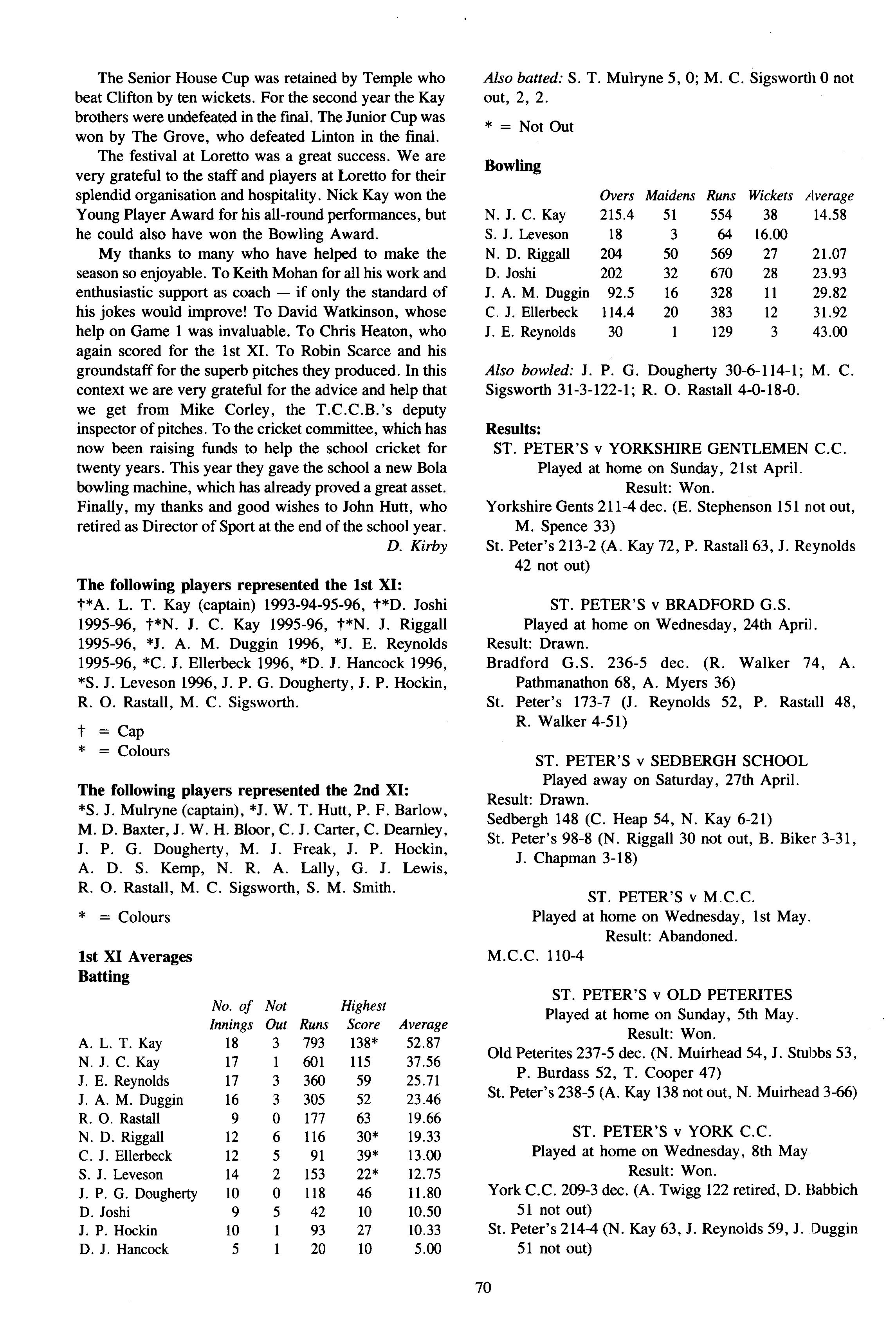 In its second year as a day House, the House started with a roll of sixty-one, but this soon went up to sixtytwo (thirty-eight boys and twenty-four girls) when Fraser Dunn returned to continue his studies at St Peter's Head of House was Stephen Mulryne and four other members of the upper sixth, Katy Ramskill, Emma Sherbourne, Paul Fotherby and James Duggin, were also School Monitors After the usual first day arrangement and rearrangement of who should be in which lower sixth study, the House got down to a long term of hard work The first decision the House had to make was whether to buy a fridge or microwave with money from the embellishment fund The House was fairly equally split on this and so it was left to the Head of House to make the final decision Being a person who likes his food, a microwave was bought It has been money well spent, with many members of the House using it and despite my reservations, the kitchen has been left reasonably tidy each day If there was any washing-up needed, then there was always someone who had failed to sign out the previous day who could make amends by tidying the kitchen