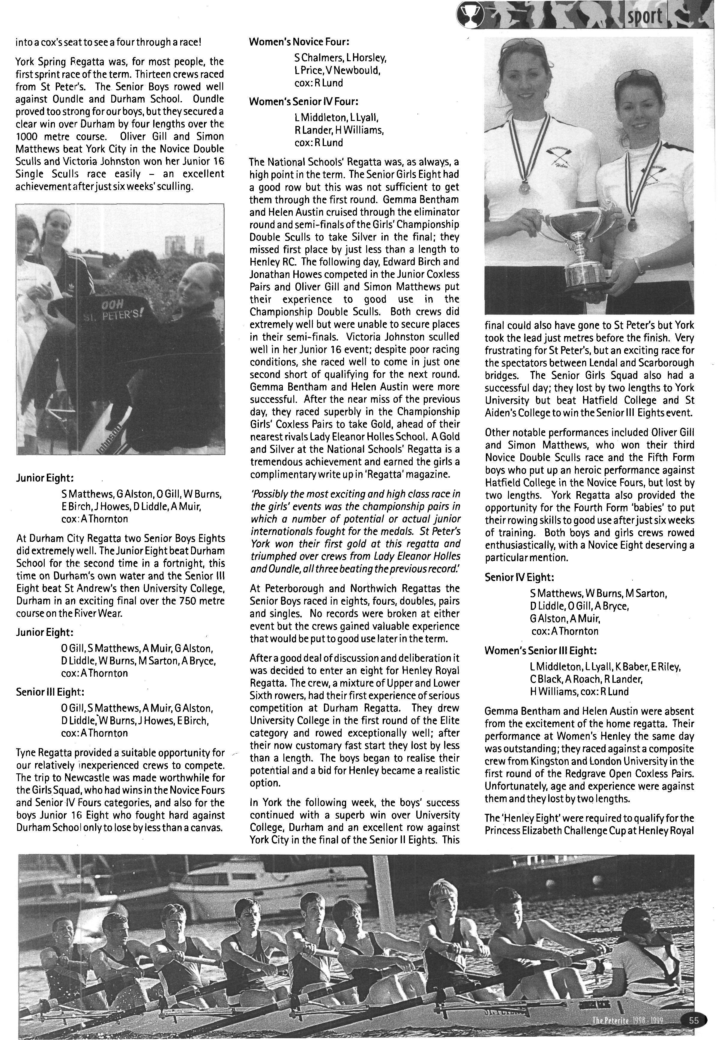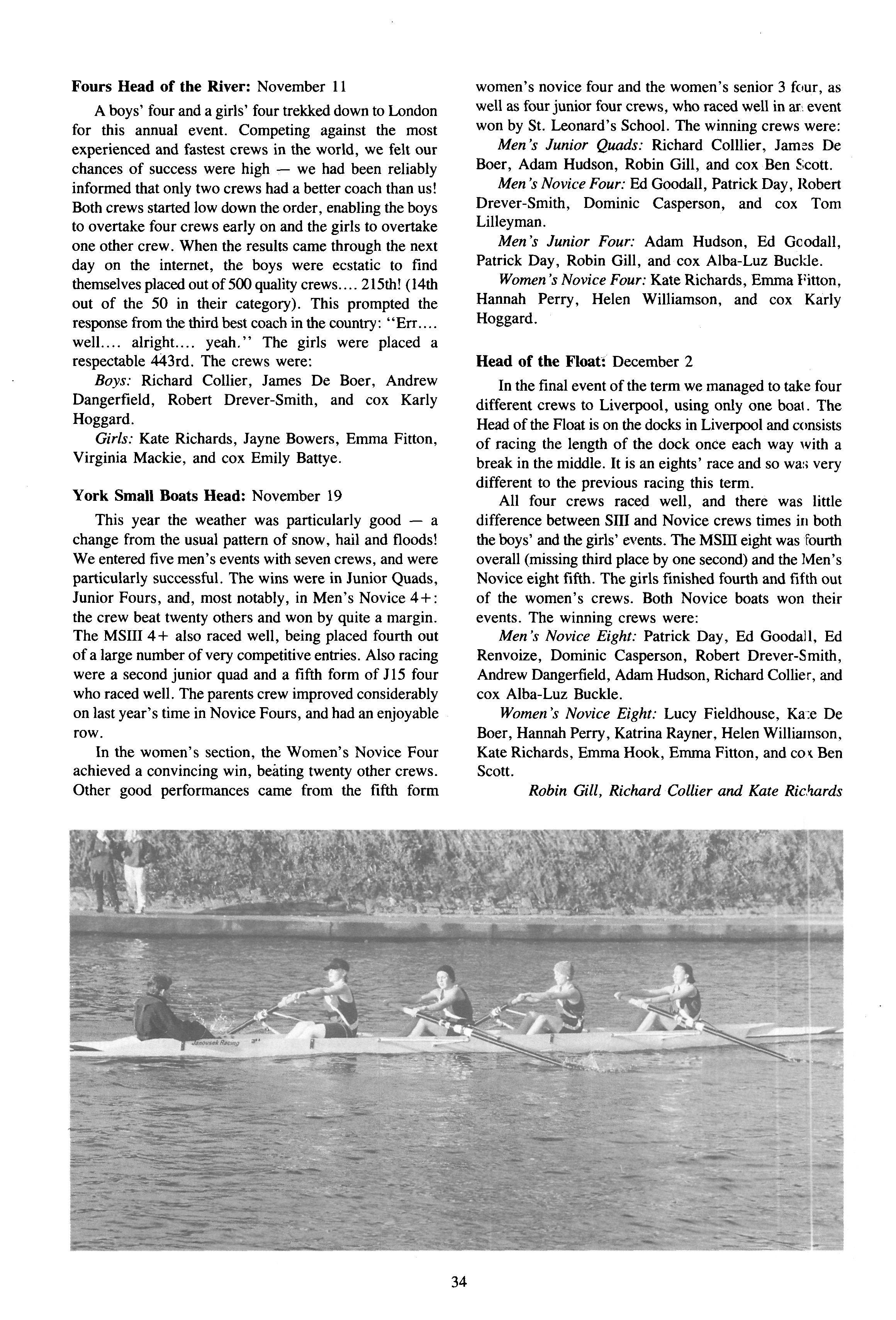 The rowers in the House have enjoyed some outstanding successes rowing for the school this term. Helen Williamson, Karly Hoggard, Emma Fitton, Dominic Casperson, Ben Scott and Richard Collier have all rowed for the school and all of them have been in at least one winning race Richard Collier is also to be congratulated on his 31kms sponsored row which enabled him to raise £400