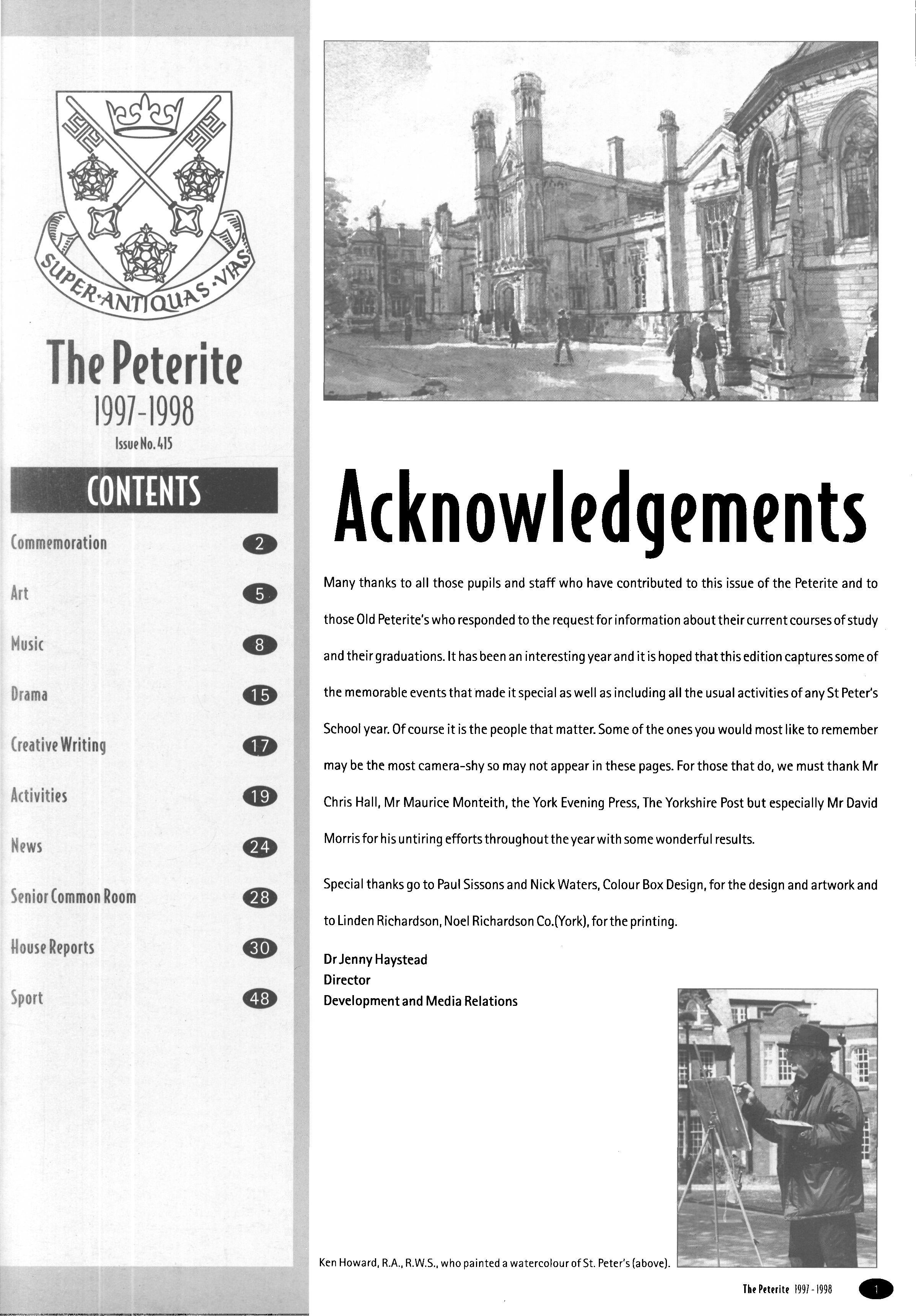 In this my last year as Editor I would like to thank staff and pupils past and present for their support and co-operation in contributing to the magazine. In particular I am indebted to my colleagues Christopher Hall and Maurice Monteith for their help with artwork and photography