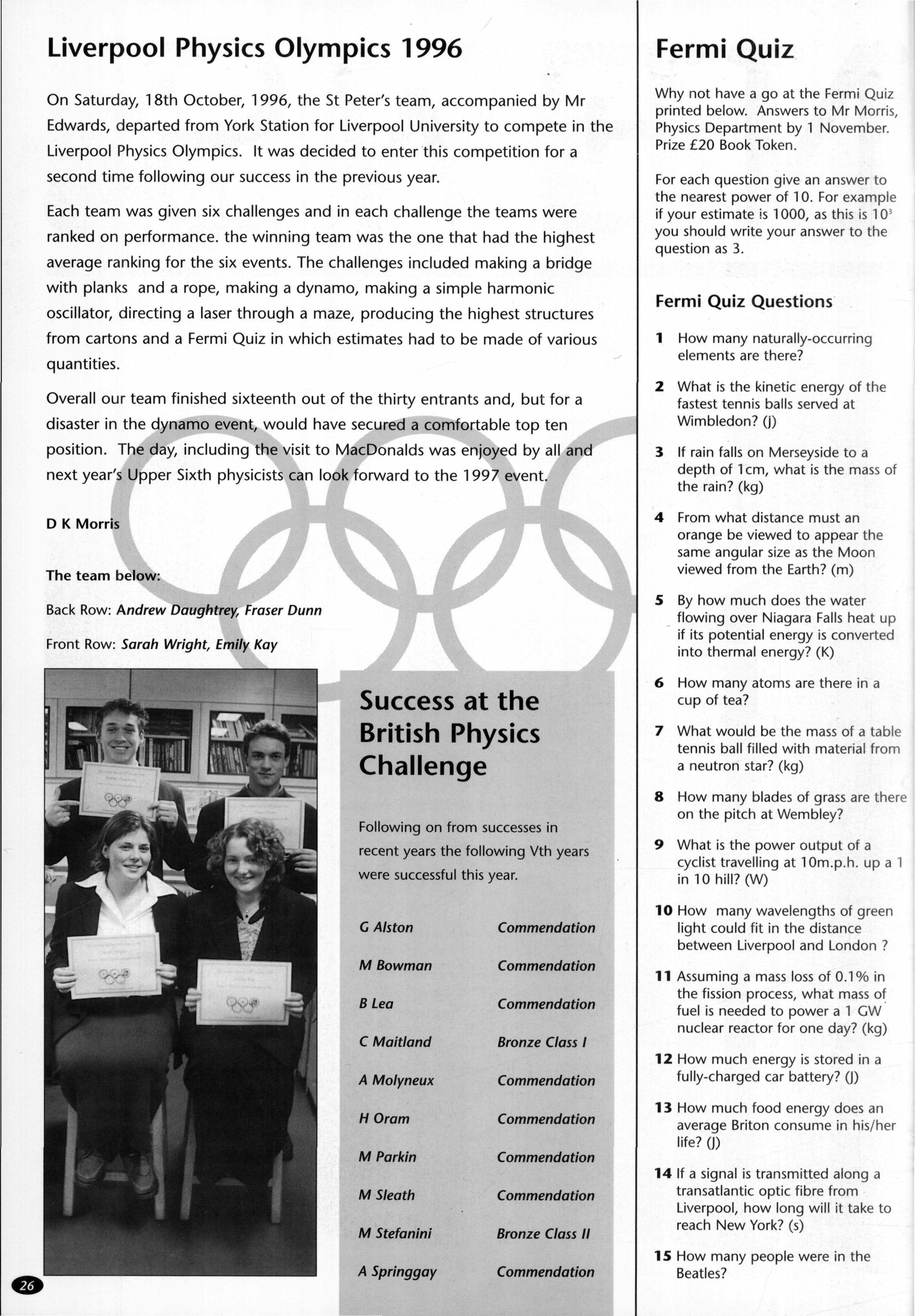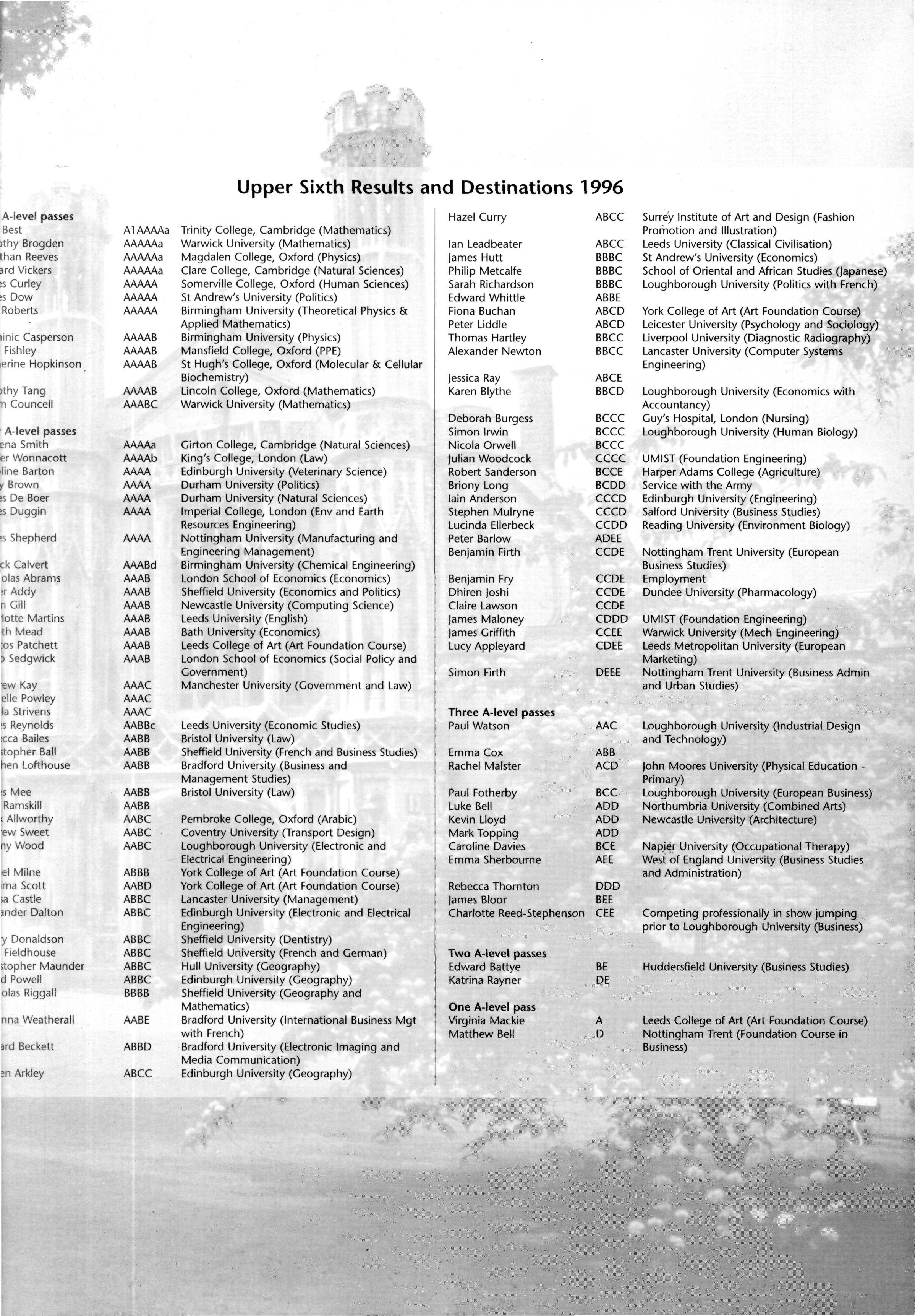 When me House returned from me holidays mere was the good news of me national exam results At 'A' level George Alexander, Wendy Chung, Ben Ferrey, Graham Kershaw and Michael Tildesley were all awarded straight A grades The results at G.C.S.E were equally
