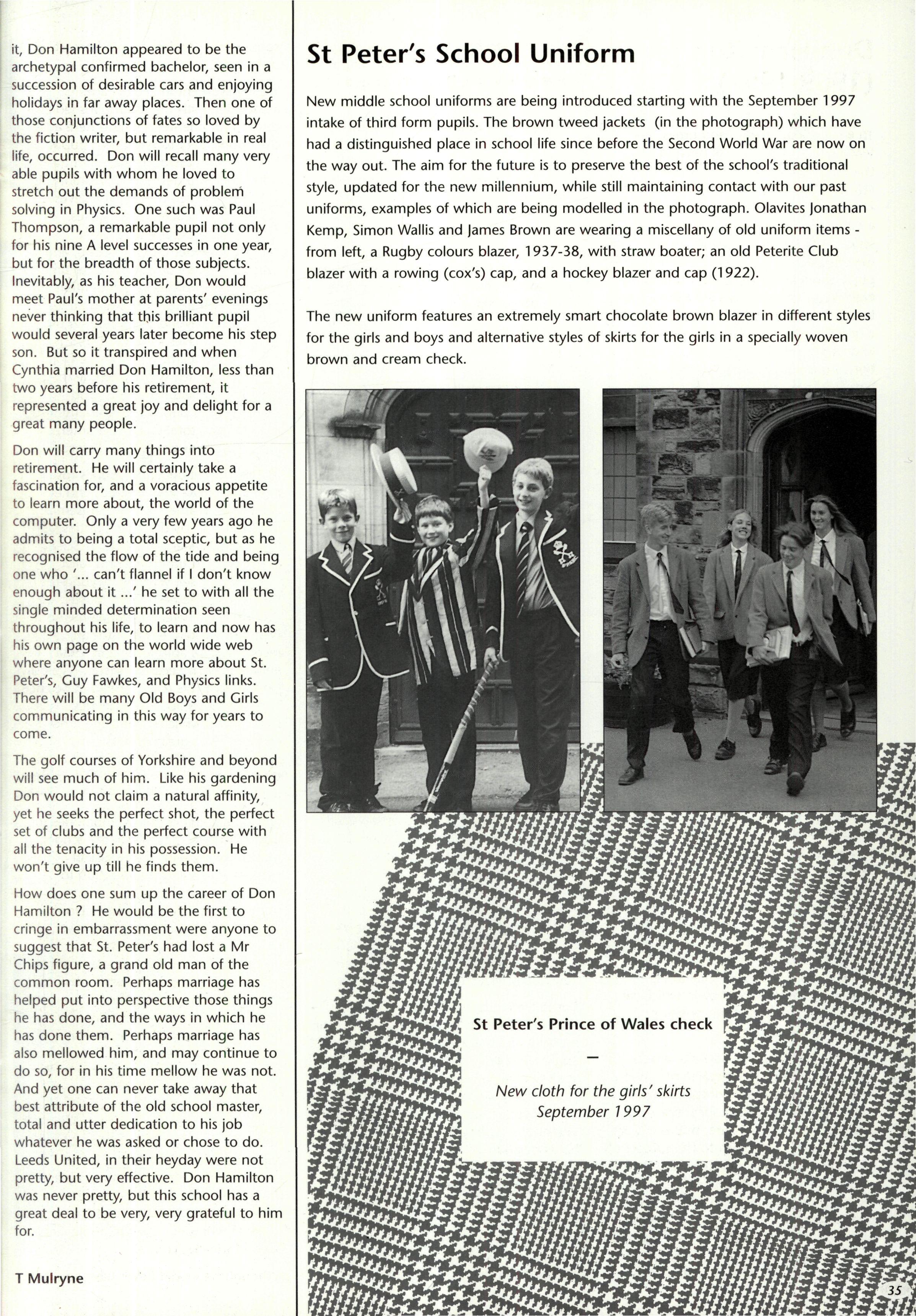 Our congratulations and best wishes go to the Second Master, Mr Don Hamilton, and his wife Cynthia, who were married in the St Peter's Chapel during the Christmas holiday Mrs Hamilton is the mother of Paul Thompson, the school's most distinguished academic scholar in recent times. We wish them every happiness in married life