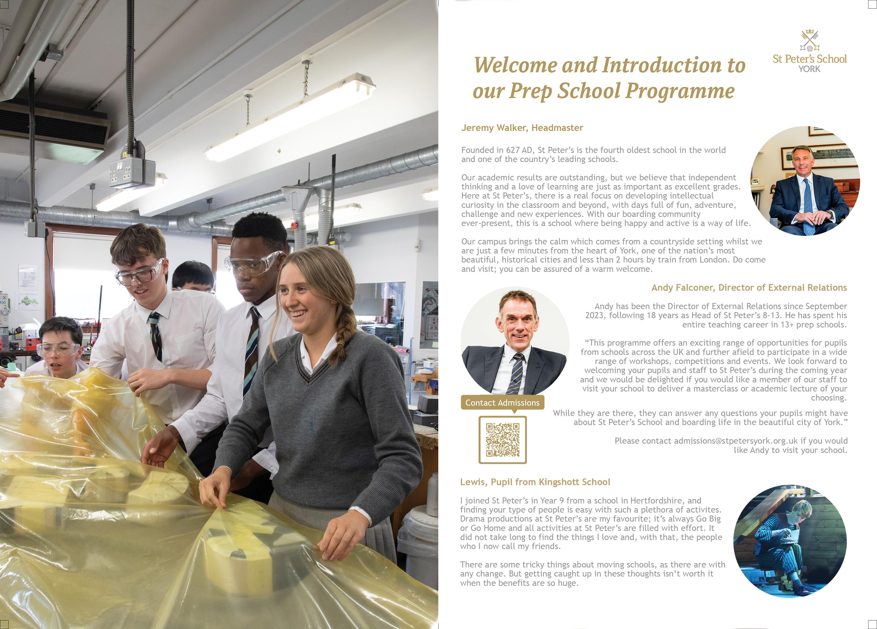 For more information or to book, please use the QR code to visit our website or contact admissions@stpetersyork.org.uk.