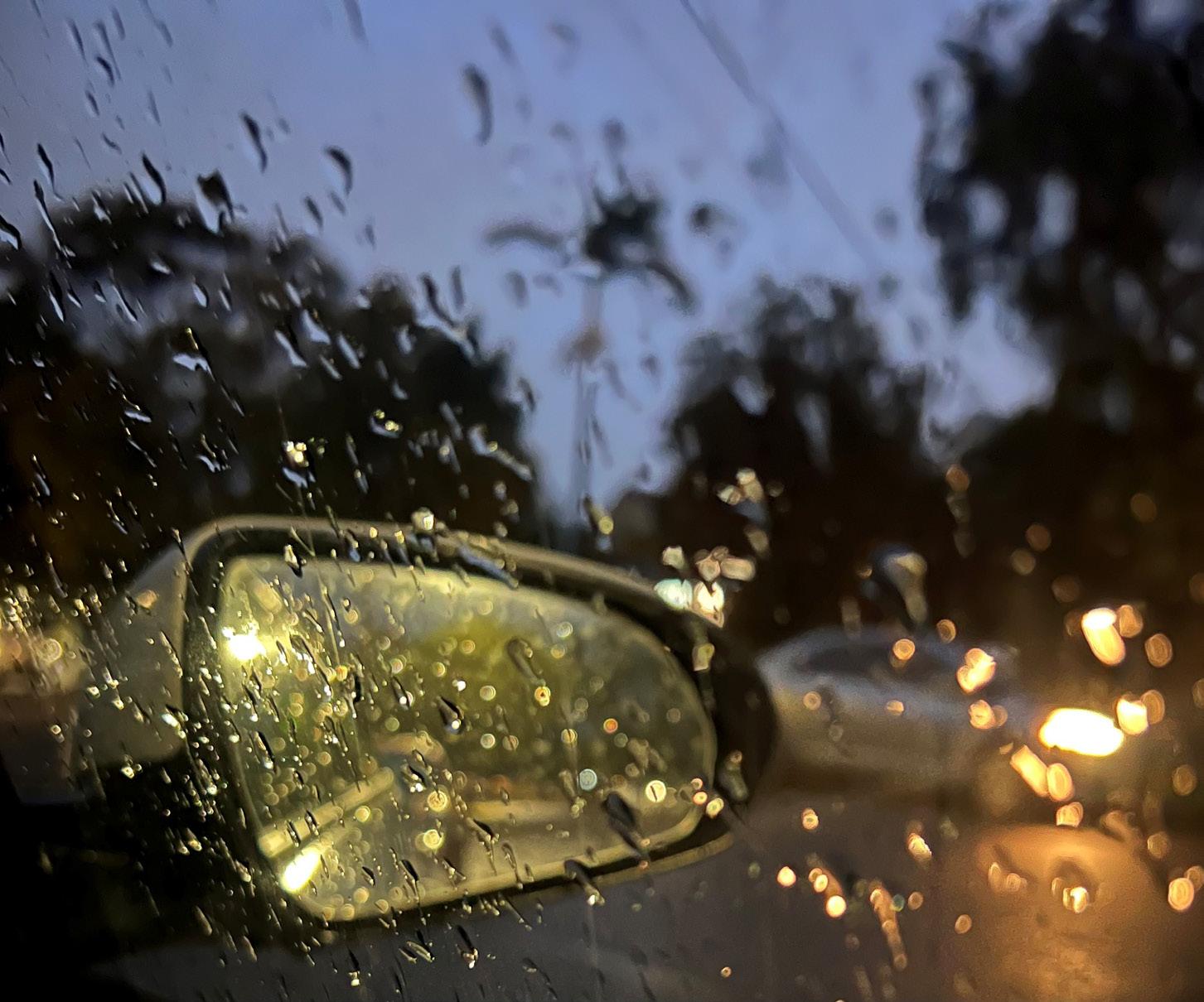 vision drew us here — to witness them nestled like wellloved chess pieces, smoothed by generations of play and packed higgledy-piggledy into their box, awaiting the next tournament. We made our descent hastily over amber lichen, speckled with youthful saplinggreen that belied the centuries since the boulders had been carved into place by time itself, endlessly refined. Mortals among giants, we wandered the stone annals of history, seeking what had been and what still lay ahead. Time stood still in the in-between, and we were a faint flickering imprint on the vast granitic terrain, its grains of time stretching endlessly to the horizon.