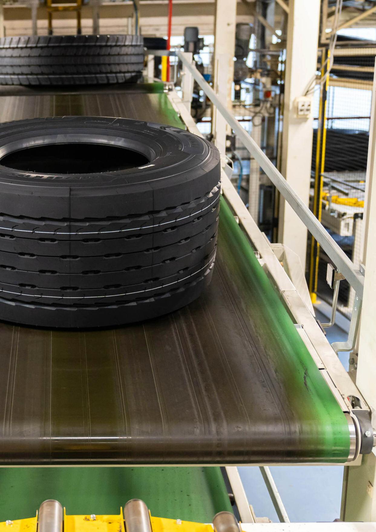Durante a visita à fábrica, ficámos a conhecer todo o processo de fabrico, desde a entrada das matérias-primas que compõem o pneu, até ao final, quando são armazenados e preparados para transporte para os clientes e distribuidores.
