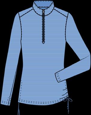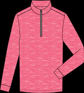 Lightweight quarter-zip with sleeve cuffs. 92% Micro-polyester, 8% Spandex, Cross-Dyed Performance Jersey.