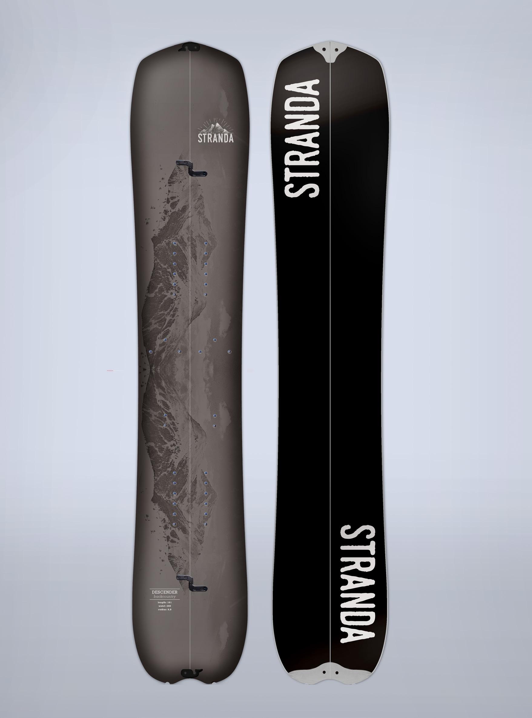 There’s always a balance between weight and durability when constructing a splitboard, that said our splits are very competitive. The Descender is for sure one of the lightest non carbon splitboards on the market per square centimeter. But leaving out features such as aluminium tip and tail protectors to save a gram or two is not conducive to the Stranda philosophy.