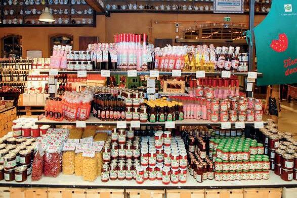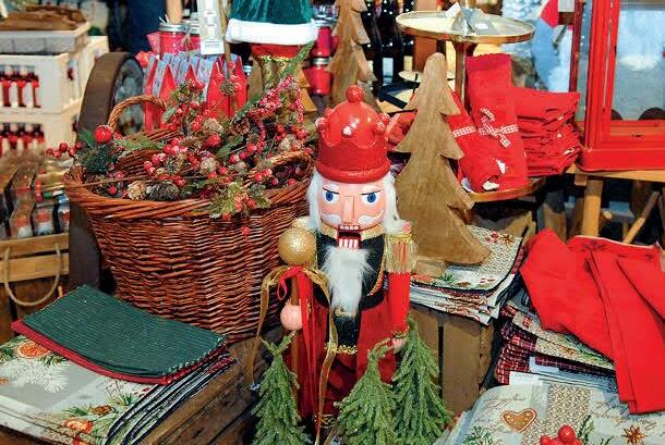 Rundum in den Regalen findet man viele weihnachtliche Produkte und Geschenkideen: Engel, Wichtel, Weihnachtsmänner, Kinderspiele, Bücher, schöne Deko-Elemente und Stoffe, die „Bunzlau“-Porzellan- Klassiker in großer Auswahl, duftende Seifen aus der „Schaumanufaktur“ und nicht zuletzt die niedlichen Plüschtiere mit kuscheliger Füllung. Besonders beliebt als weihnachtliche Geschenkidee ist der große, üppig gefüllte Präsentkorb. Das hübsch dekorierte und köst-