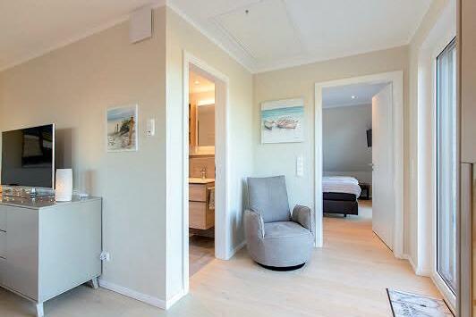 Maritime 2-Zimmer-Wohnung ruhig und strandnah, Balkon mit Blick ins Grüne, hochwertig und modern möbliert, Aufzug, Keller, TG-Stellplatz, Eigenland-Grundstück, neuwertig Kaufpreis: 349.000 €