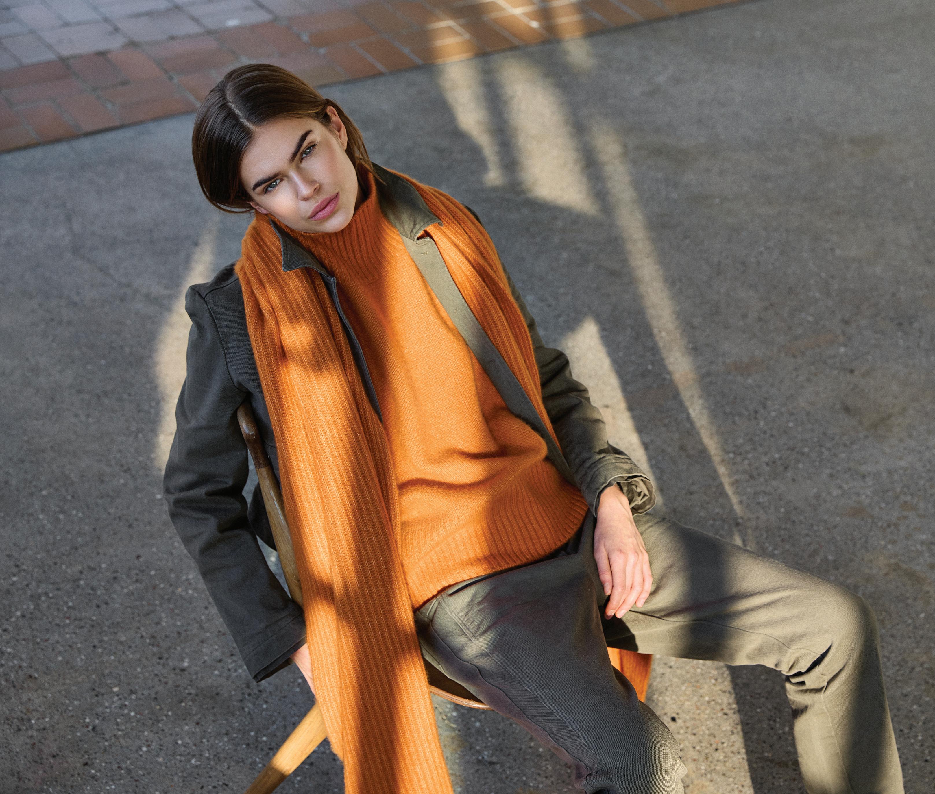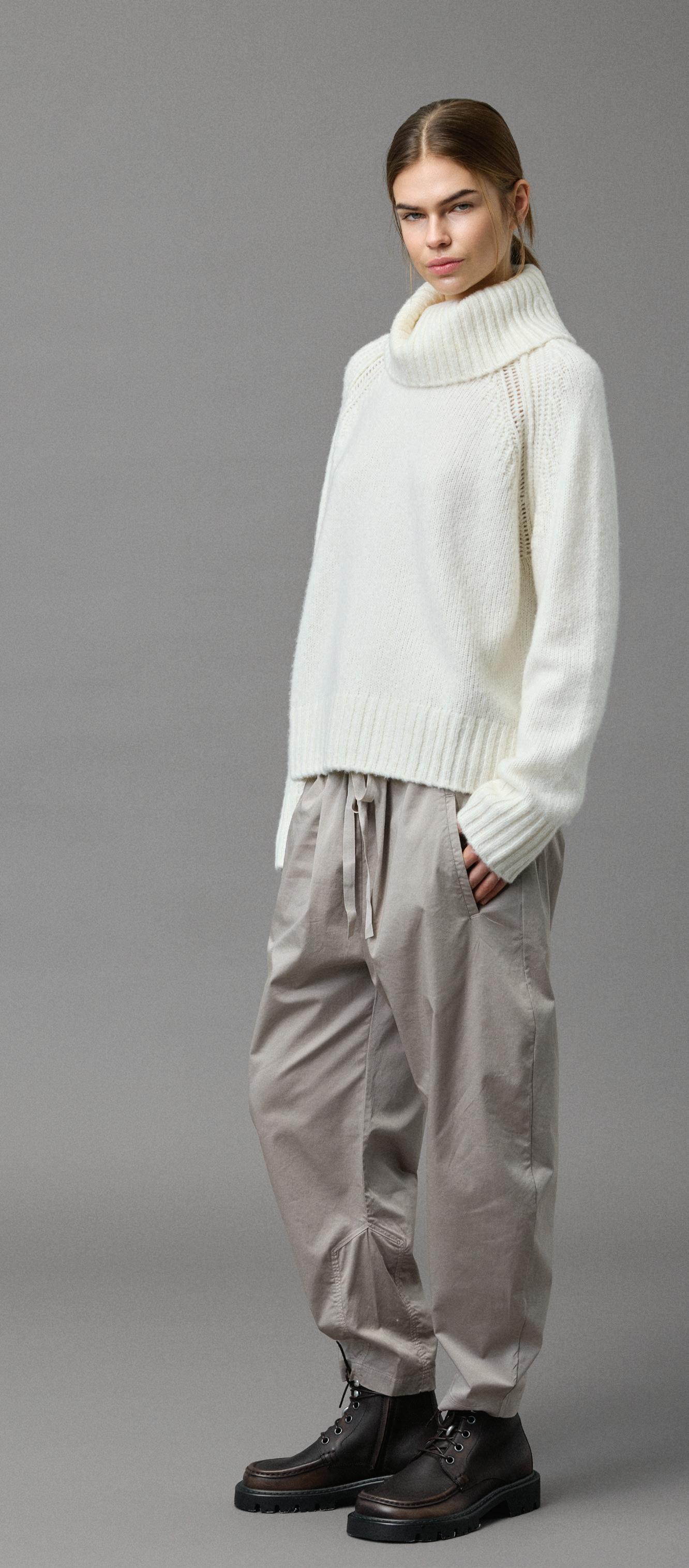 O 800 · Blend scarf · col. 02 O 303 · Turtleneck · col. 01 O 387 · Easy pants · col. 04 O 801 · Beanie · col. 02