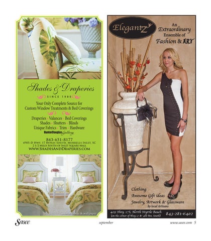 Your Only Complete Source for Custom Window Treatments & Bed Coverings Draperies • Valances • Bed Coverings Shades • Shutters • Blinds Unique Fabrics • Trim • Hardware 843-651-8177