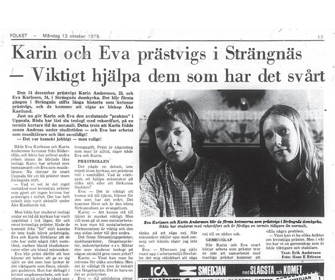 Strängnäs stifts första kvinnliga präster, Karin och Eva, berättar om sina år som präster och när perspektiven vänds i barnets ut ropande: "kan man va det?" när hon ser en manlig präst för första gången.